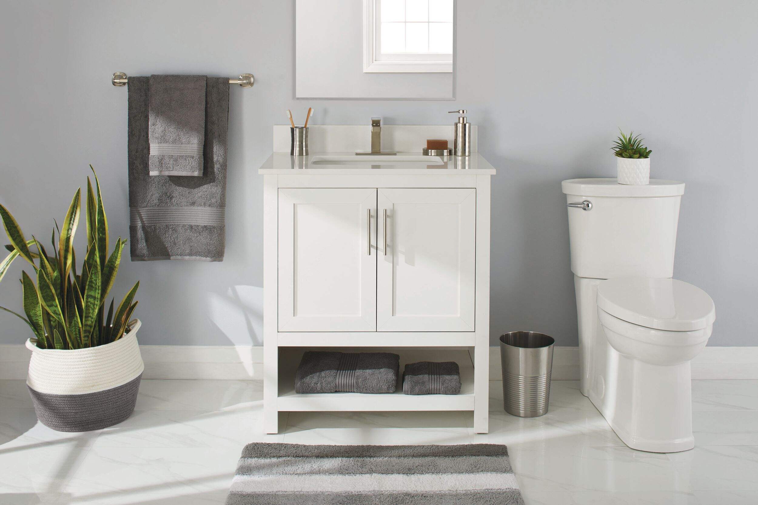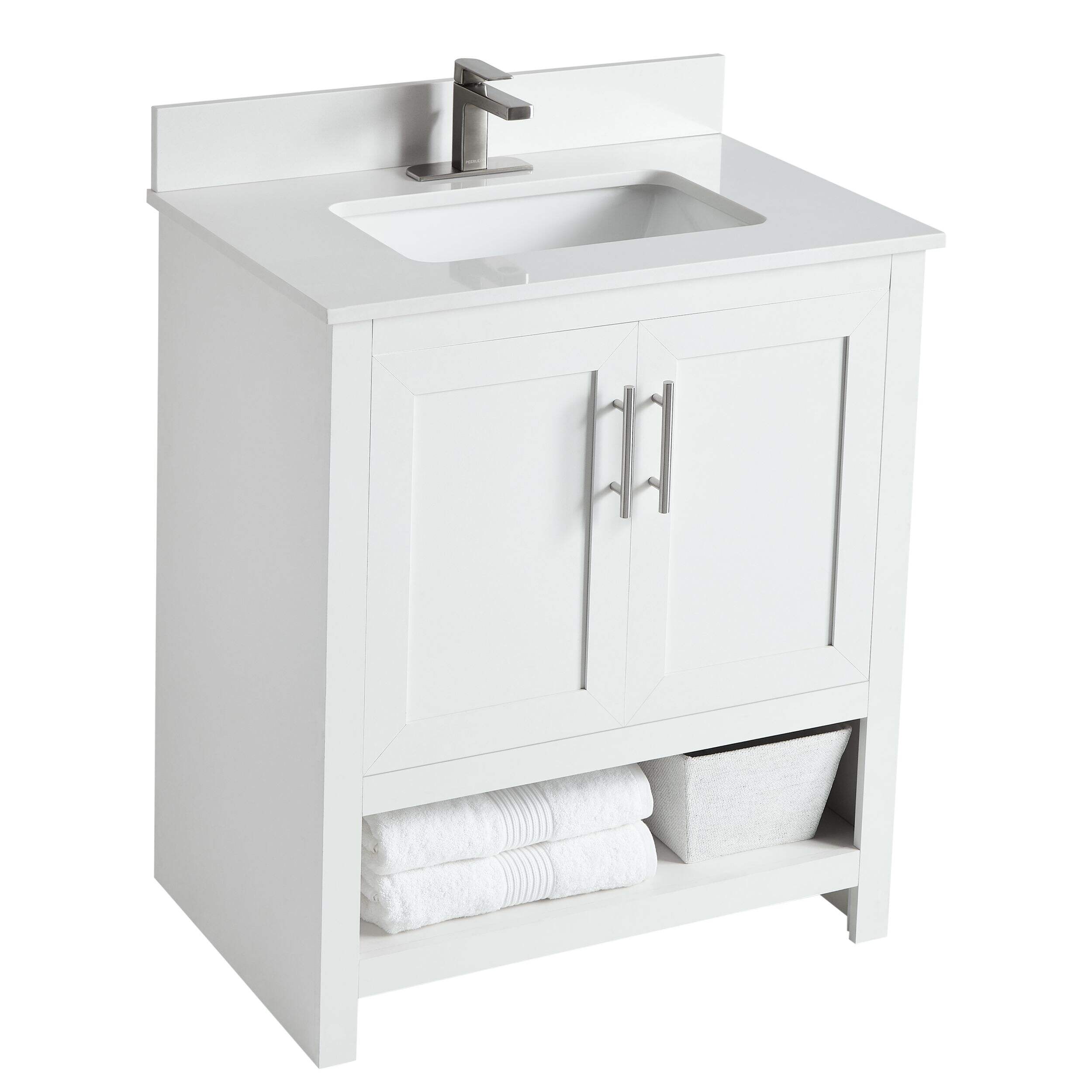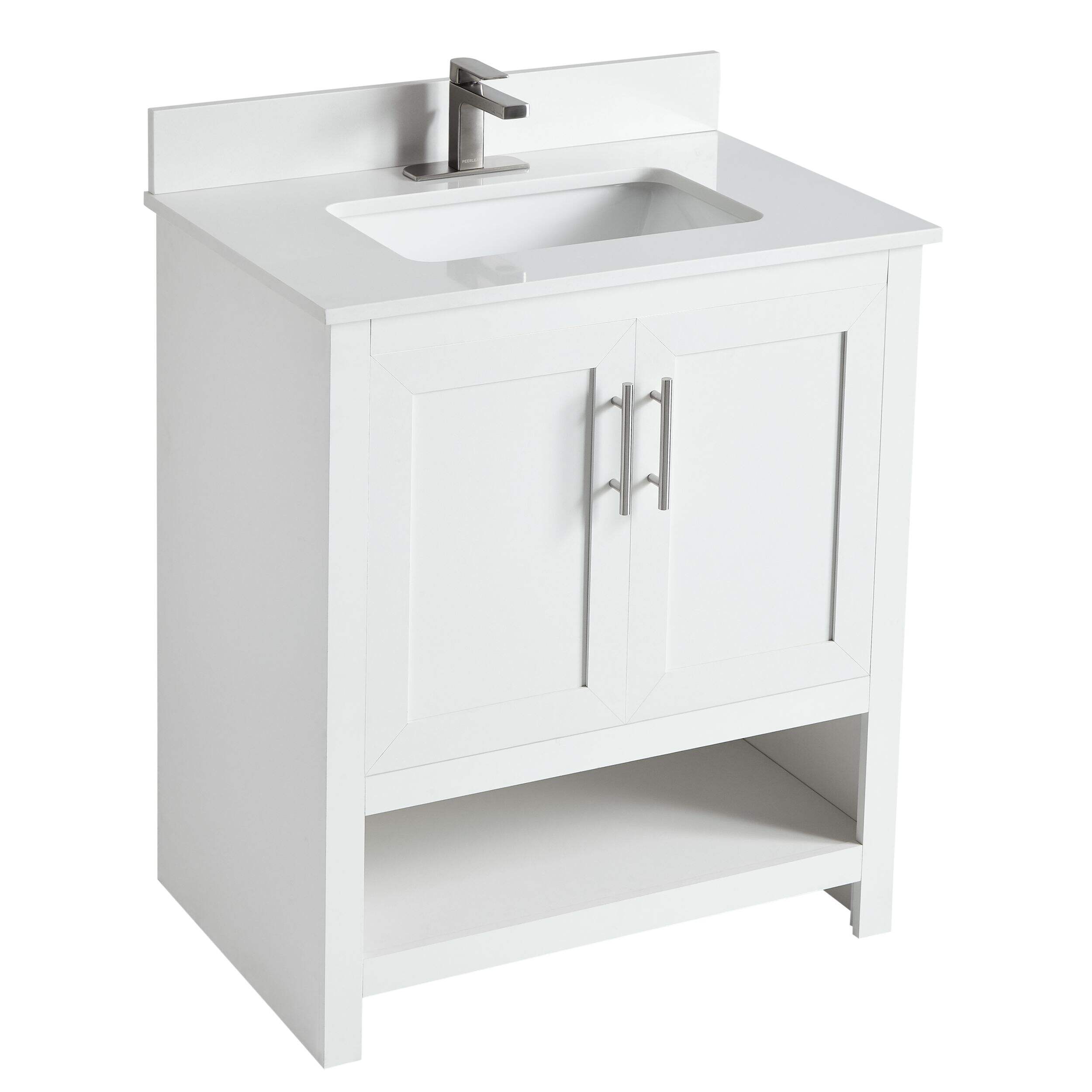 Ajoutez une touche d'élégance et de style à votre salle de bain avec le meuble-lavabo simple CANVAS Dover à 2 portes et dessus en pierre. Avec 2 portes d'armoire à fermeture en douceur, il garde vos articles essentiels bien rangés tout en réduisant le bruit, et sa tablette inférieure ouverte offre un accès facile aux serviettes et aux paniers. Le comptoir en pierre blanche épurée est facile à entretenir pour une utilisation sans tracas. Des trous prépercés simplifient l'installation, ce qui rend ce meuble-lavabo idéal pour améliorer la salle de bain.