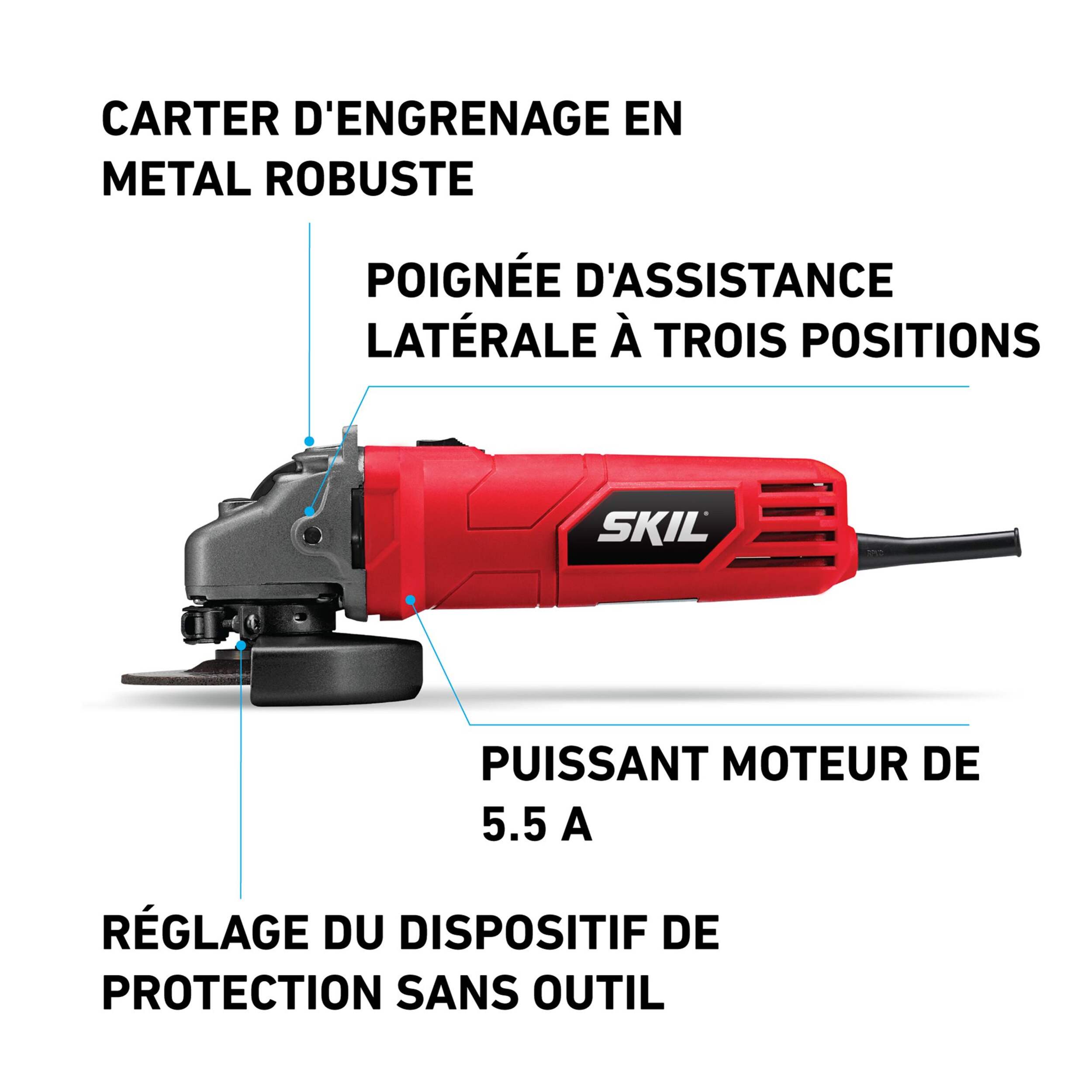 Meuleuse angulaire SKIL dotée d'un puissant moteur de 5,5 A pour accomplir le travail