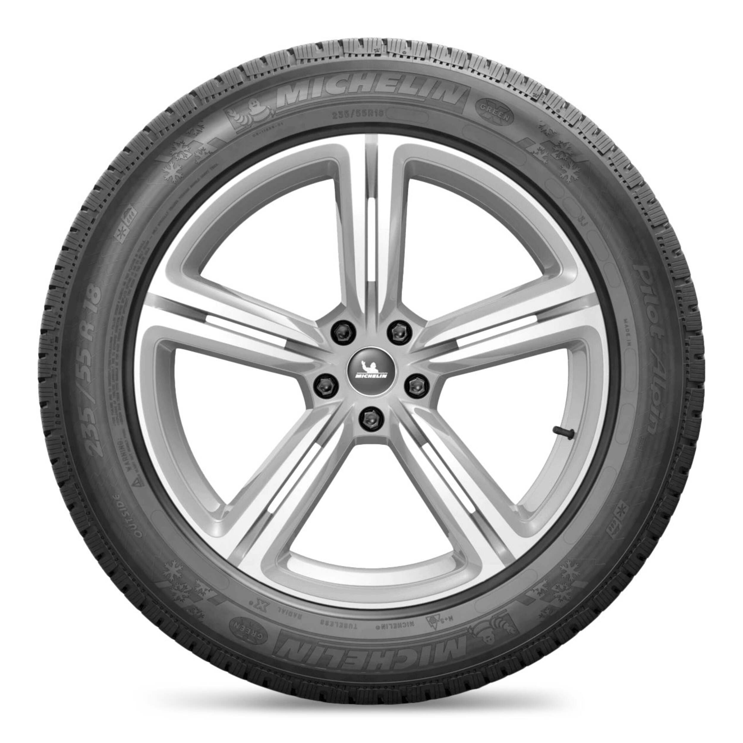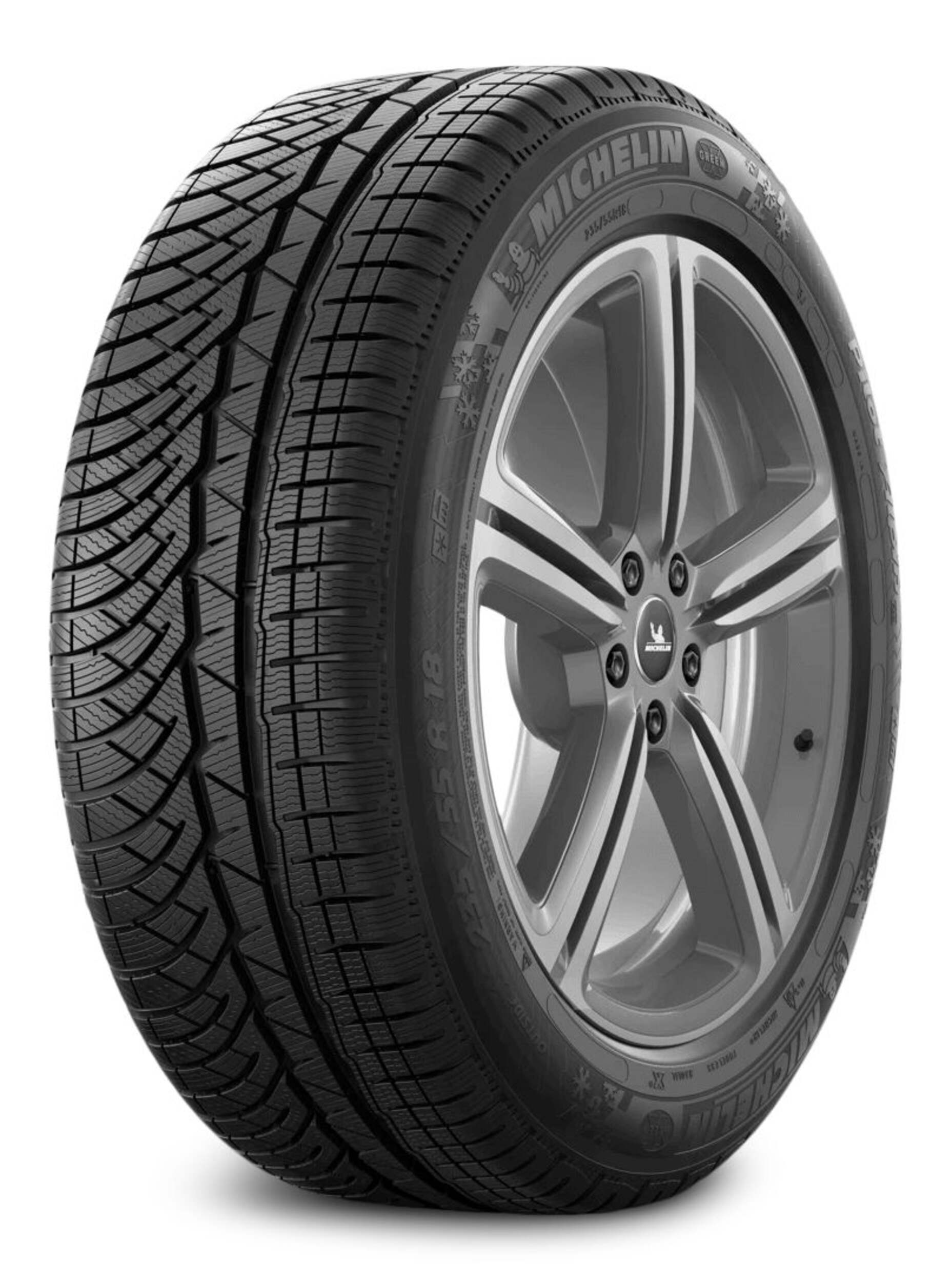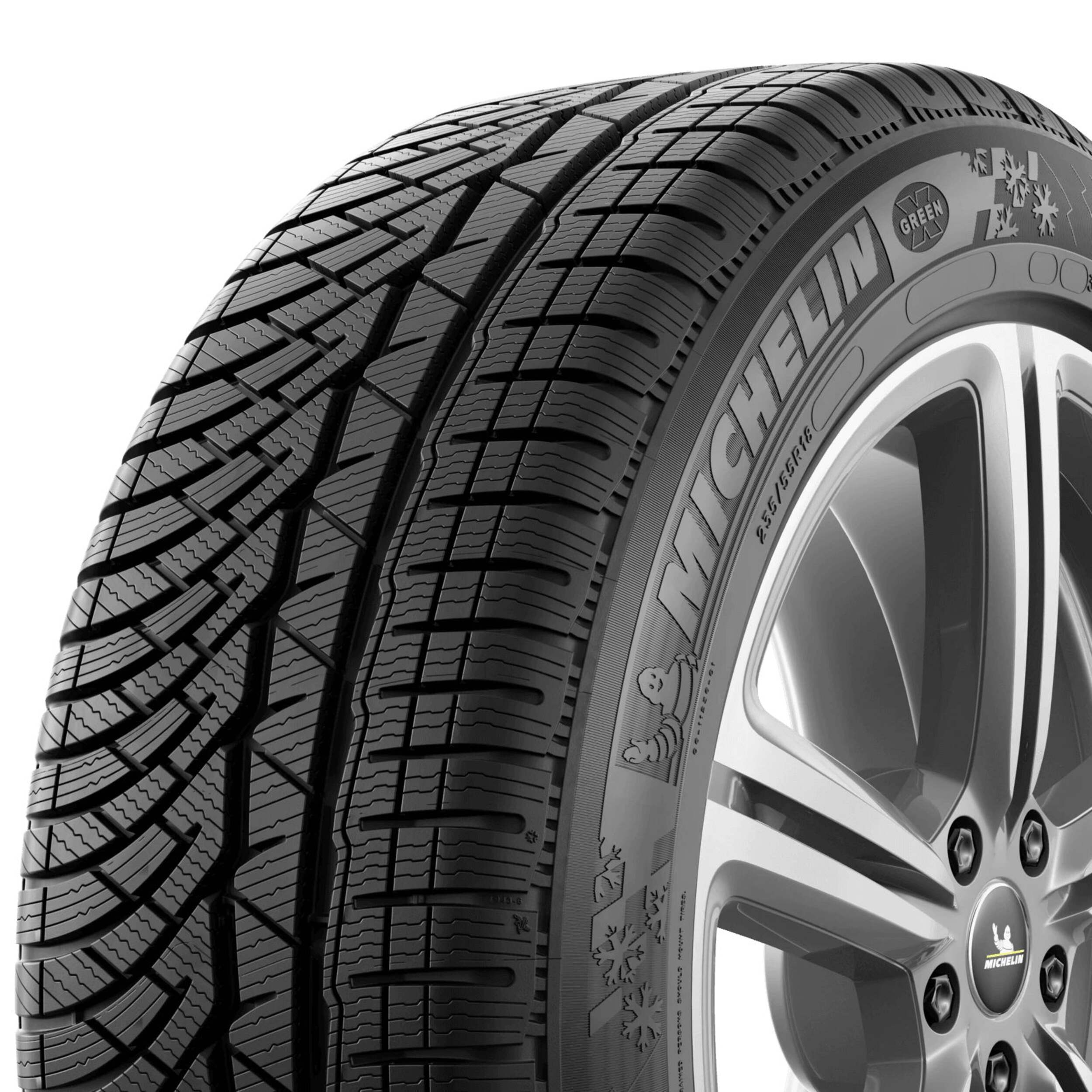 Pneu d'hiver Michelin Pilot Alpin PA4 portant la marque Michelin Green X dont la construction réduit la résistance au roulement, consomme moins d'essence et émet moins de CO2