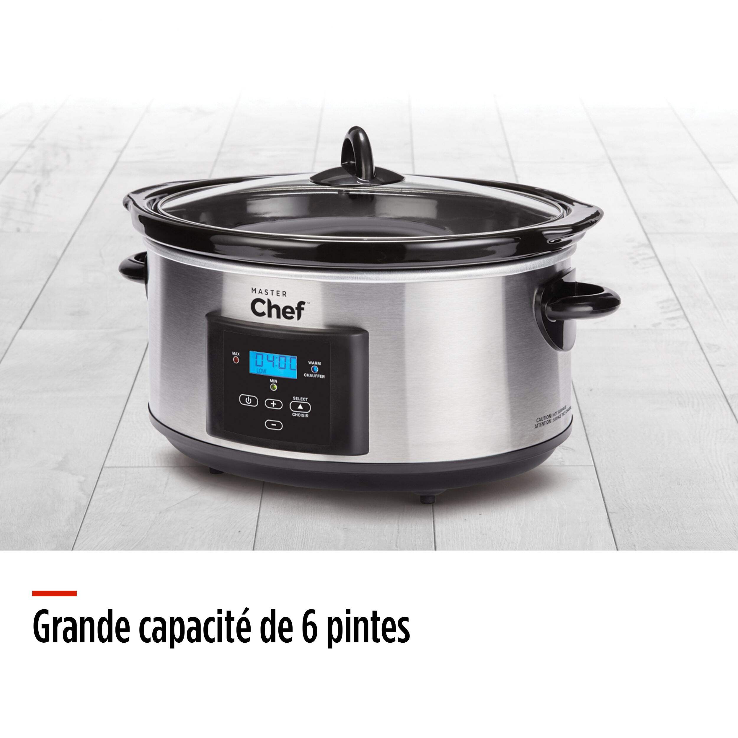 Profitez de vos repas préférés, même loin de la maison, avec cette mijoteuse MASTER Chef facile à utiliser. L'extérieur au fini élégant en acier inoxydable s'agence bien avec les autres électroménagers de la cuisine. D'une capacité suffisante pour préparer un repas pour 8 personnes, cette mijoteuse est idéale pour les familles occupées qui n'ont pas toujours le temps de cuisiner, les repas-partage ou les réceptions.