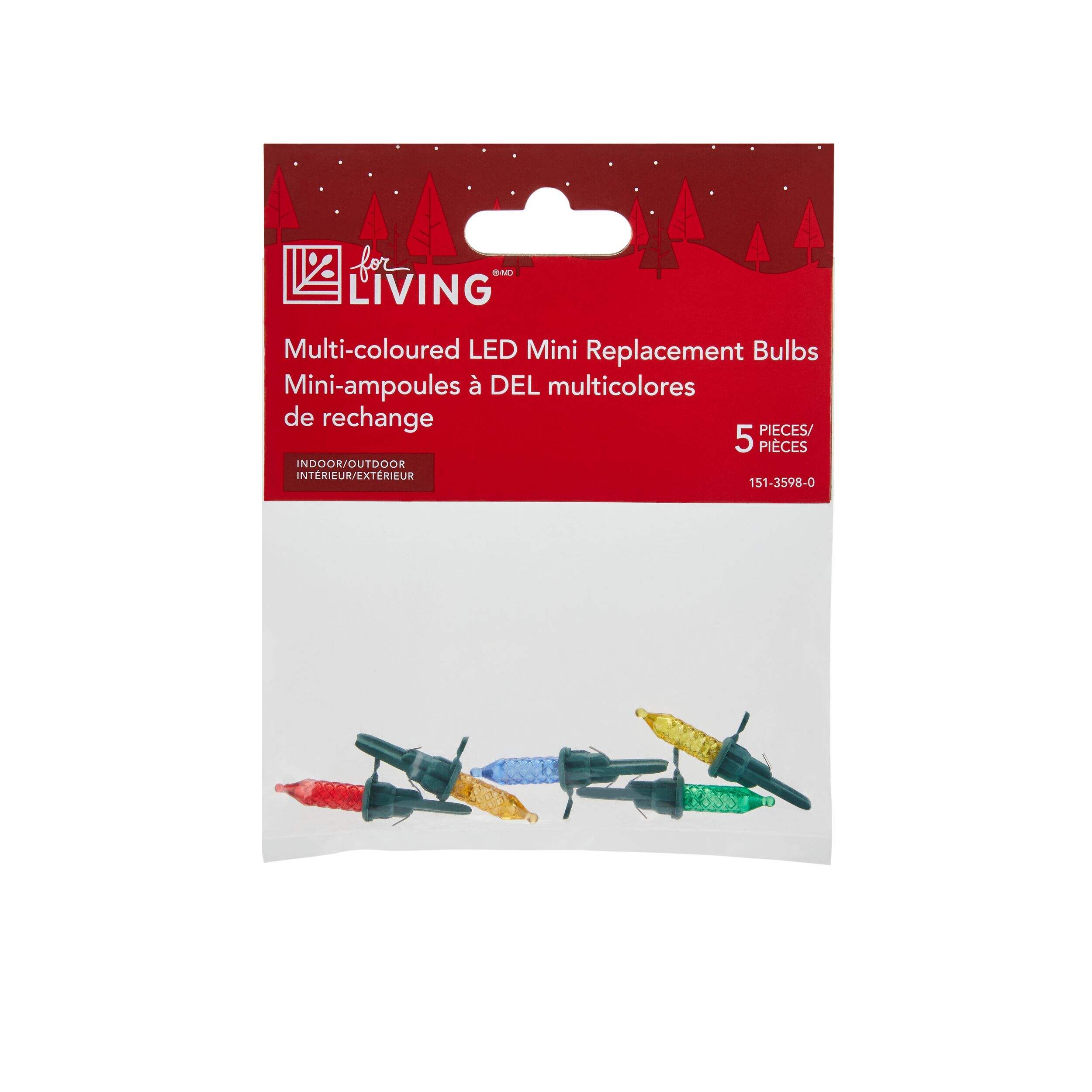 Ampoules de rechange pour lumières de Noël miniatures For Living, 5 ampoules à DEL, multicolore, idéales pour éclairer votre espace pendant la période des Fêtes