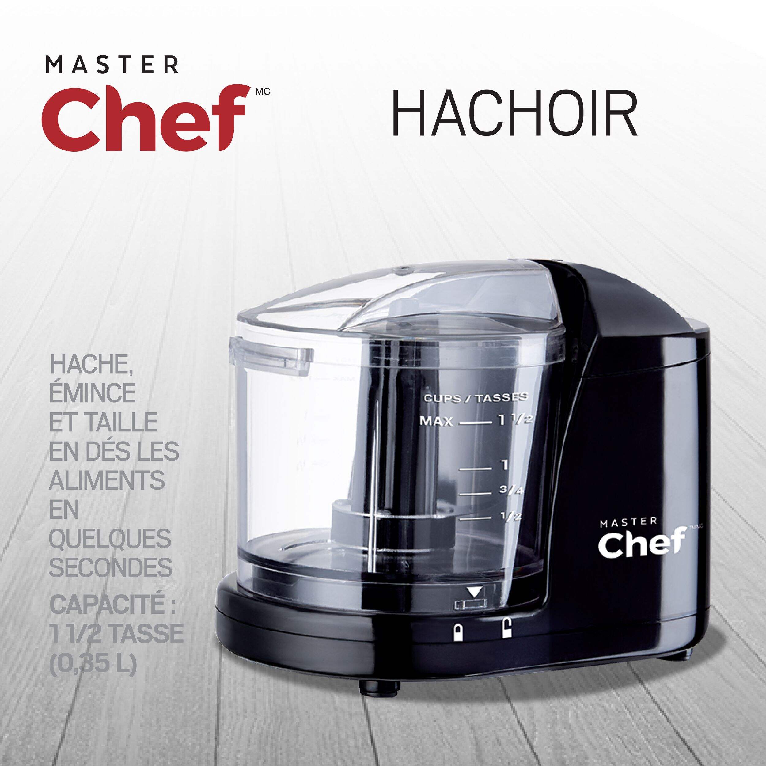 Hachez, coupez en dés et réduisez en purée facilement avec le mini hachoir MASTER Chef. Avec une généreuse capacité de 1-1/2 tasse et des lames en acier inoxydable, il est idéal pour préparer des salsas, des trempettes ou des fines herbes hachées rapidement. Commande par impulsion à bouton-poussoir.qui vous offre une puissance de hachage précise et couvercle avec verrouillage de sécurité qui assure un fonctionnement sans tracas. Lorsque vous avez terminé, il suffit de mettre le bol allant au lave-vaisselle pour un nettoyage facile. Léger et compact, ce mini hachoir occupe très peu d'espace sur votre comptoir. Que vous soyez un maestro culinaire ou que vous débutiez, cet appareil de cuisine polyvalent vous permettra de hacher comme un pro en un rien de temps.