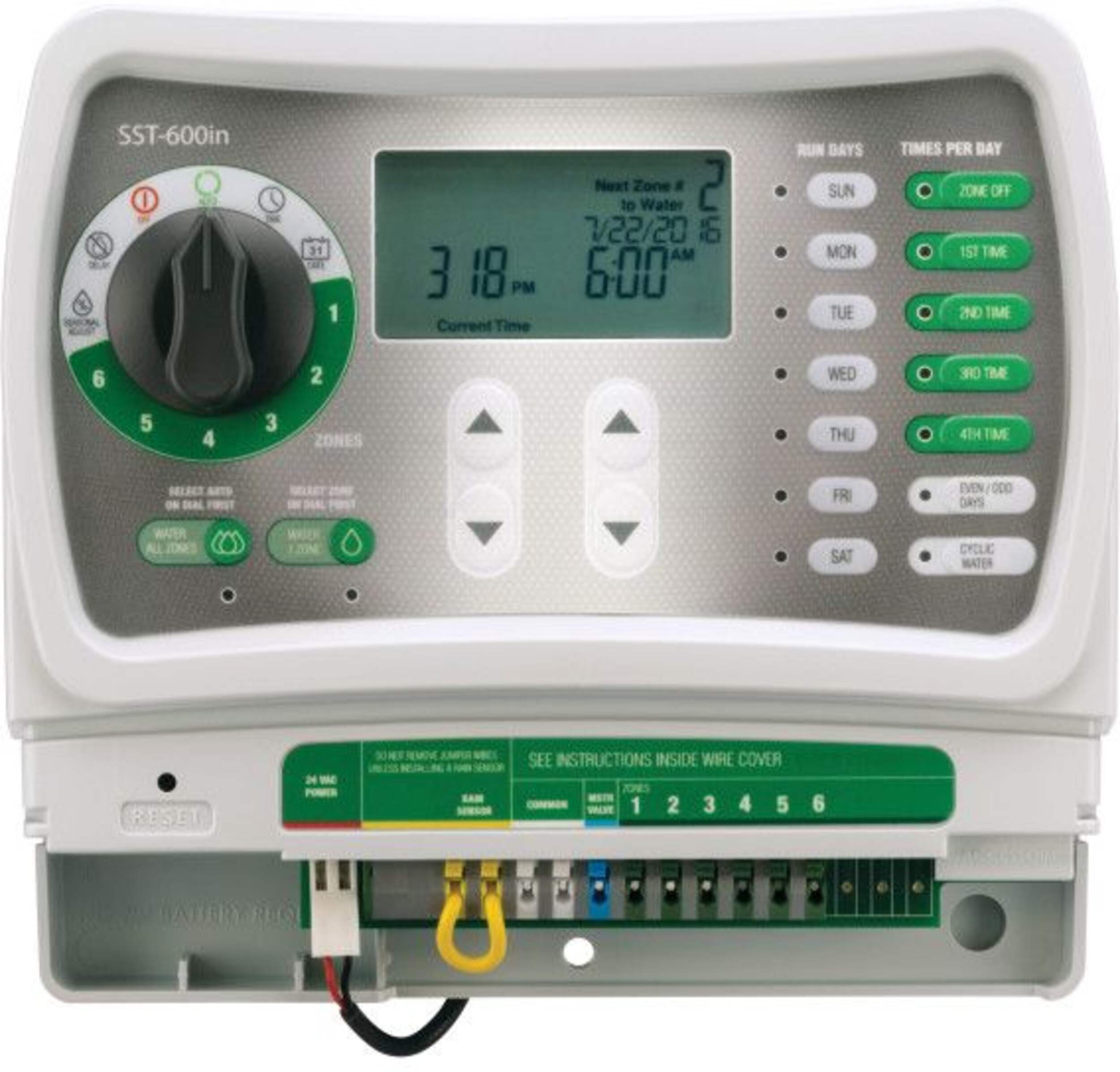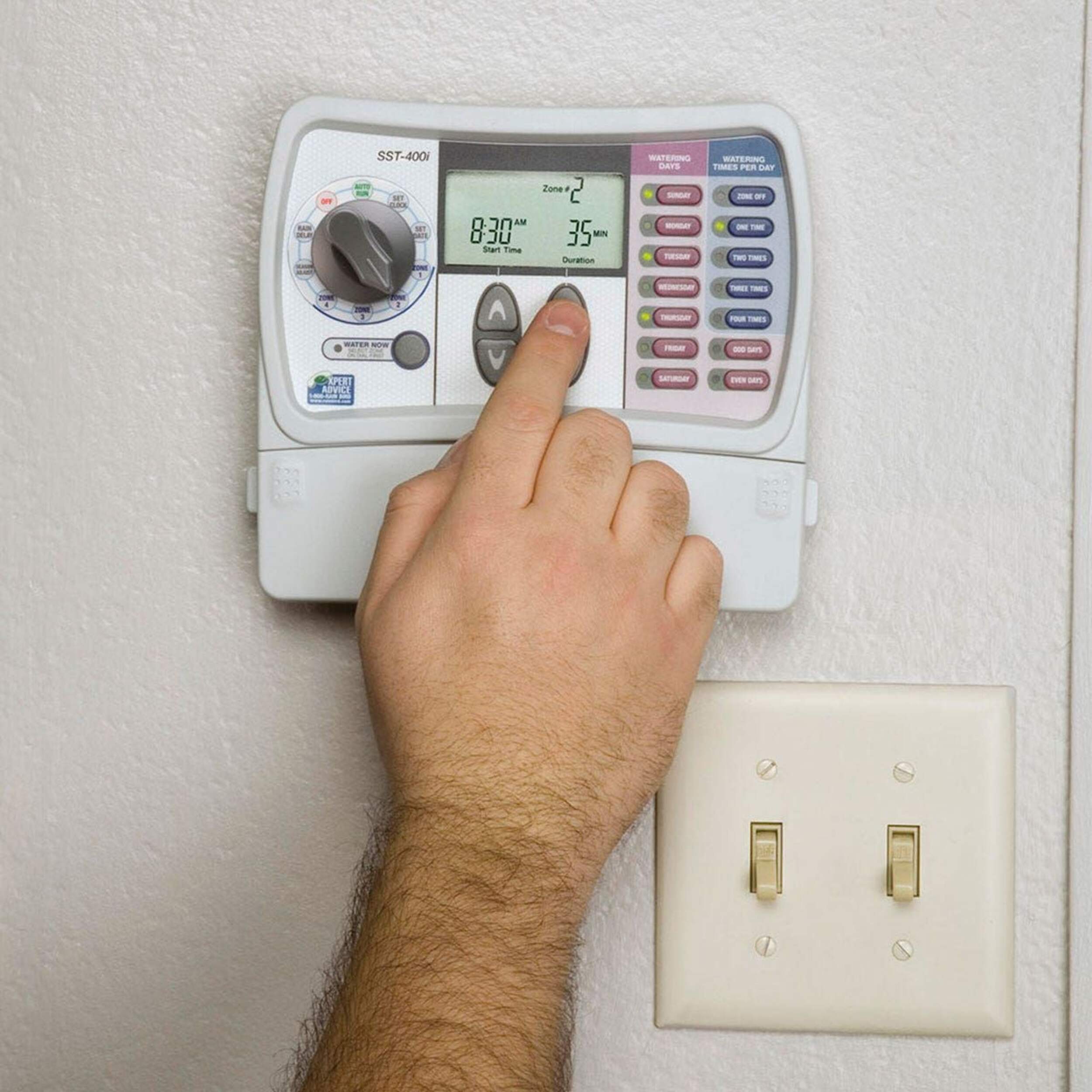 Cette minuterie installée à l'intérieur est si facile à utiliser que vous oublierez les instructions. Sa programmation intuitive par zone vous permet de régler les temps d'arrosage différemment pour chaque zone de la cour, ce qui donne des résultats plus verts avec moins d'eau. En tournant le cadran à chaque zone, vous pouvez facilement définir des jours de la semaine, des jours pairs ou impairs, ou un nombre de jours déterminé pour toutes les autres zones. Vous pouvez aussi programmer jusqu'à quatre périodes d'arrosage différentes de la journée pour les pentes et les sols argileux à intervalles courts afin de permettre à l'eau de pénétrer le sol et d'éviter les ruissellements. Le réglage de chaque zone peut être examiné rapidement avec des voyants à DEL pour une lecture facile.