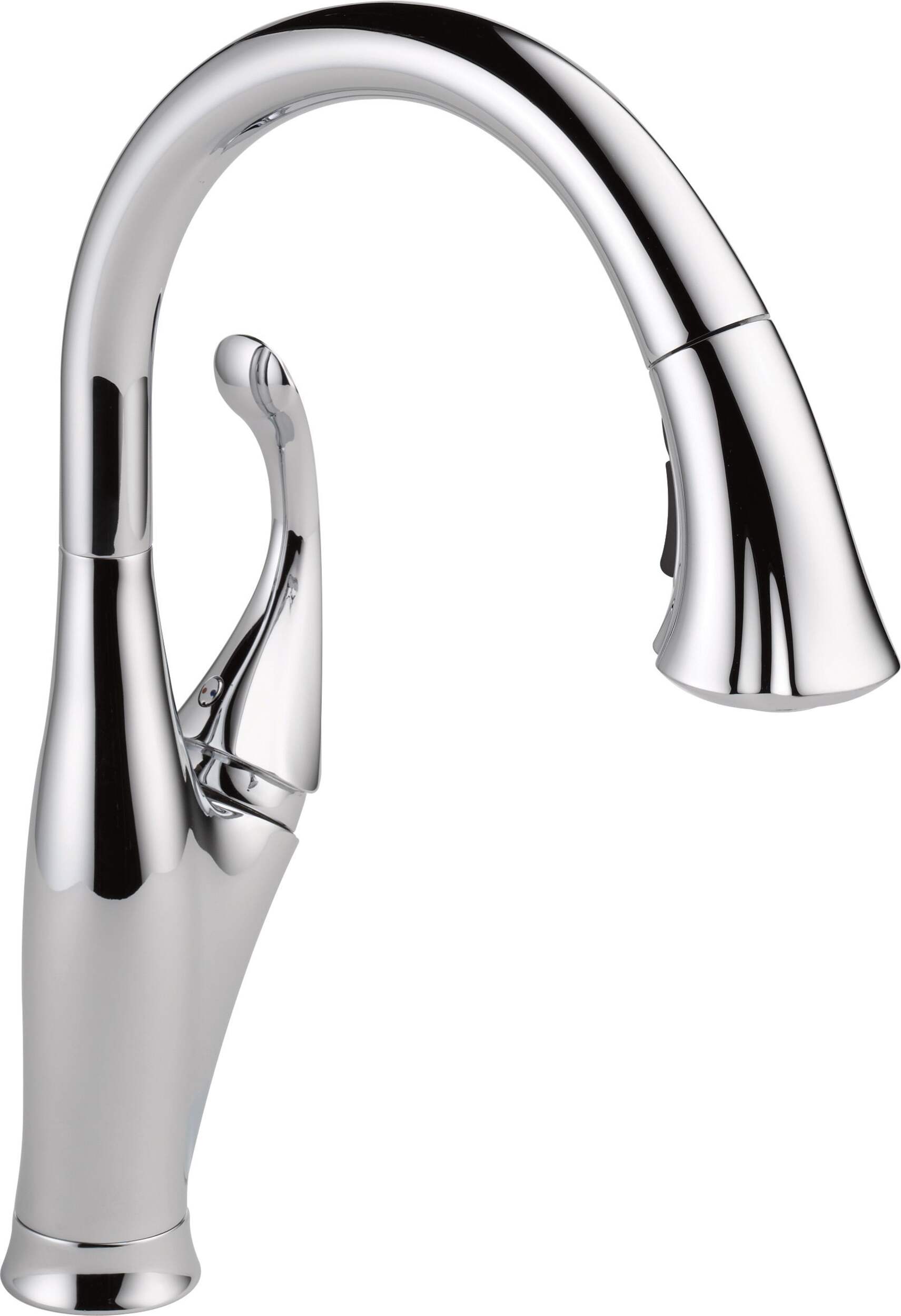 Robinet d'évier à 1 pognée et douchette Delta Addison économe en eau pour une touche de romantisme à la cuisine grâce à ses superbes courbes et sa beauté délicate