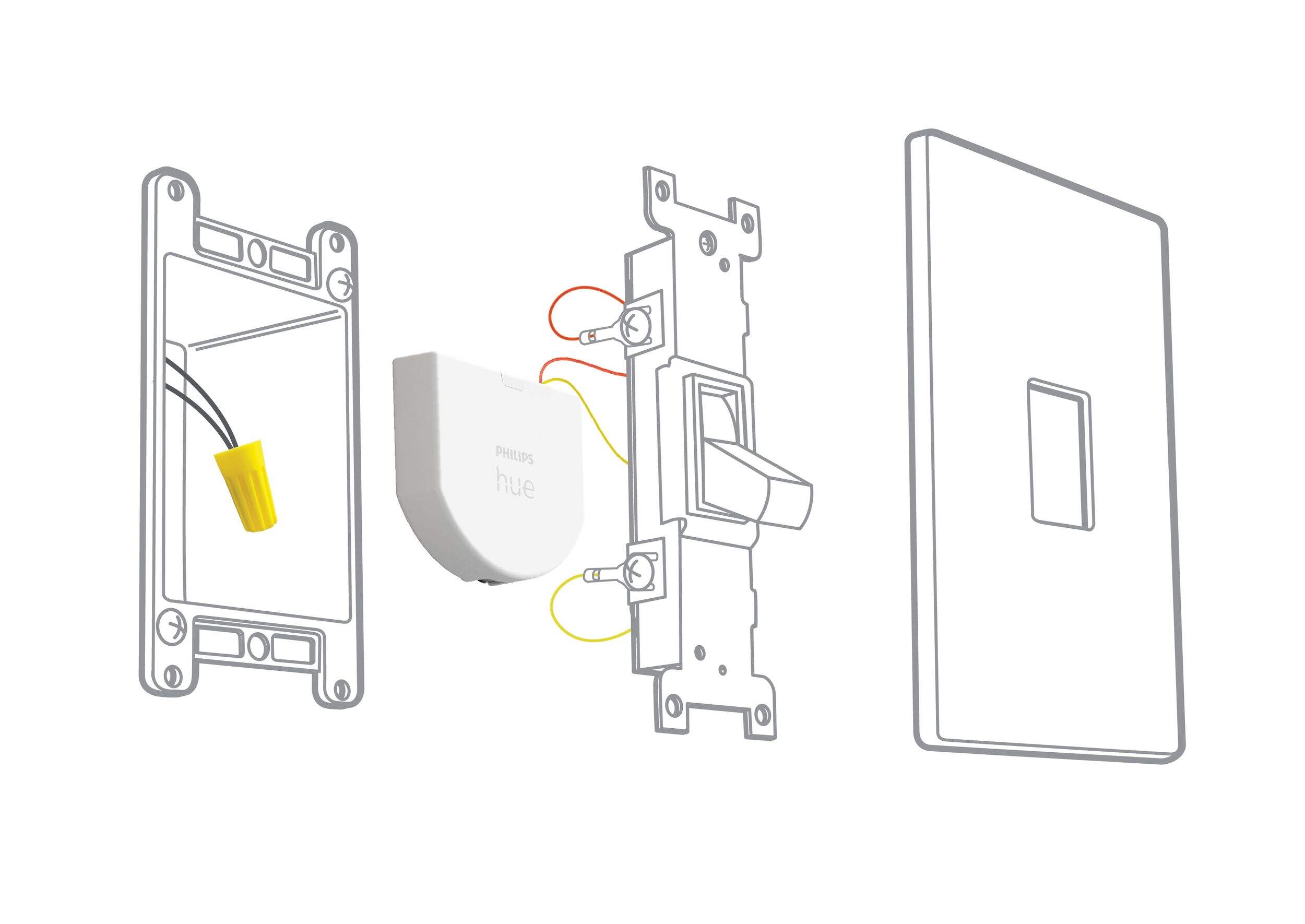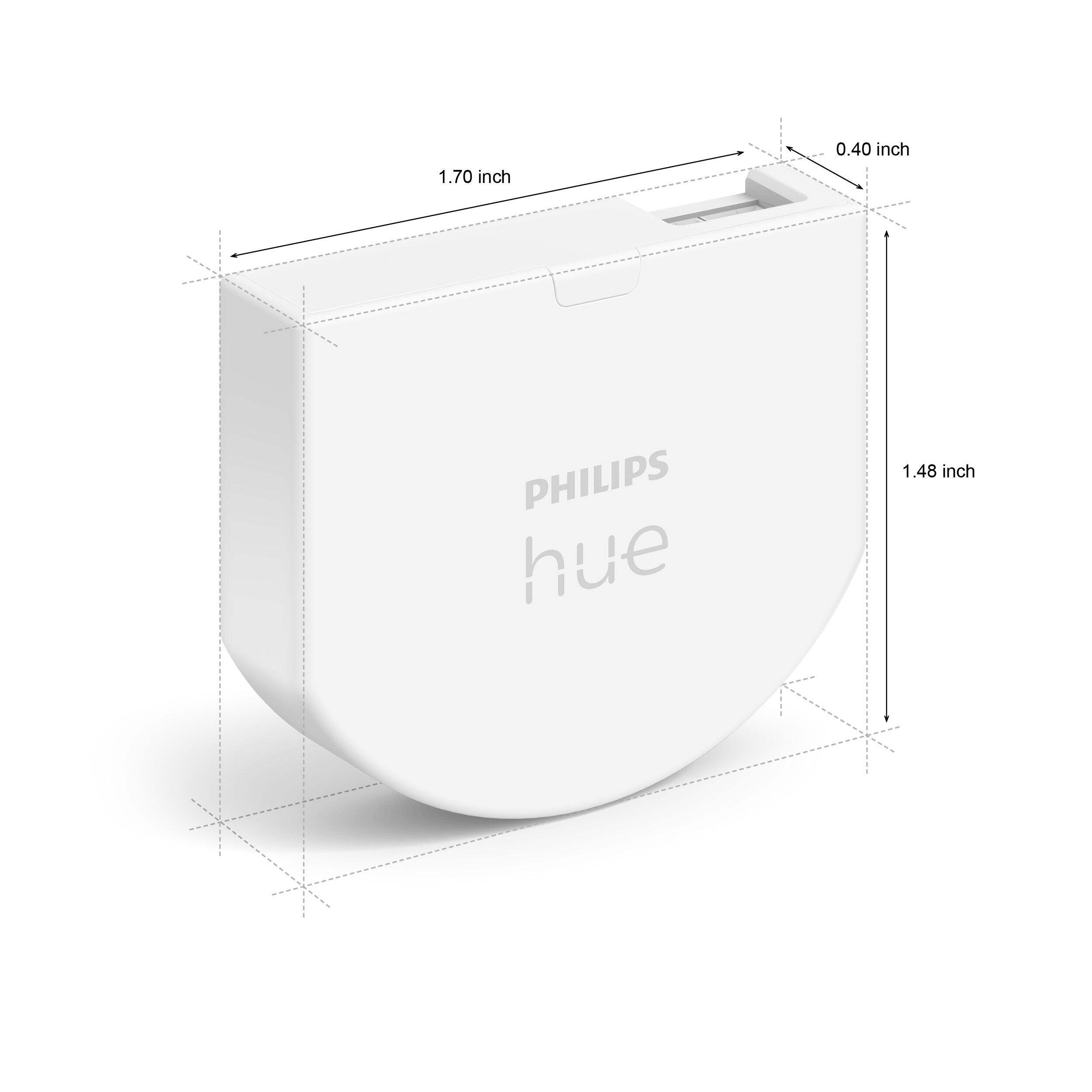 Installé derrière les interrupteurs d'éclairage, le module d'interrupteur mural Hue de Philips vous permet d'utiliser vos interrupteurs actuels avec les ampoules intelligentes Hue de Philips. Vos lumières restent allumées et accessibles pendant que vous pouvez utiliser l'interrupteur pour régler plusieurs scènes sur une seule lumière ou dans une pièce ou une zone. Le module se connecte à votre pont Hue de Philips et apporte la commodité d'un interrupteur physique à votre système d'éclairage intelligent.
