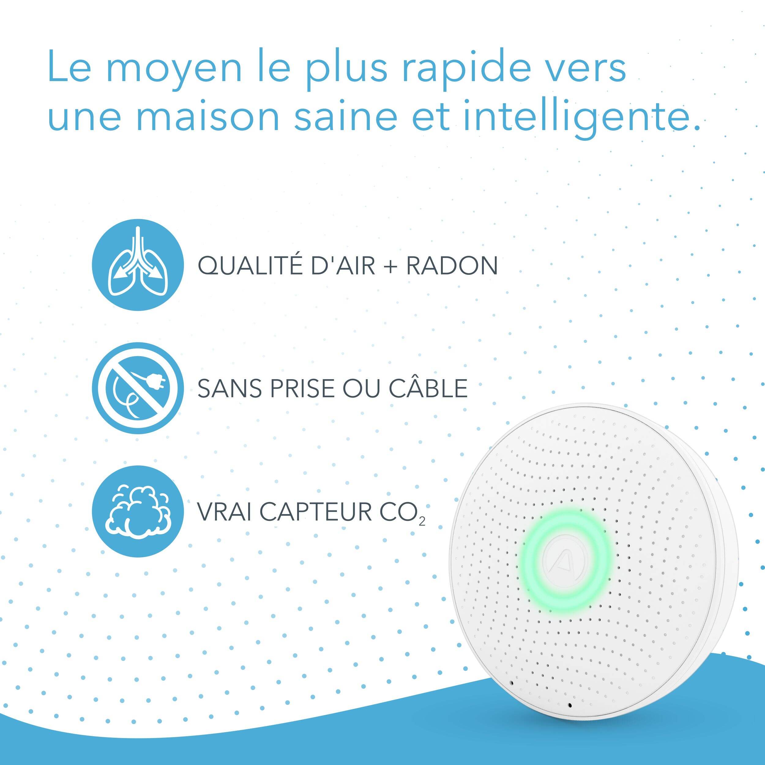 Respirez plus facilement et donnez votre meilleur rendement avec le moniteur de qualité d'air intérieur intelligent Airthings 2930 Wave Plus conçu pour garder l'air de votre maison frais et sain. Une mauvaise ventilation peut entraîner des niveaux élevés de CO2, ce qui a une incidence sur la concentration, la prise de décisions et la productivité globale. Wave Plus suit 6 facteurs clés : radon, CO2, COVT, température, humidité et pression d'air, et synchronise les lectures en temps réel à votre appareil mobile par l'entremise de l'application Airthings par Bluetooth. Compact et polyvalent, il peut être placé sur n'importe quelle surface ou fixé au mur, avec une alimentation par batterie assurant une installation propre et sans câble.