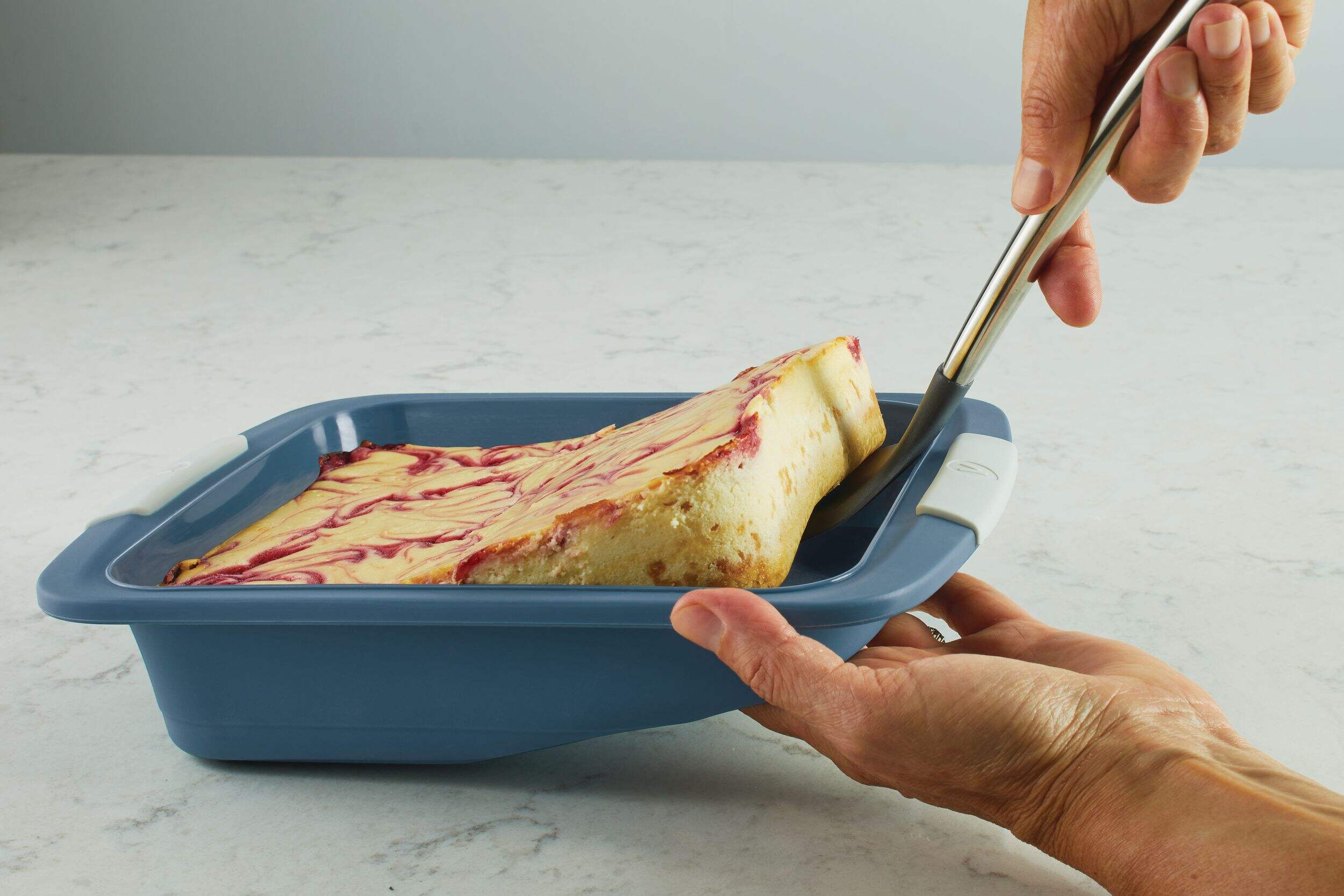 Moule à gâteau carré en silicone renforcé Vida par PADERNO doté d'un cadre en acier permettant une manipulation sécuritaire à l'intérieur et à l'extérieur du four