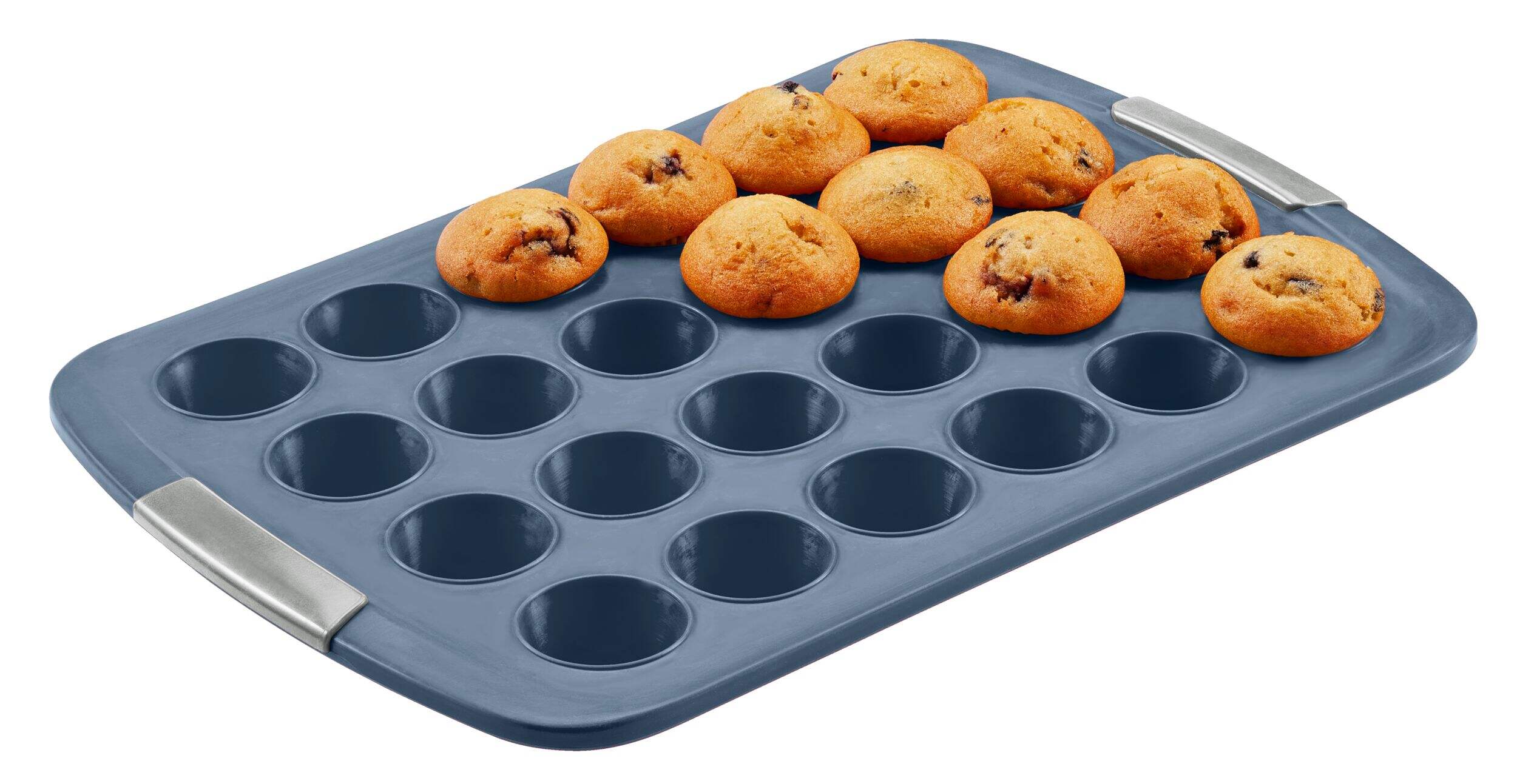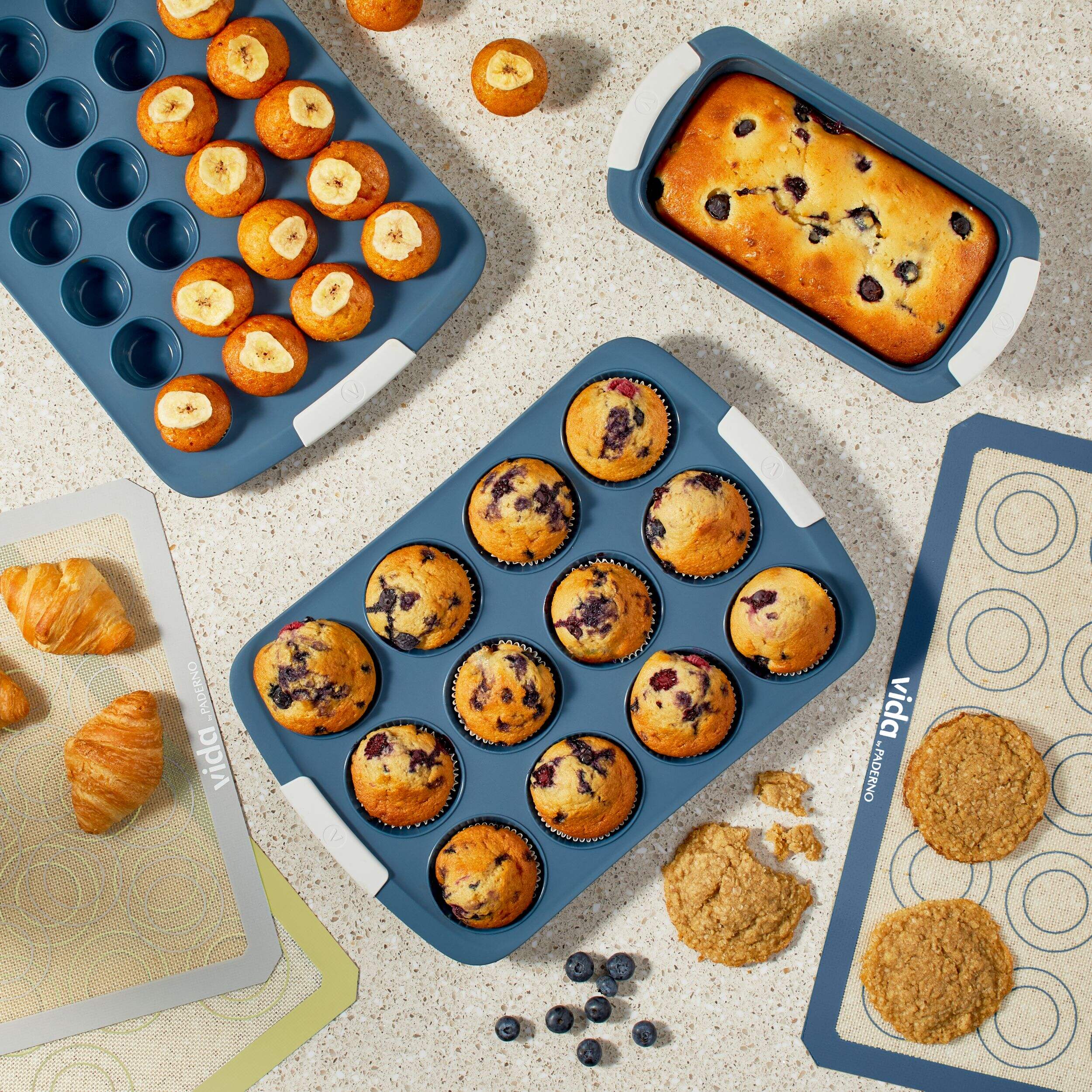 Moule à muffins miniatures en silicone à structure intégrée Vida de PADERNO doté d'un cadre en acier permettant une manipulation sécuritaire à l'intérieur et à l'extérieur du four