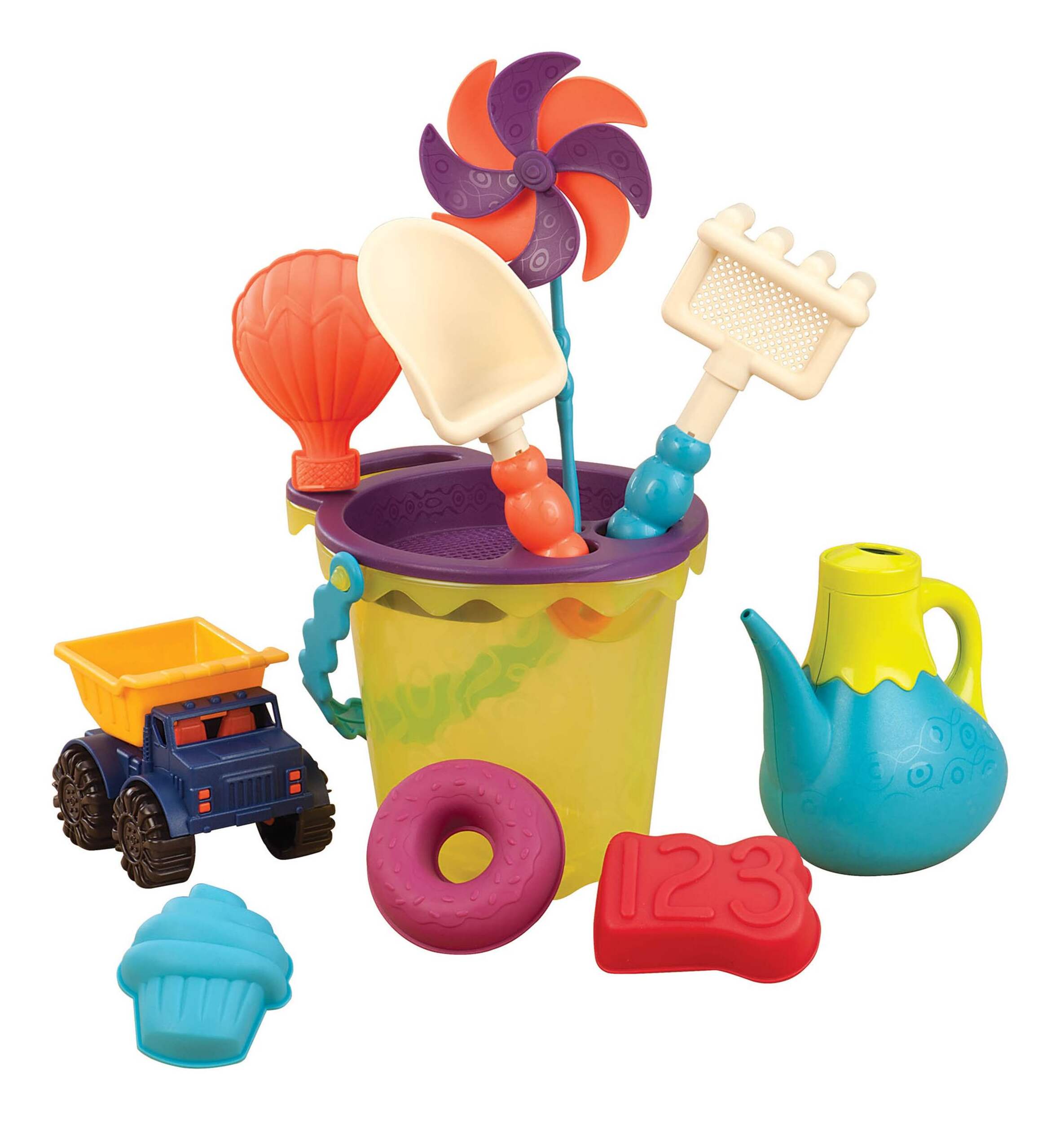 Profitez du soleil et vivez des aventures sablonneuses avec le sac de plage et l'ensemble de jouets de sable B. Ready de Battat. Doté de tout ce dont les enfants ont besoin pour une journée à la plage, cet ensemble coloré laisse libre cours à leur imagination. Façonnez des sculptures créatives avec des moules de sable aux couleurs éclatantes, dégagez le chemin pour le camion à benne à l'aide du râteau et de la pelle et construisez de grands châteaux de sable avec le seau et l'arrosoir. Complétez le tout avec le moulin à vent amusant pour créer un chef-d'oeuvre parfait sur la plage.