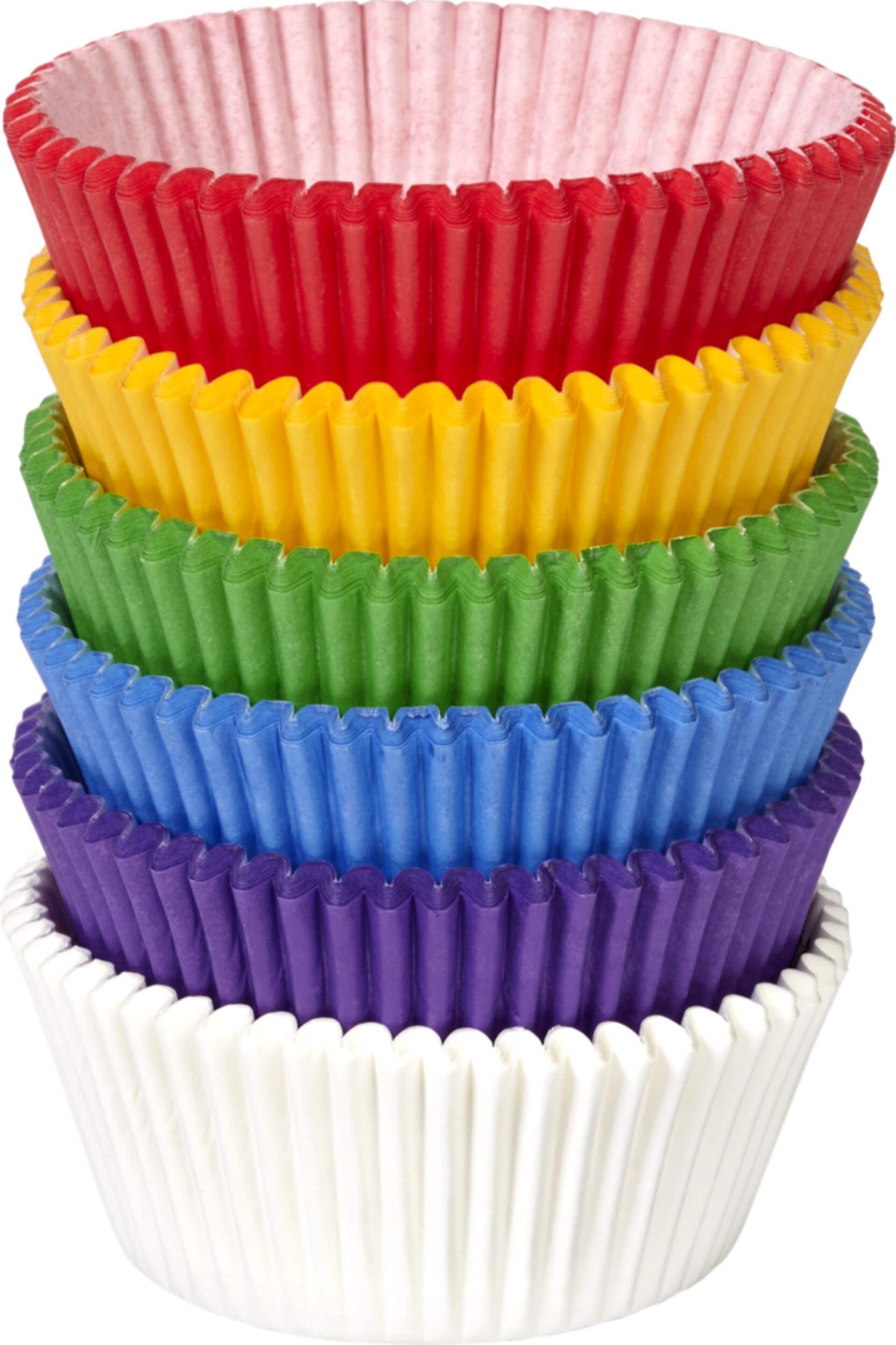 Décorez une fournée de petits gâteaux ou de muffins avec ces moules amusants. Inclut 6 doublures de couleur unie : rouge, jaune, vert, bleu, violet et blanc.