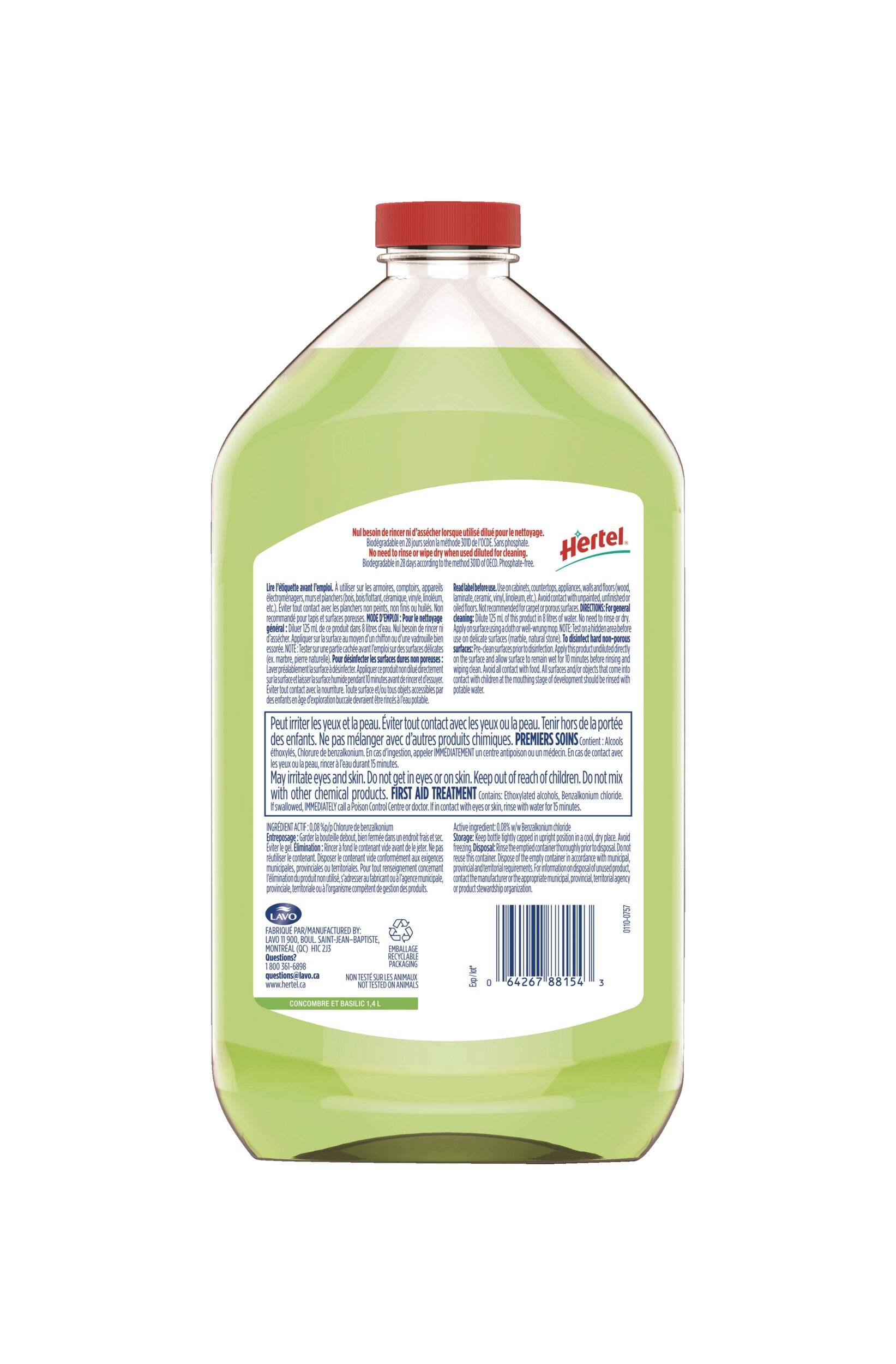 Nettoyant désinfectant multi-surfaces Hertel offrant un produit polyvalent et pratique qui nettoie et désinfecte toute la maison
