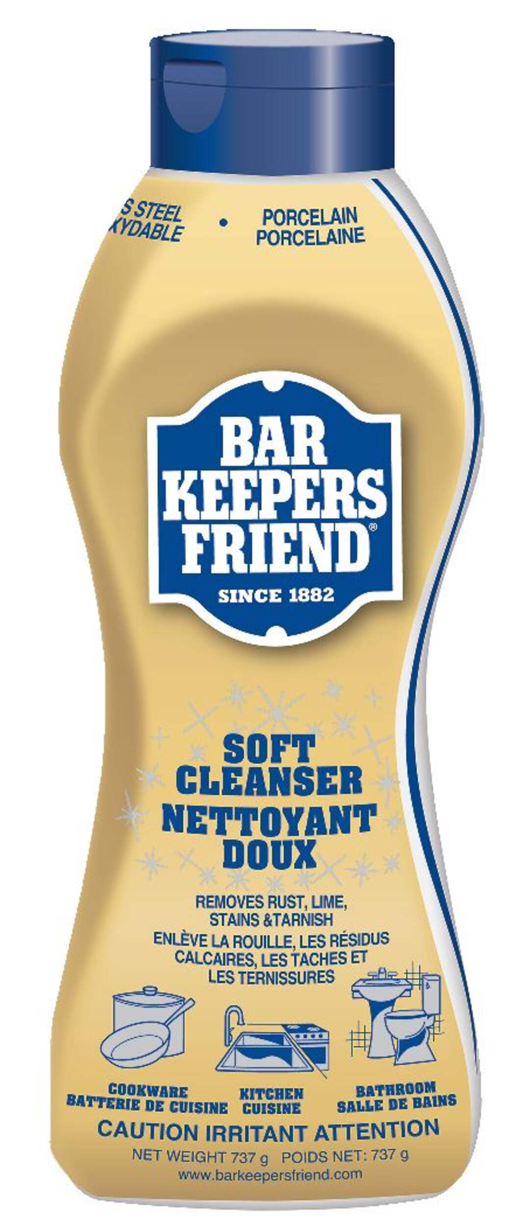 Le nettoyant doux Bar Keepers Friend est une solution de nettoyage polyvalente pour l'usage quotidien et les taches tenaces comme la rouille et le calcaire. Le nettoyant a une texture douce et crémeuse, idéale pour les tables de cuisson en acier inoxydable, en carrelage, en porcelaine, en céramique et en verre. Parfait pour une variété d'applications, y compris les surfaces de la cuisine et de la salle de bain, ce nettoyant multi-usages simplifie votre routine de nettoyage sans produits chimiques agressifs.