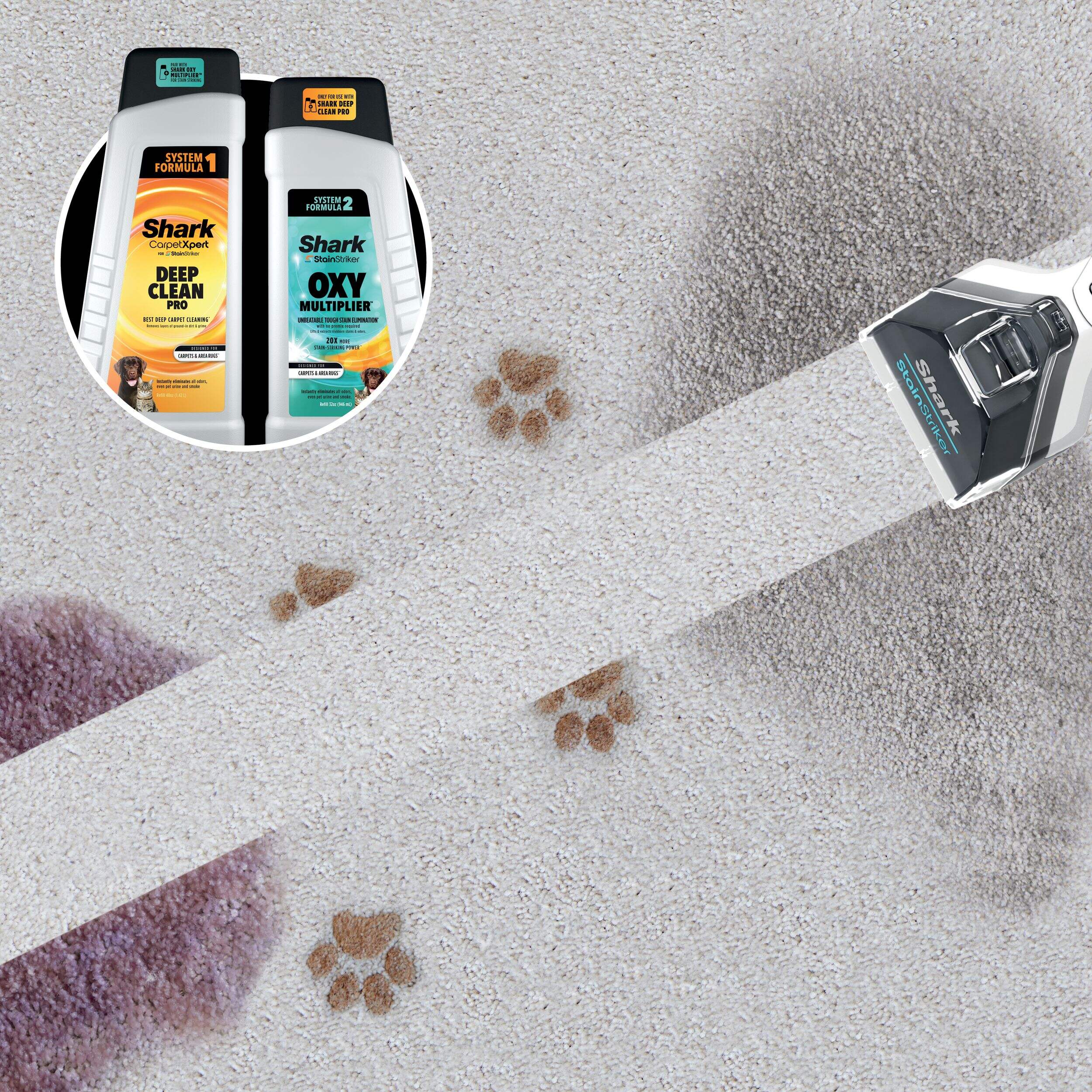 Nettoyant en profondeur pour tapis Shark et détachant Oxy Multiplier comprenant une solution de nettoyage en profondeur des tapis et une solution détachante