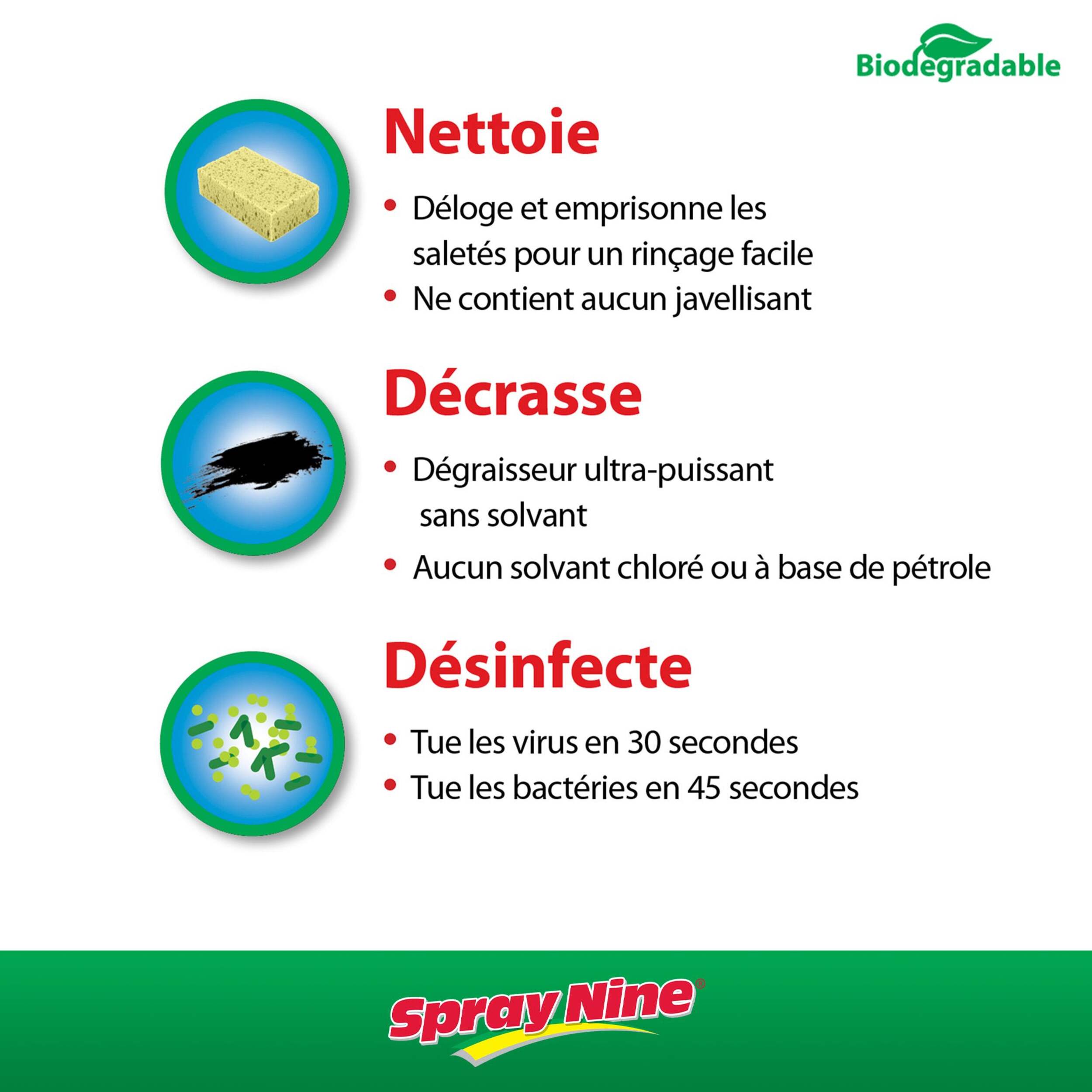 Disinfecte en 45 secondes, non-abrasif, ininflammable