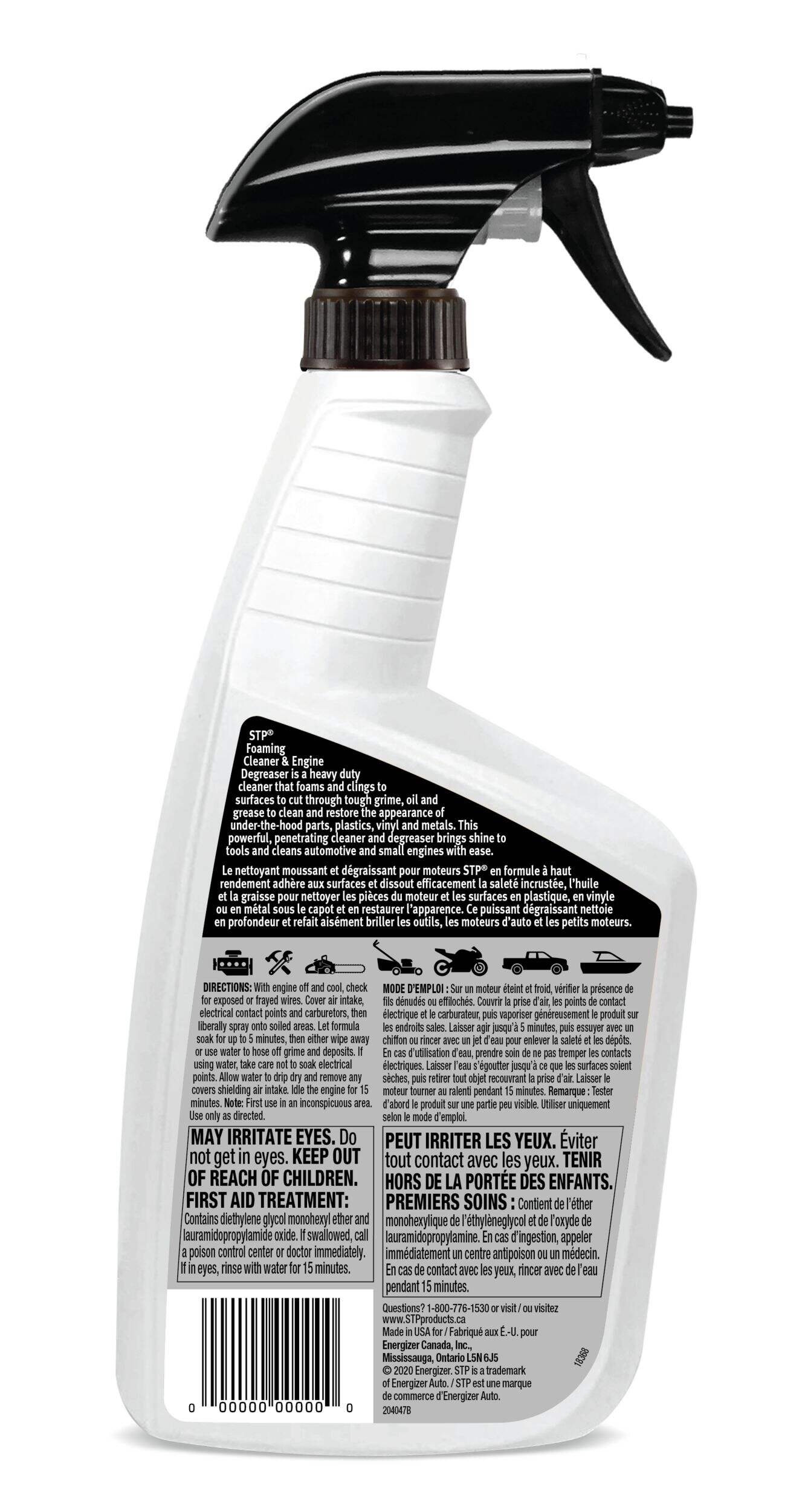 Nettoyant moussant et dégraissant de moteur STP en aérosolLe nettoyant moussant et dégraissant de moteur STP en aérosol est un nettoyant vigoureux qui mousse et adhère aux surfaces