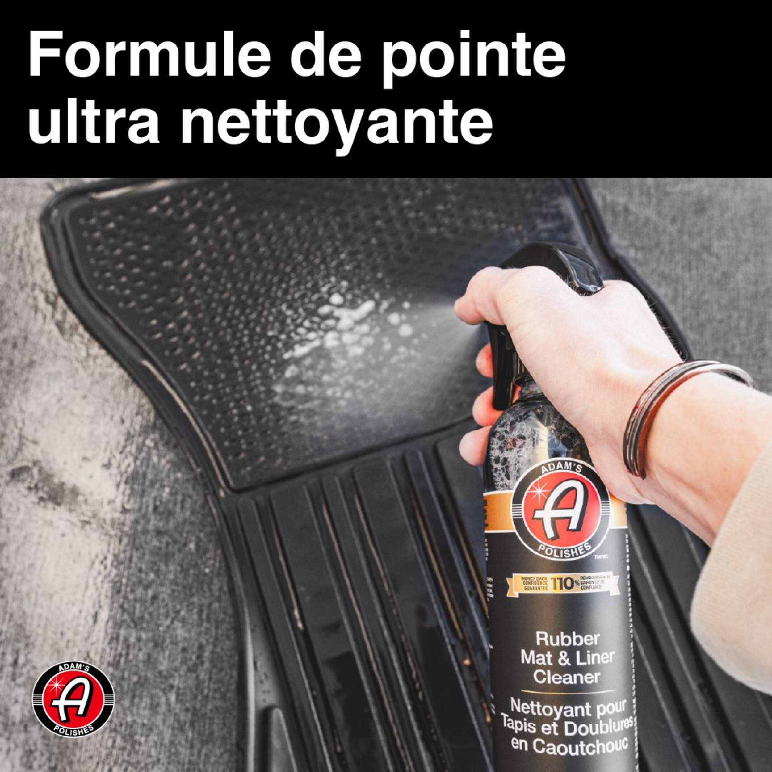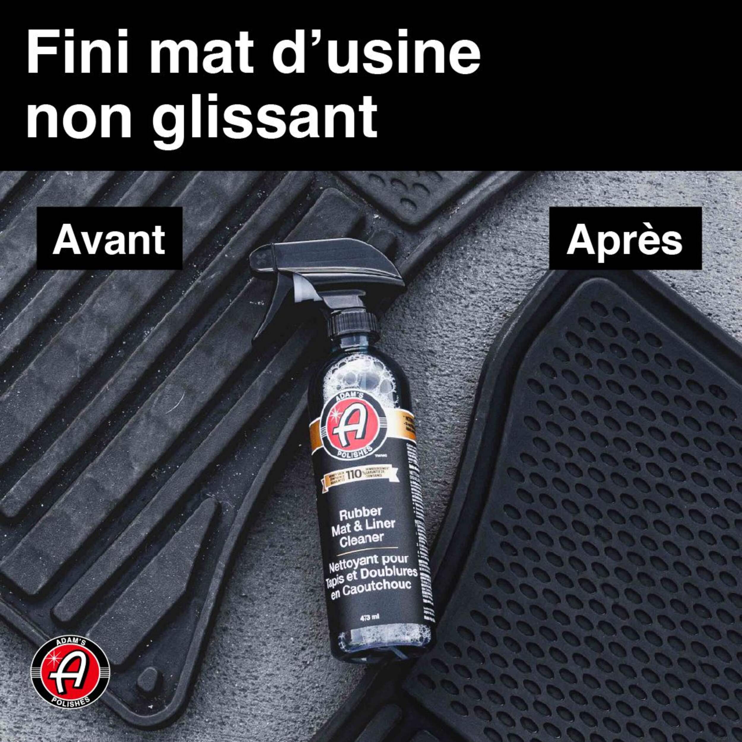 Vous en avez assez de regarder les tapis de sol sales et tachés de sel? Le nettoyant tapis et revêtement caoutchouc Adam's Polishes redonnera à vos tapis de sol et à vos doublures l'aspect du neuf avec une finition OEM d'un noir riche et profond. En tant que dégraissant à base de solvant, il permet de nettoyer les tapis de sol très sales avec un minimum d'effort. Pas de sensation glissante ni de résidu blanc crayeux. Les tapis frais que votre voiture mérite.