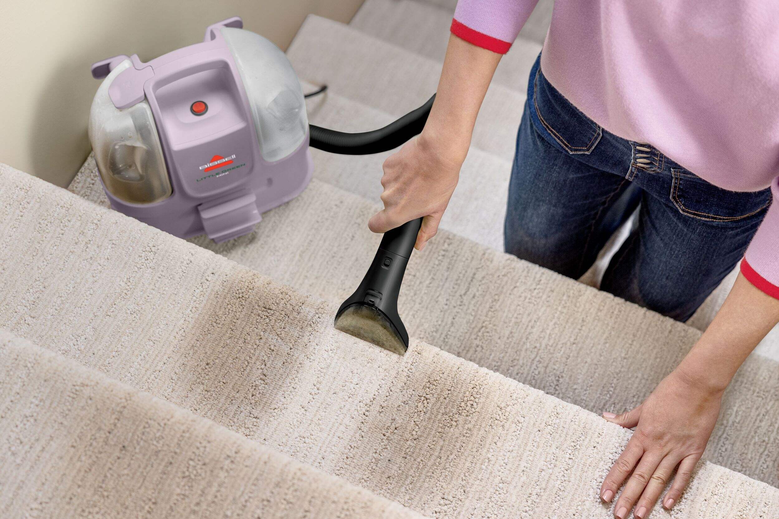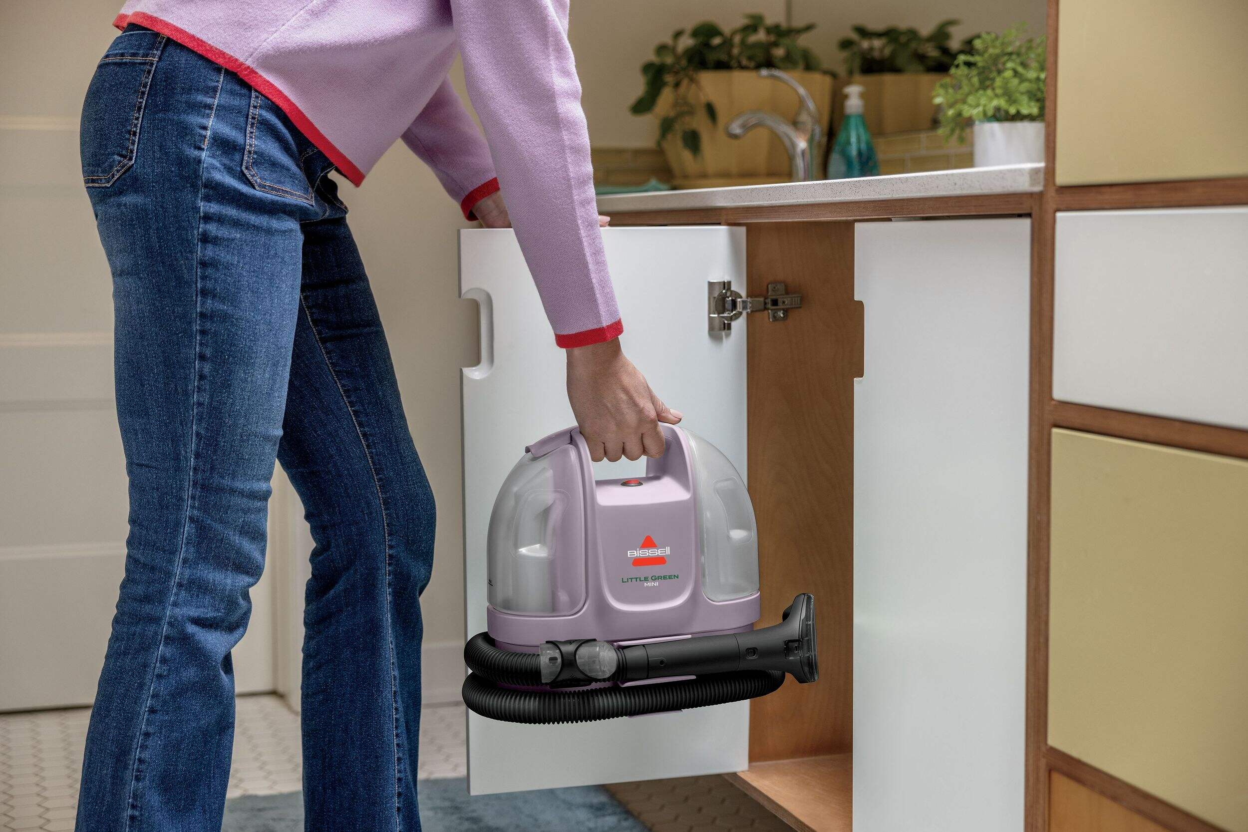 Comprend un accessoire pour les taches tenaces de 4 po avec lentille amovible, un accessoire pour tuyau autonettoyant HydroRinseMC et une formule antitaches BISSELLMD Little GreenMD OXY de 8 oz