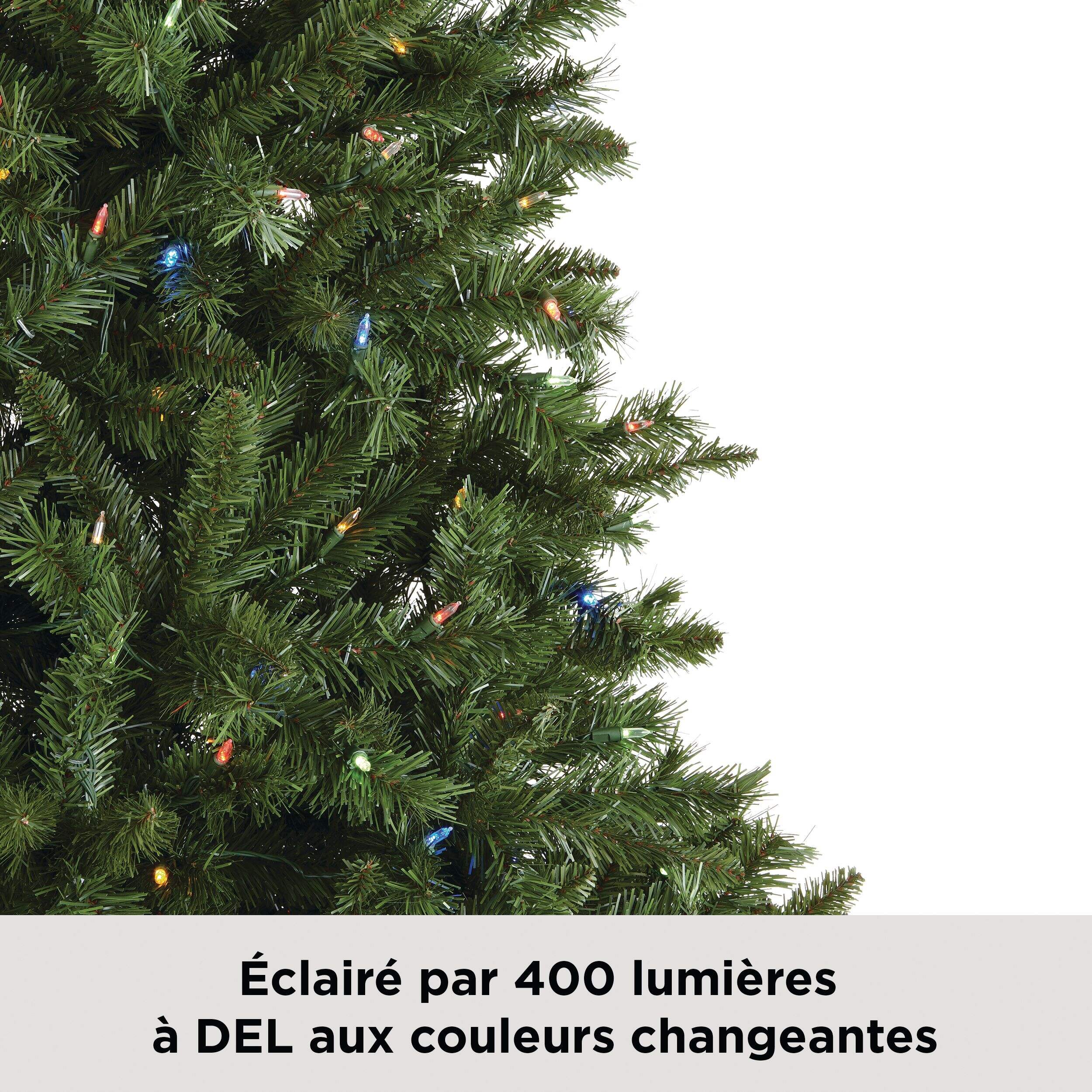 L'arbre de Noël illuminé NOMA Henry avec des ampoules à DEL aux couleurs changeantes de 7 pi, offre une allure des fêtes classique sans le dégât des aiguilles de pin et de l'eau renversée. Améliorez votre expérience des Fêtes en utilisant cette télécommande qui permet de personnaliser 400 ampoules à DEL écoénergétiques. Avec son support en métal robuste et ses 1 000 pointes de branches, cet arbre de Noël artificiel est un excellent choix pour suspendre toutes vos décorations préférées.