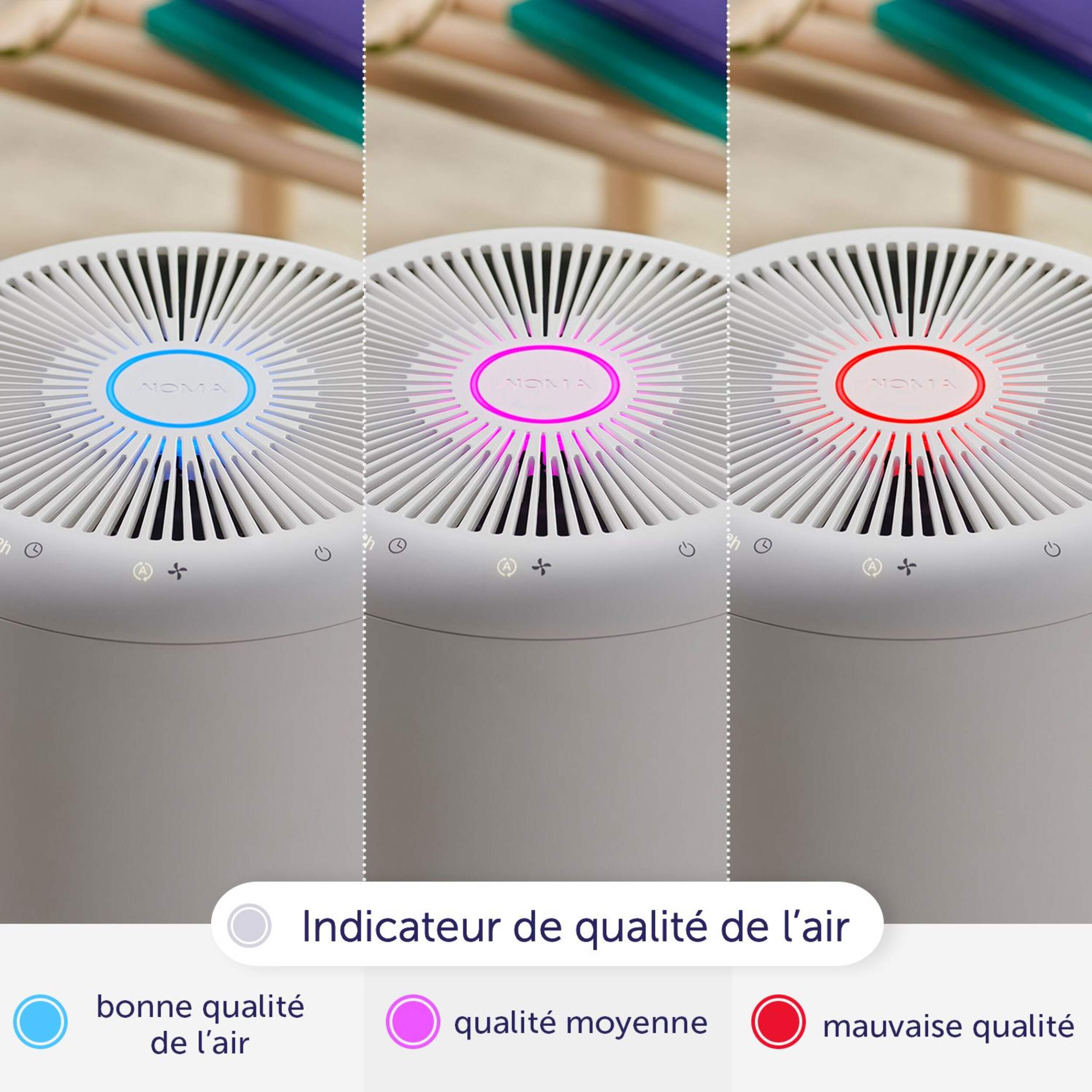 Le purificateur d'air intelligent Wi-Fi NOMA iQ True HEPA de taille moyenne est conçu pour améliorer la qualité de l'air intérieur en éliminant efficacement 99,97% des allergènes et des bactéries. Idéal pour les pièces de taille moyenne mesurant jusqu'à 200 pi2, il peut aussi purifier efficacement les espaces restreints de 100 pi2 ou moins. Restez informé sur la qualité de l'air avec l'anneau lumineux novateur qui change de couleur en fonction des conditions de l'air. Doté d'un panneau de commande EASYTOUCHMC avec technologie Secret-Until-Lit, les lumières sont claires et lumineuses lorsqu'elles sont allumées, tout en se fondant harmonieusement dans le modèle lorsqu'elles sont éteintes, ajoutant une touche d'élégance à votre espace. Réglez facilement le débit d'air avec plusieurs réglages de vitesse du ventilateur et profitez de la fonction de vitesse automatique du ventilateur, qui s'ajuste automatiquement en fonction de la qualité de l'air pour une performance optimale.