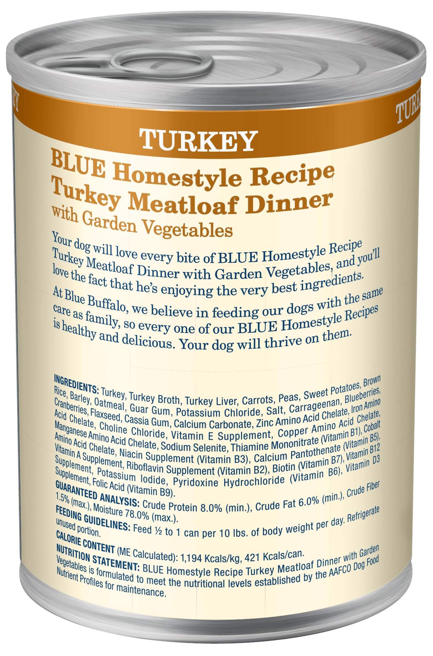Repas maison pour chien Blue Buffalo BLUE, pain de viande à la dinde et légumes, une conserve aux ingrédients sains et entièrement naturels qui fournit une nutrition supérieure à votre chien