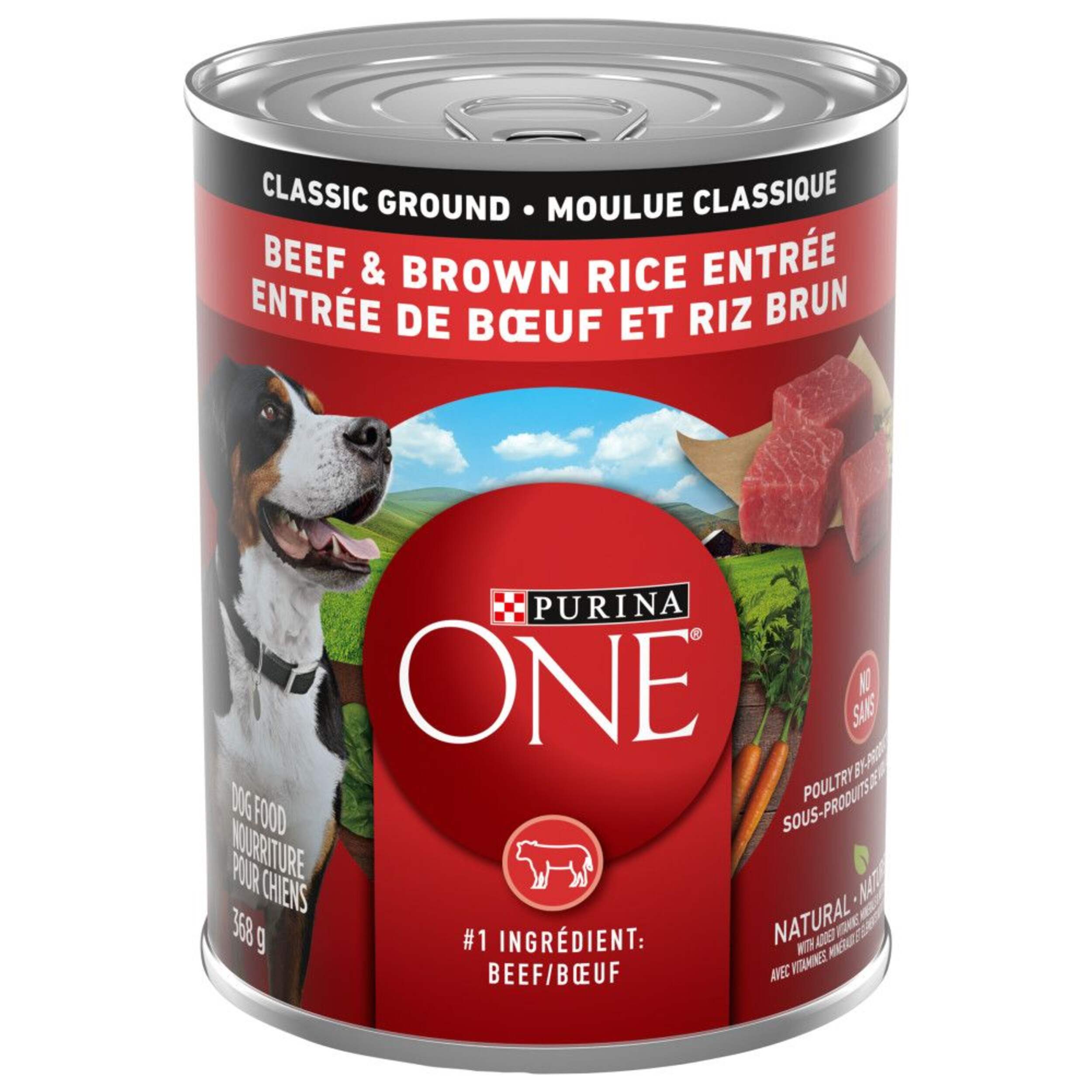 Offrez une saveur classique à votre chien grâce à la nourriture humide pour chiens adultes hachée naturelle classique Purina ONE' MD boeuf haché et riz brun. Le boeuf véritable en tant qu'ingrédient principal vous permet de servir cette recette à l'heure du repas, et la formule hachée classique offre une combinaison de goût et de texture alléchante à laquelle votre chien ne peut résister. Cette recette est hautement digestible, de sorte qu'une plus grande quantité d'éléments nutritifs est absorbée par l'organisme de votre chien. De plus, l'absence d'agents de remplissage et de sous-produits de volaille signifie que chaque ingrédient de haute qualité contenu dans cette recette a sa raison d'être. Avec une teneur élevée en protéines dans chaque portion, cette nourriture humide pour chiens contribue à renforcer les muscles de votre chien pour qu'il puisse conserver son mode de vie actif, et des sources naturelles de glucosamine favorisent la santé des articulations. Offrez à votre chien l'alimentation complète et équilibrée à 100 % dont il a besoin pour rester en bonne santé tout au long de sa vie lorsque vous remplissez son plat avec cette délicieuse recette de nourriture en conserve pour chiens.