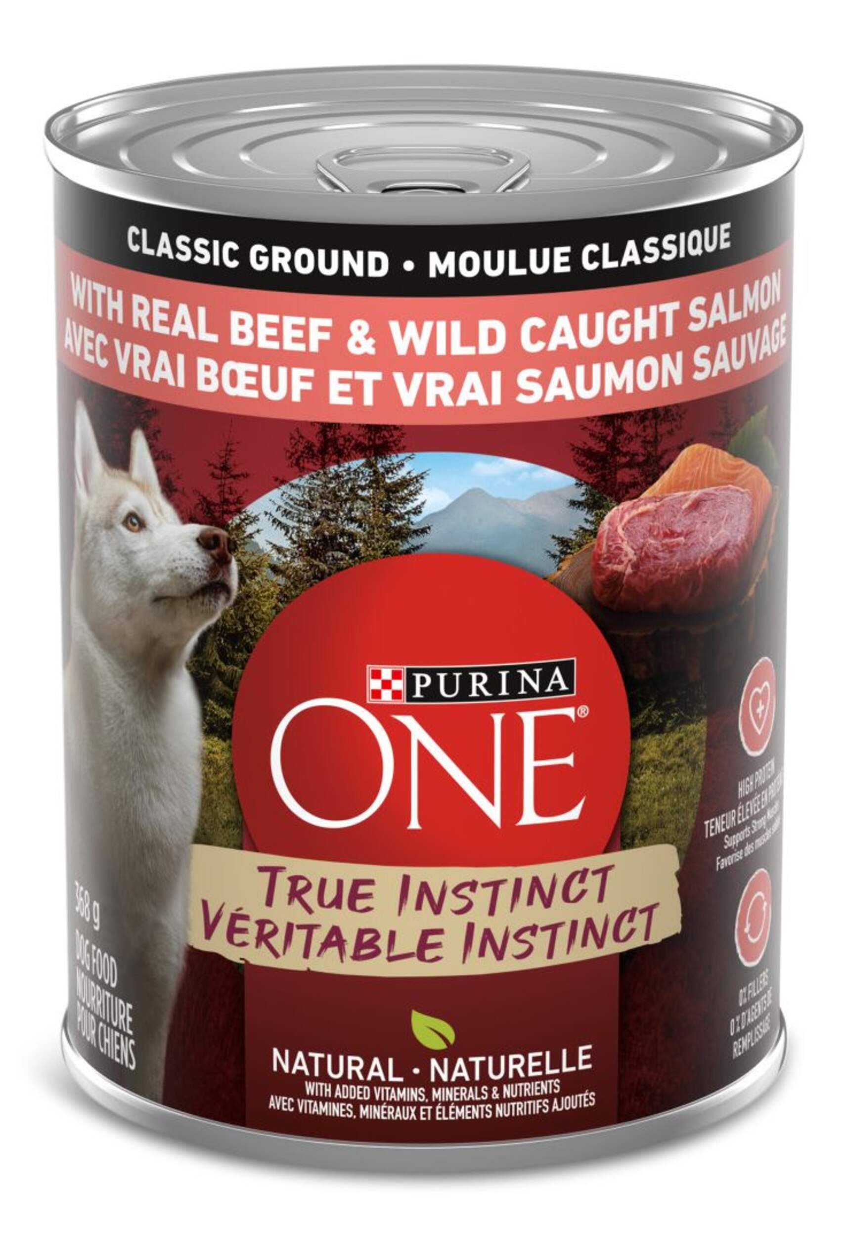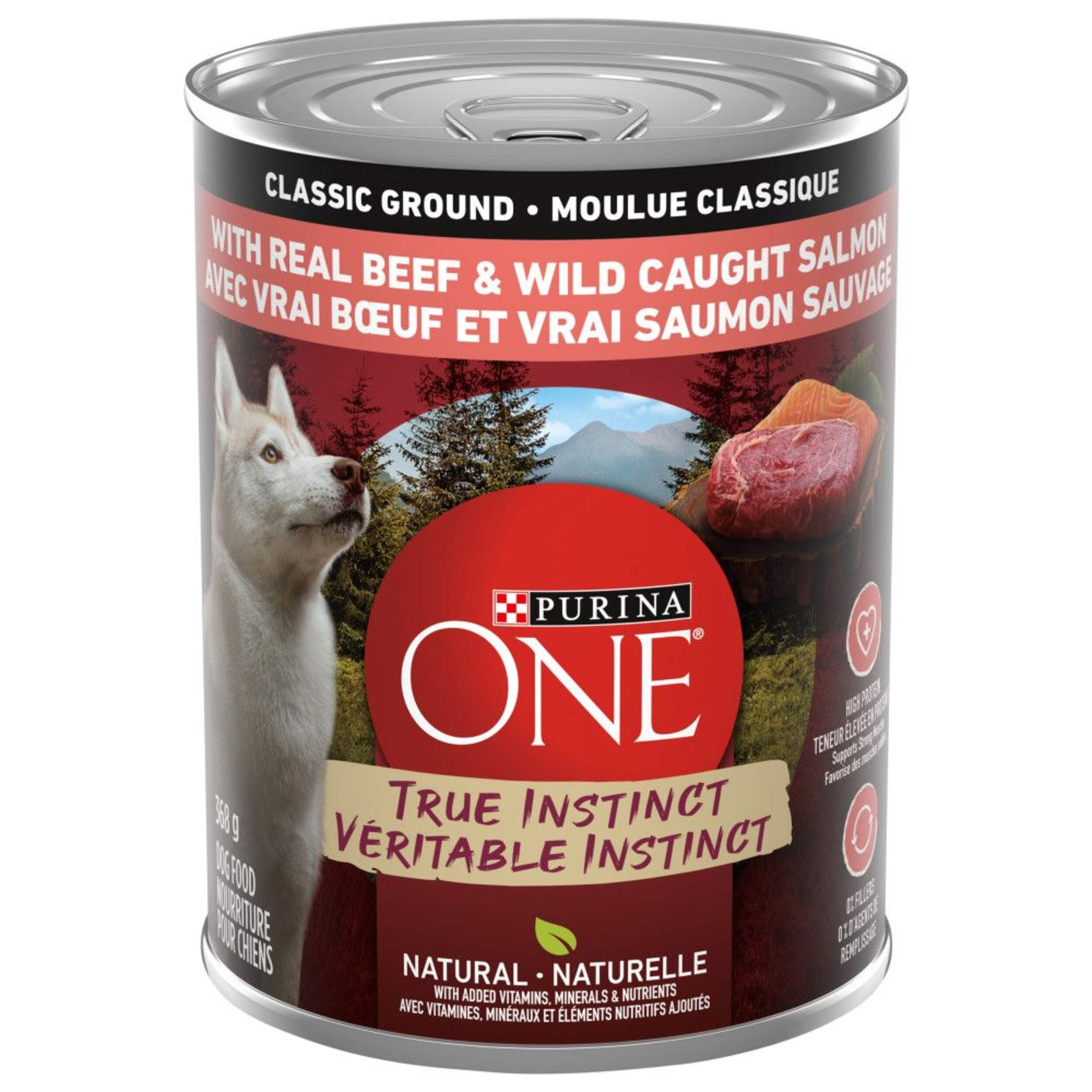 Donnez à votre chien un repas complet et équilibré à 100 % avec la nourriture humide pour chiens Purina ONEMD Véritable instinct, boeuf et saumon