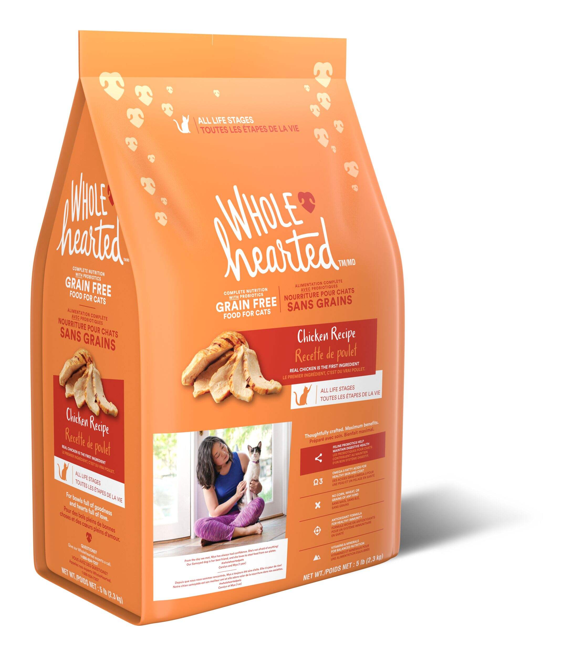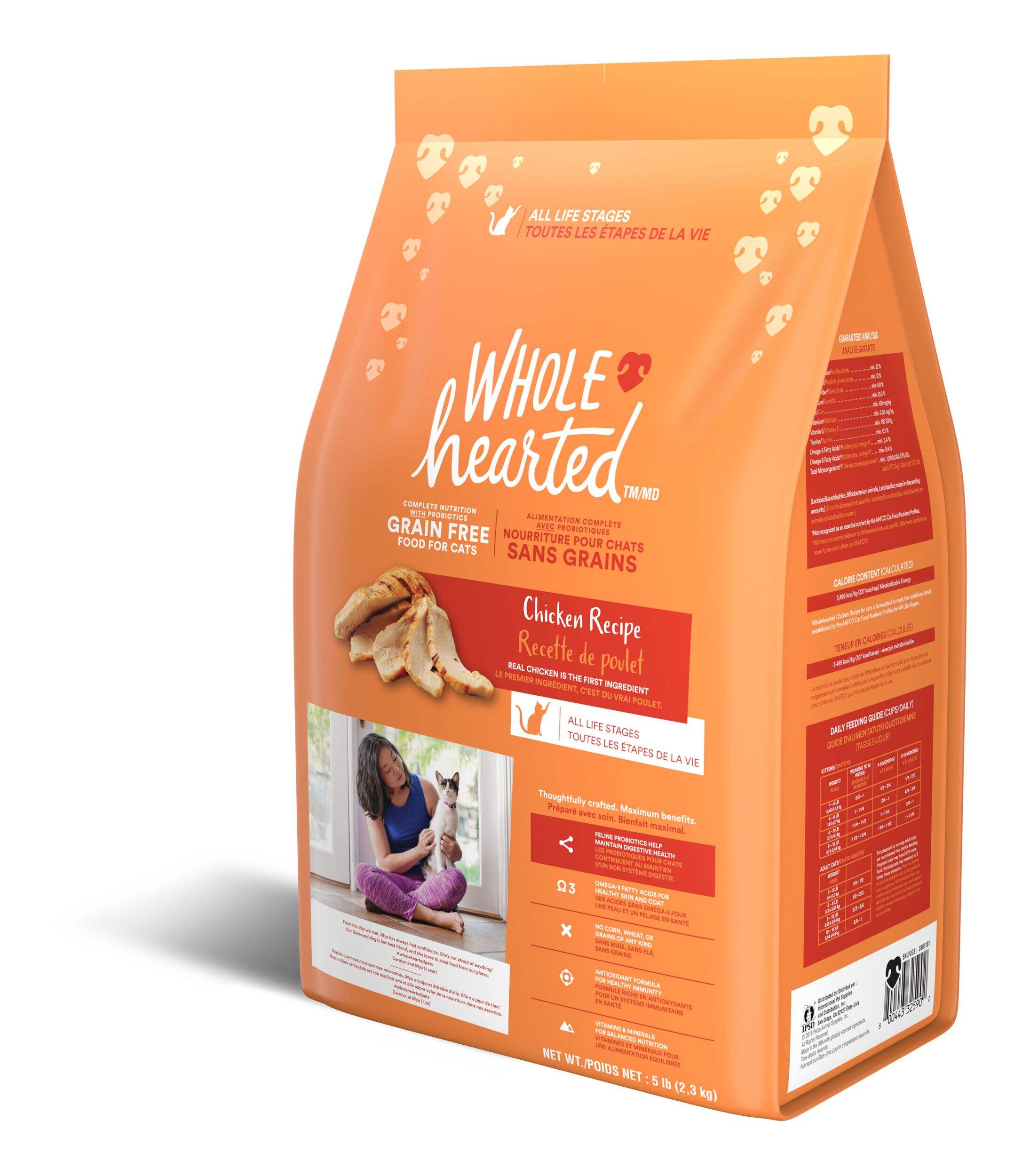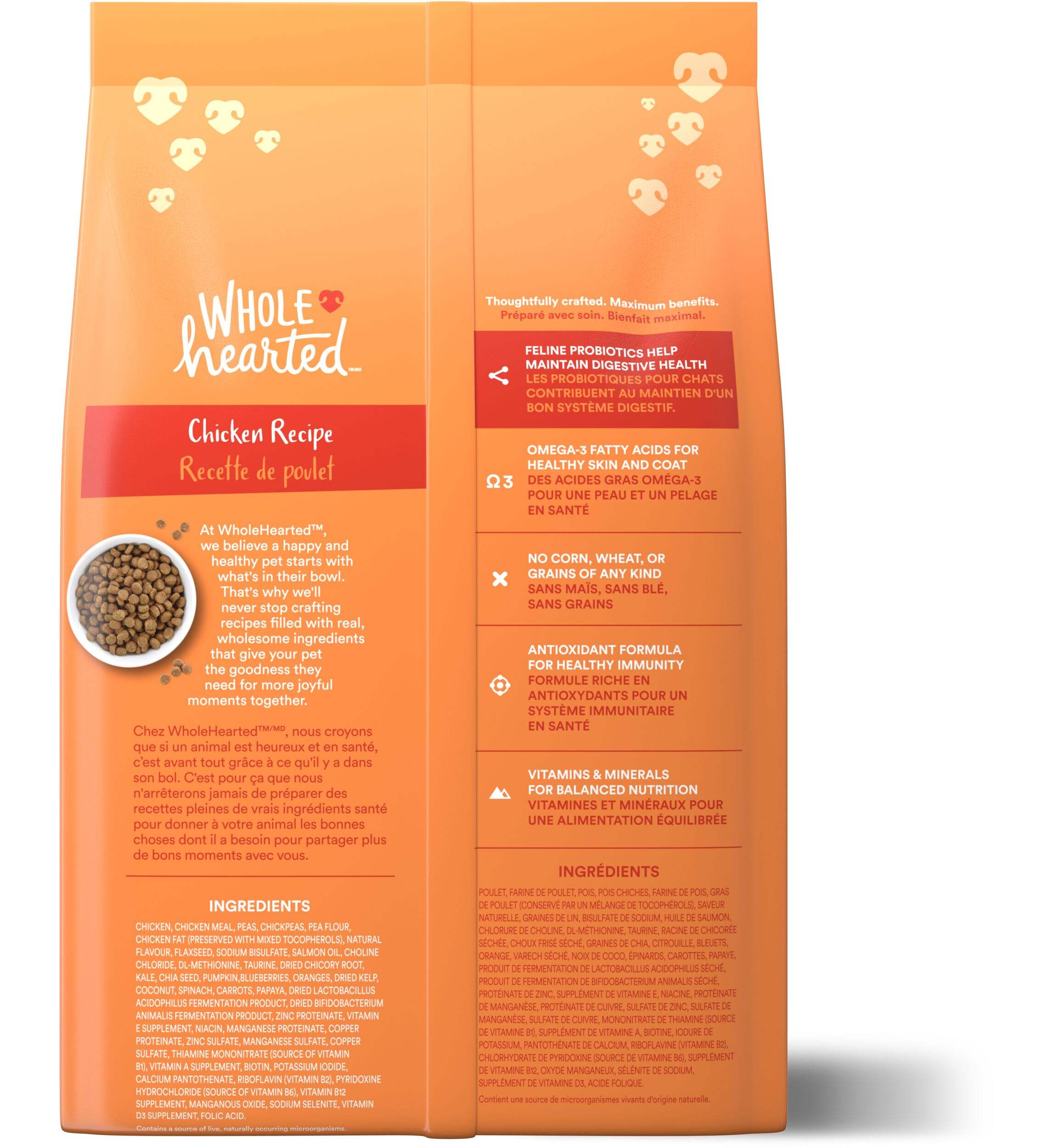 Nourriture sèche sans grains pour chats WholeHearted au poulet qui contient des antioxydants, des probiotiques pour chats et davantage pour soutenir la santé de votre animal de compagnie. Répondez à leurs préférences et à leurs besoins de santé avec cette recette équilibrée, offrant une saveur délicieuse ainsi que des vitamines et des minéraux