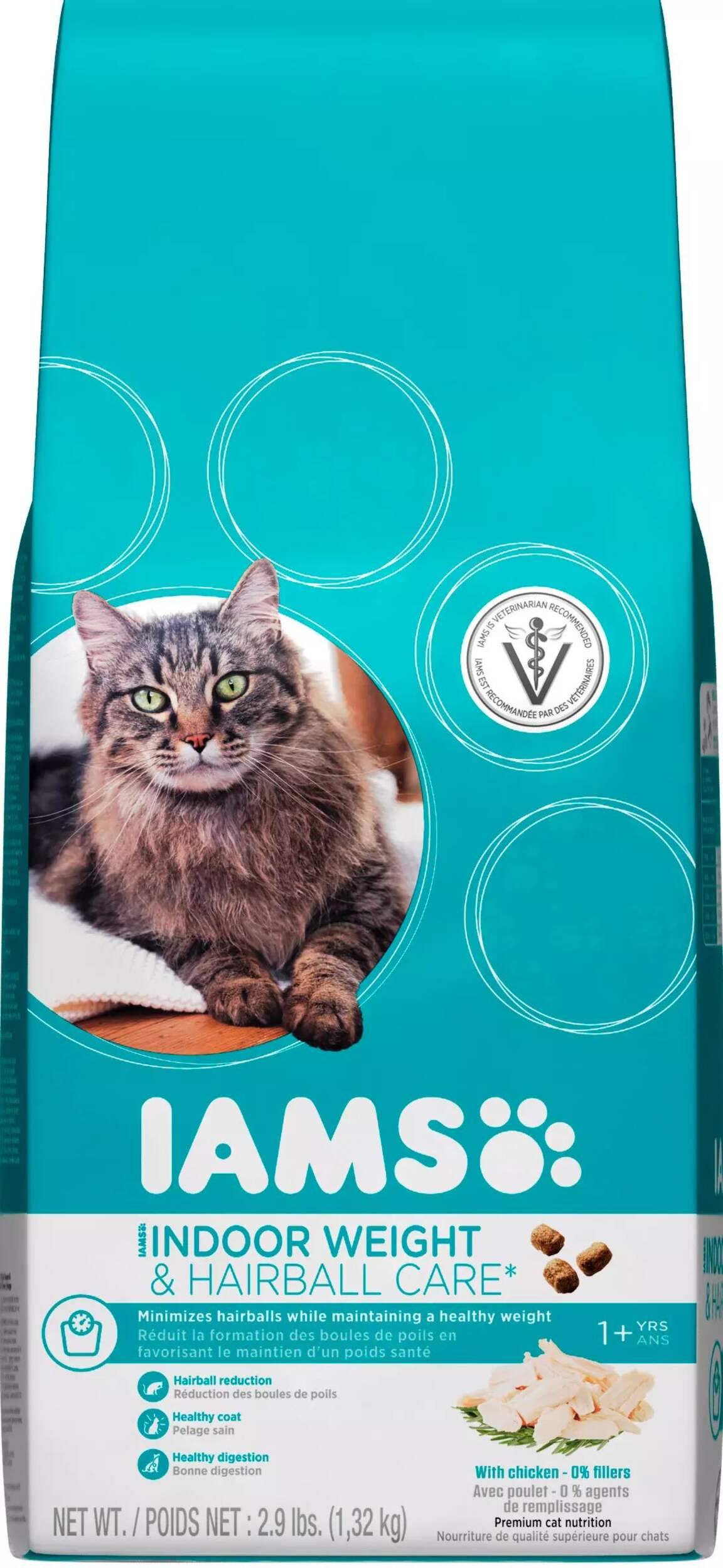 Nourriture sèche pour chats d'intérieur adultes IAMS PROACTIVE HEALTH Contrôle des boules de poils et du poids permet de maintenir un poids sain grâce à la L-Carnitine, qui métabolise les acides gras