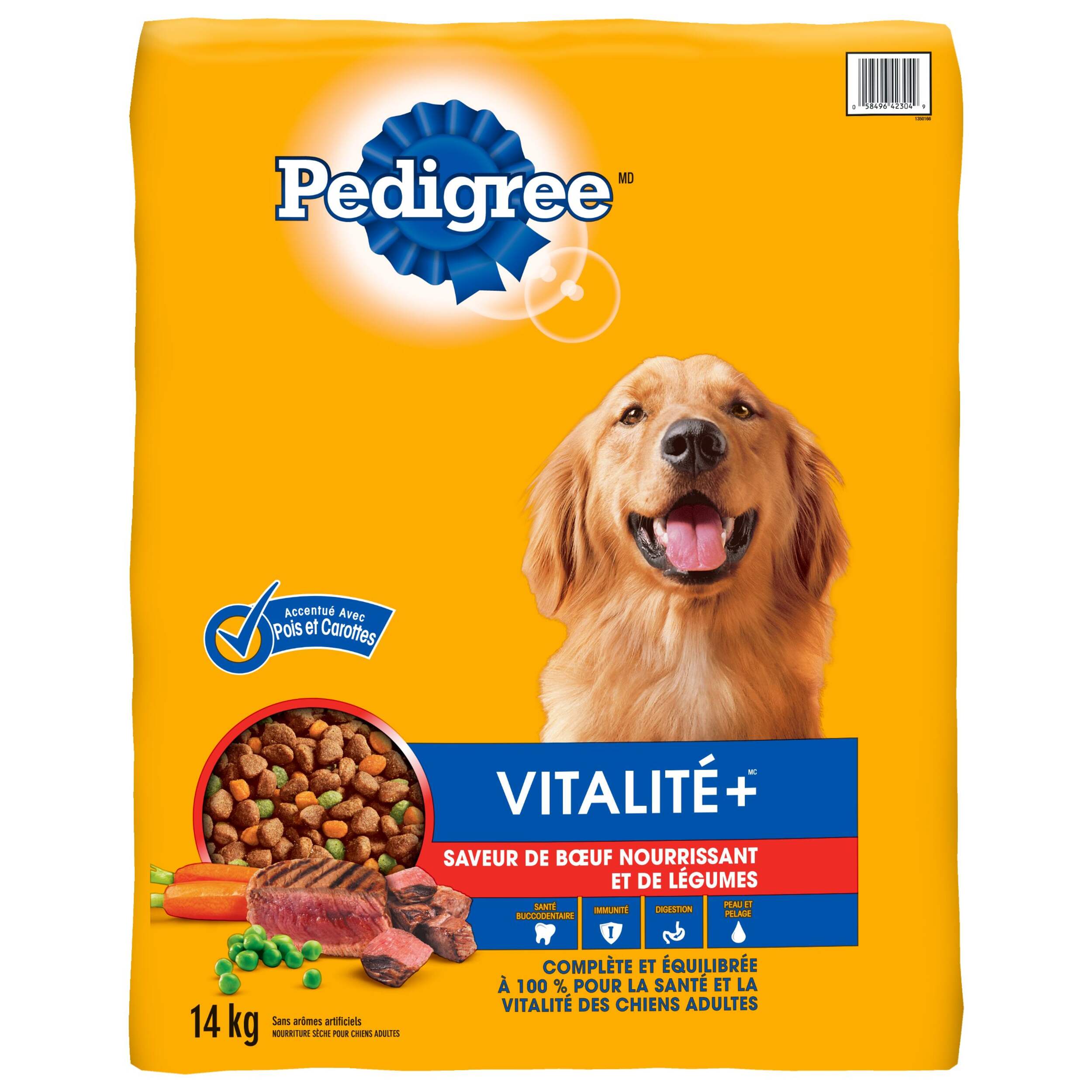 Nourriture pour chiens adultes PEDIGREEMD VITALITY+ à saveur de boeuf et de légumes qui est formulée pour donner aux chiens toute l'énergie et la nutrition nécessaires pour vivre pleinement leur vie. Votre chien raffolera de cette délicieuse recette rehaussée de pois et de carottes.