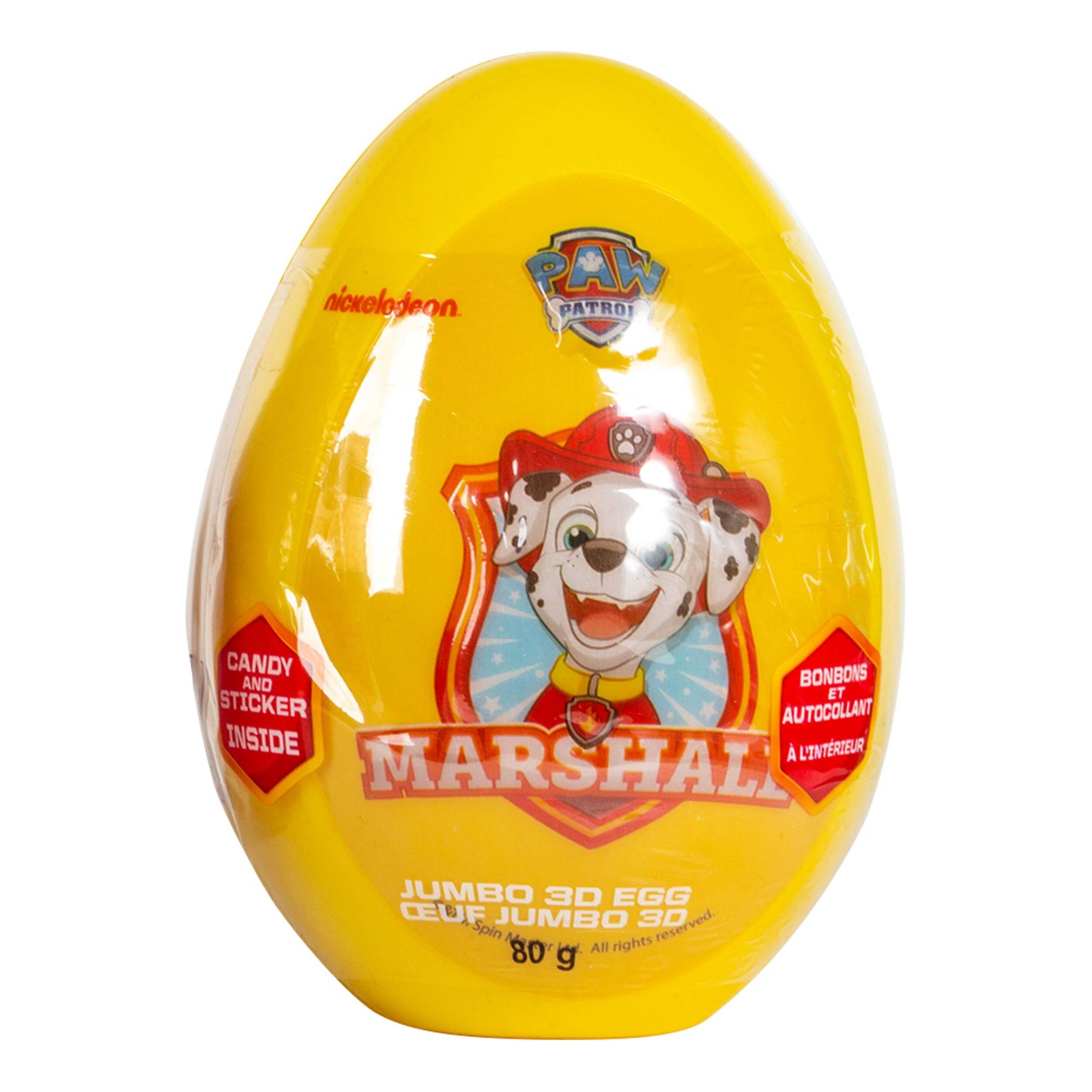 Oeuf en plastique embossé sur le thème de la Pat'Patrouille avec bonbons au sucre et autocollants