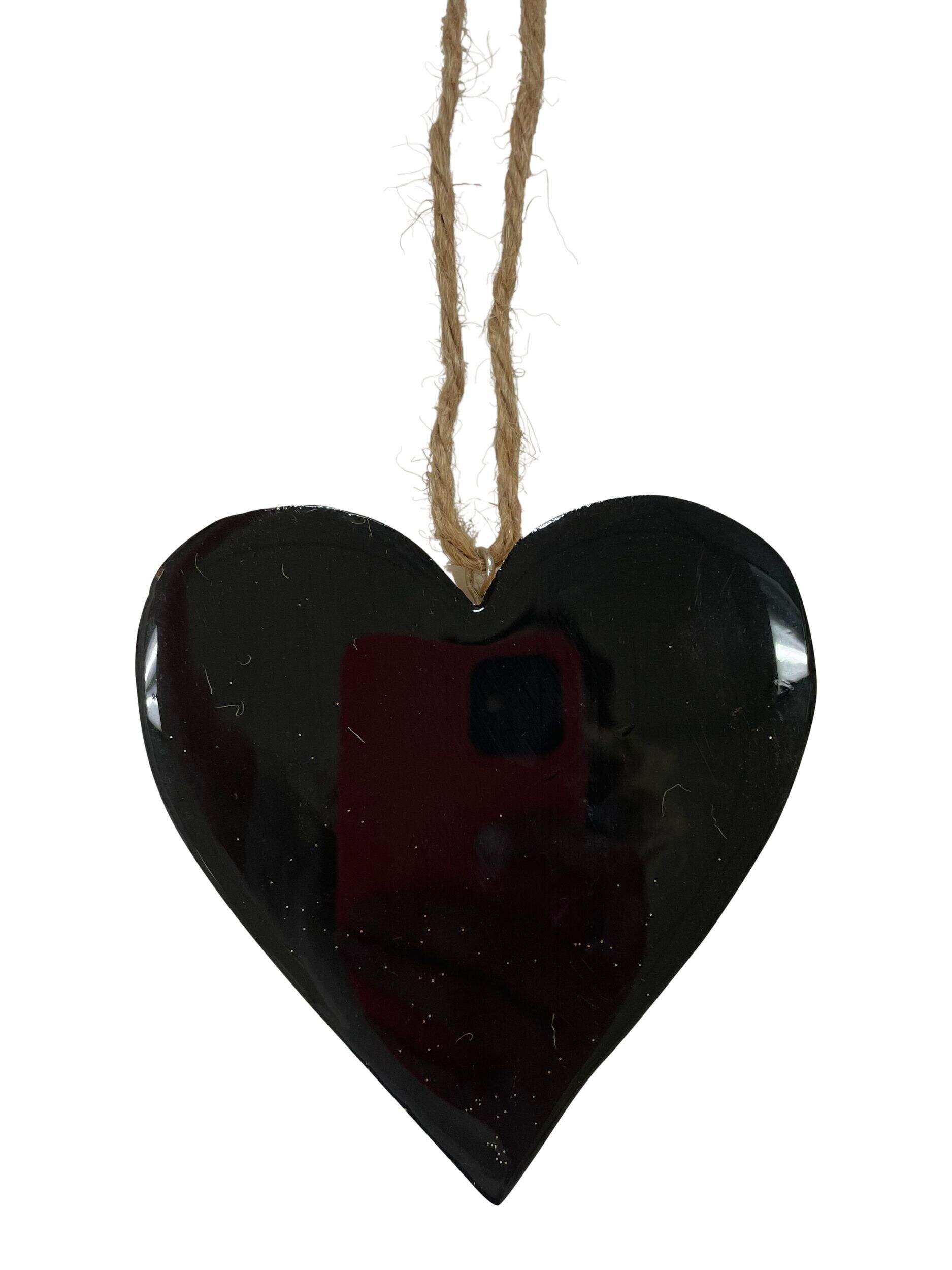 Joli ornement coeur en bois gros avec un devant noir émail brillant