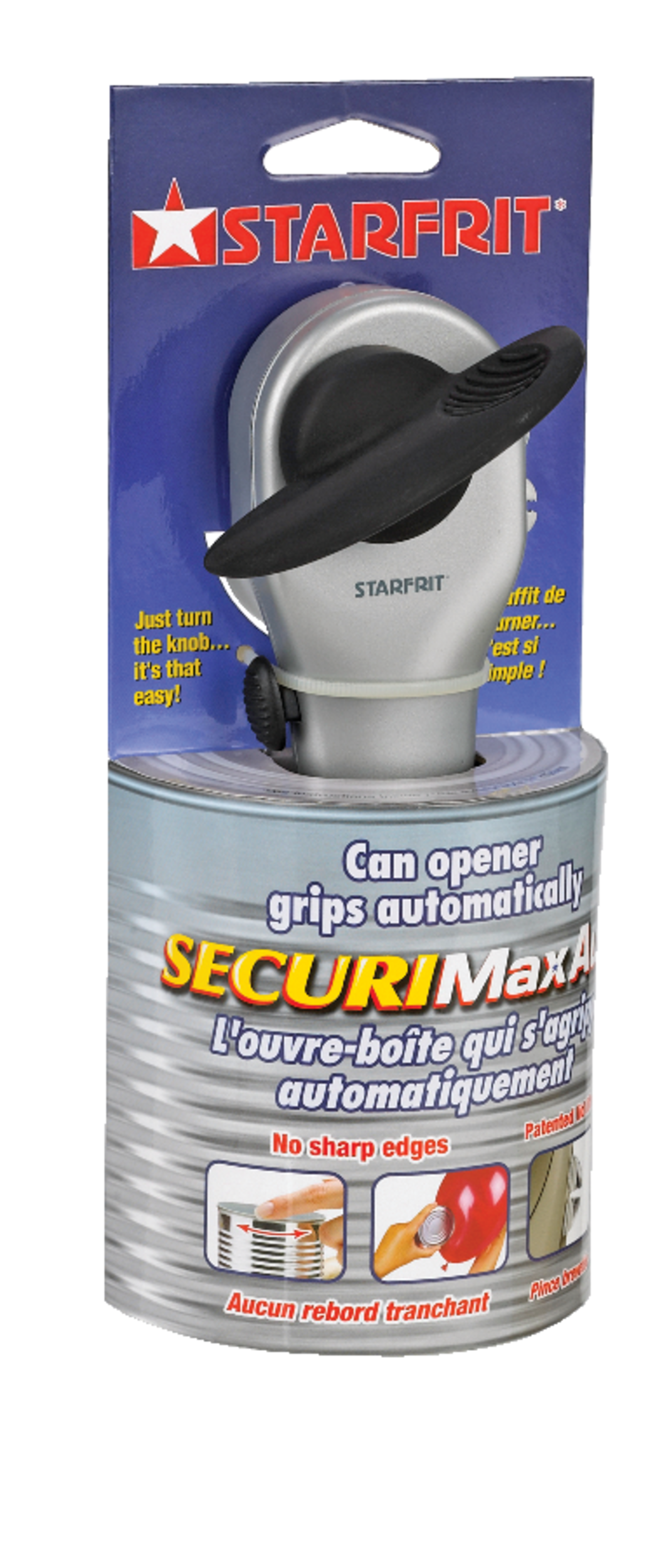 L'ouvre-boîte Starfrit Securimax en acier inoxydable est conçu pour la sécurité et la simplicité. Cette version mise à jour garantit qu'aucun bord tranchant n'est laissé, grâce à sa conception ergonomique et à sa prise automatique.