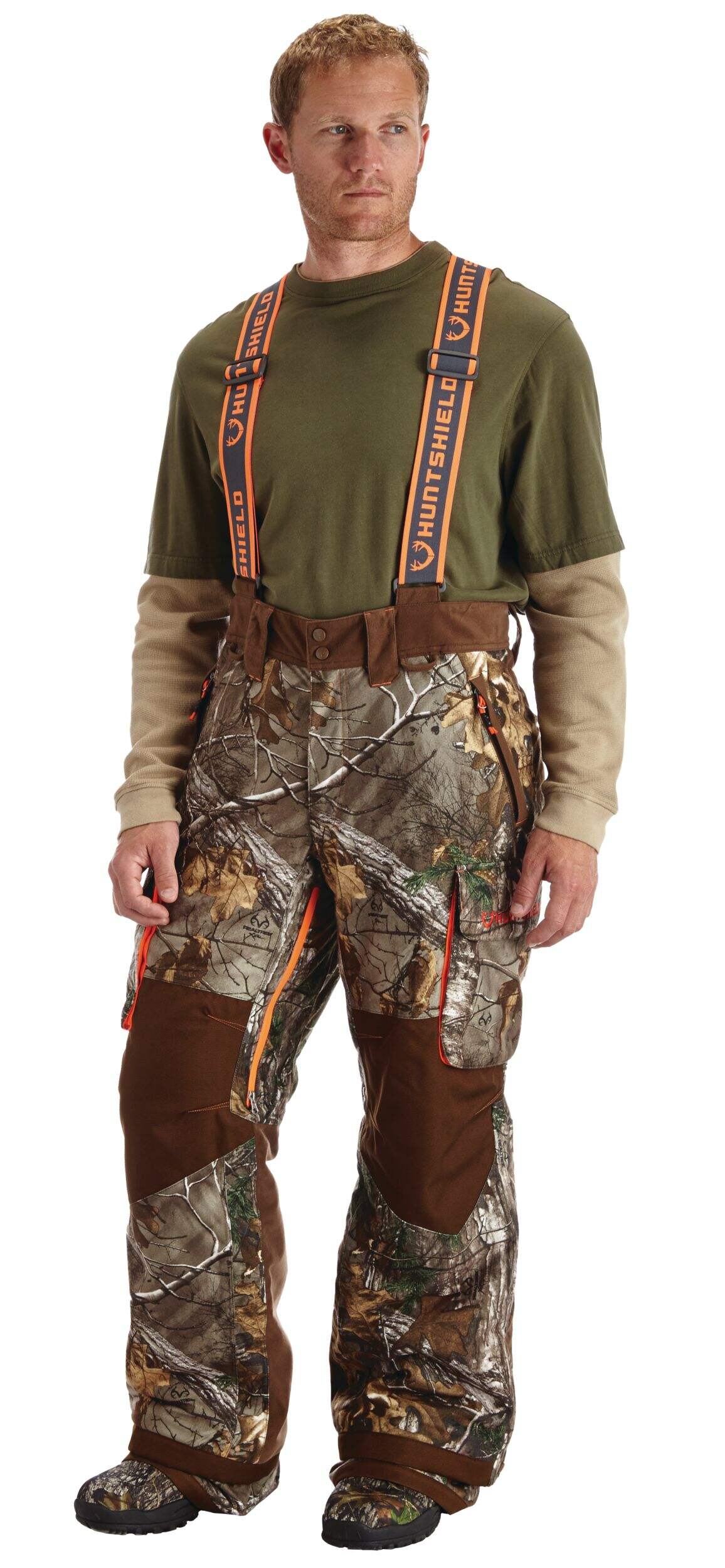 Huntshield Men's Cargo Insulated Waterproof Suspender Hunting Pants provide exceptional protection against the elements. Designed for hunters with a Realtree Edge Camo print, these pants are engineered for comfort and functionality during outdoor activities. The breathable material and added stretch ensure mobility, while the thoughtful layout offers ample storage for gear. These pants help give you the confidence to tackle challenging weather and environments, allowing you to concentrate on your hunt.