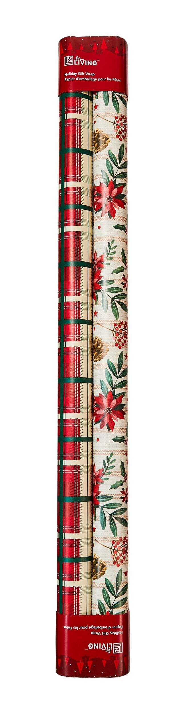 Rehaussez vos cadeaux des Fêtes avec l'aide du papier d'emballage traditionnel des Fêtes For Living. Il n'y a rien de tel que le plaisir de voir des cadeaux colorés empilés sous l'arbre de Noël, et ces motifs festifs classiques ne vous décevront pas. Généreuse surface de 150 pieds carrés de papier-cadeau des Fêtes aux lignes de quadrillage transparentes qui facilite plus que jamais la finition de votre emballage des Fêtes avec style.
