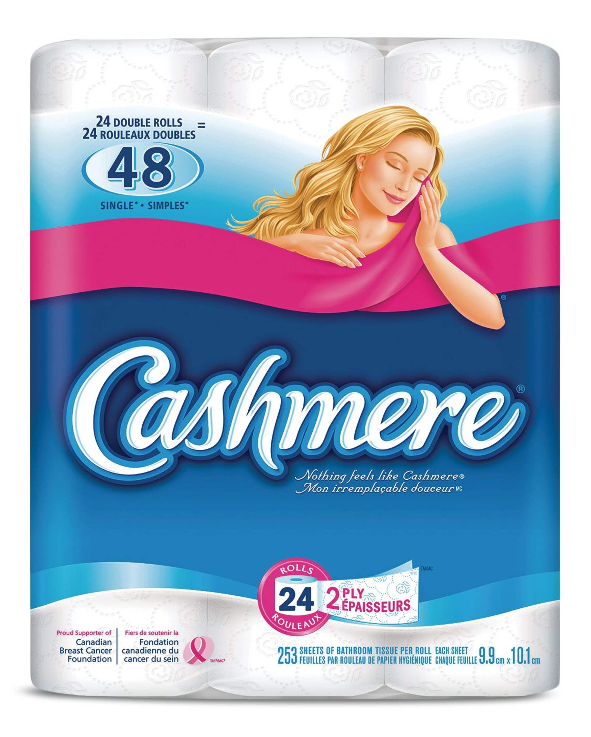 Papier hygiénique en double rouleau Cashmere qui offre un tissu matelassé 2 plis d'une douceur irrésistible pour une expérience vraiment confortable. Tissu hypoallergénique testé par des dermatologues et sans danger pour les fosses septiques, ce qui assure confort et tranquillité d'esprit. Fièrement fabriqué au Canada, ce papier hygiénique de qualité supérieure soutient les fondations canadienne et québécoise du cancer du sein depuis plus de 15 ans. Vous et votre famille pouvez utiliser le papier hygiénique Cashmere en toute quiétude pour de nombreuses raisons.