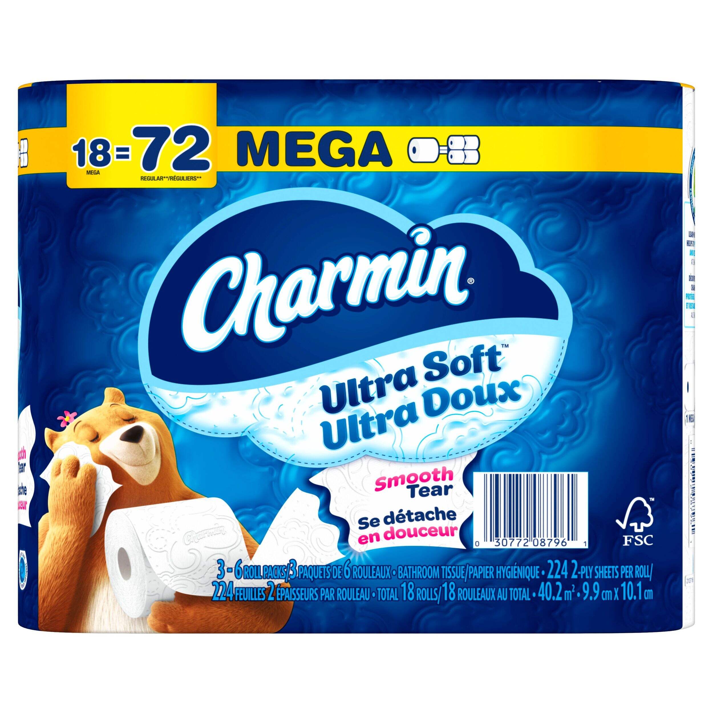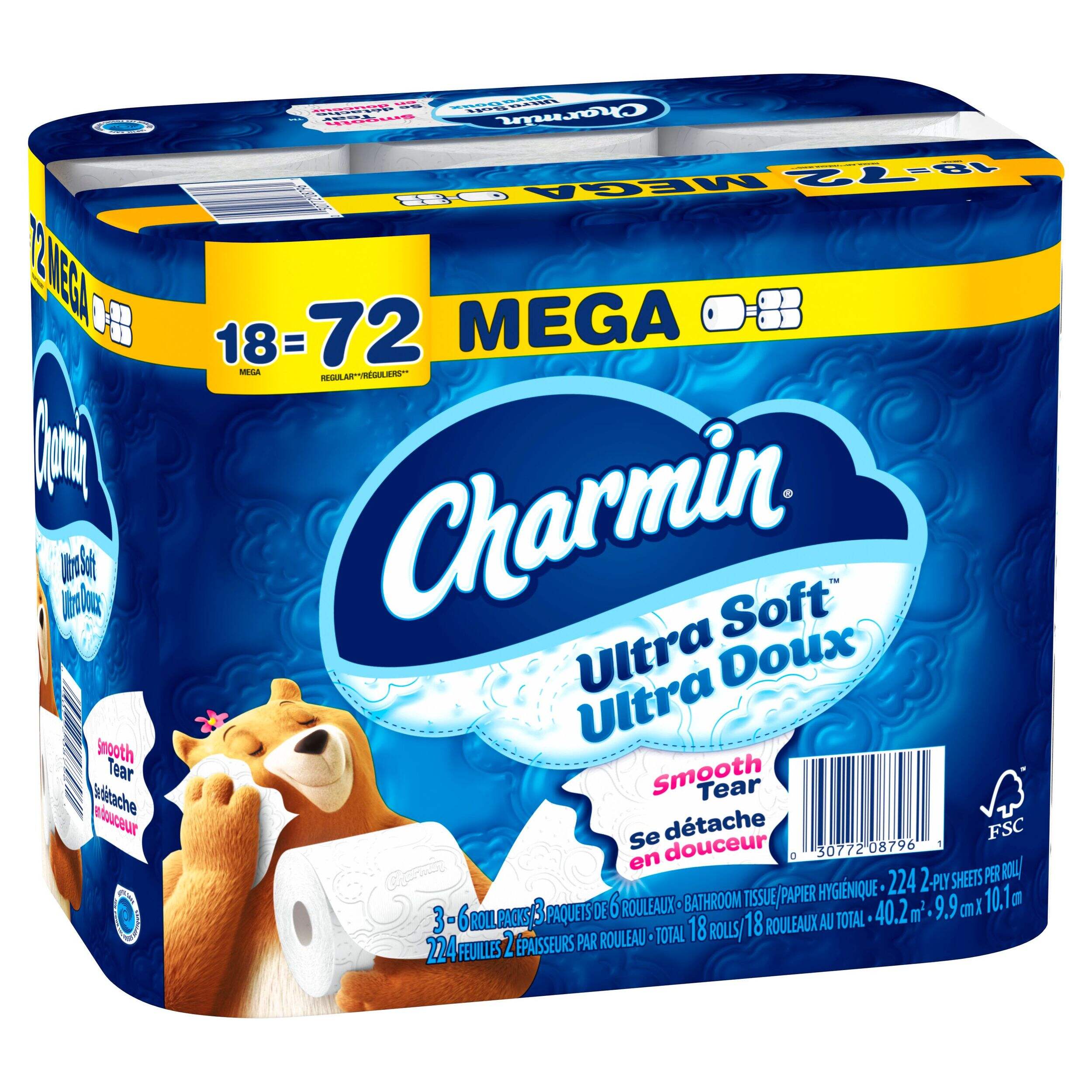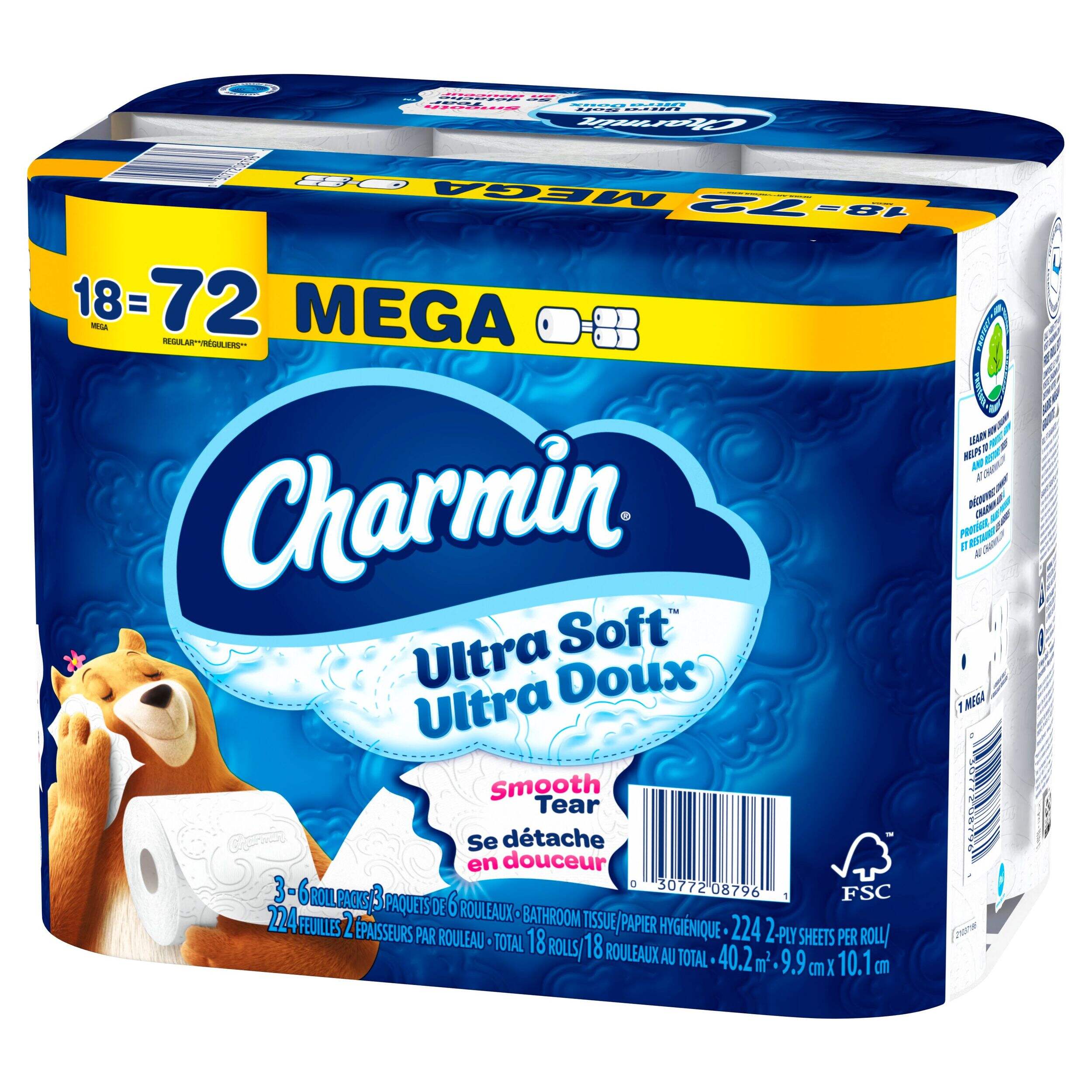 Papier hygiénique Charmin Ultra Soft qui est piqué pour plus de douceur sans compromettre la résistance