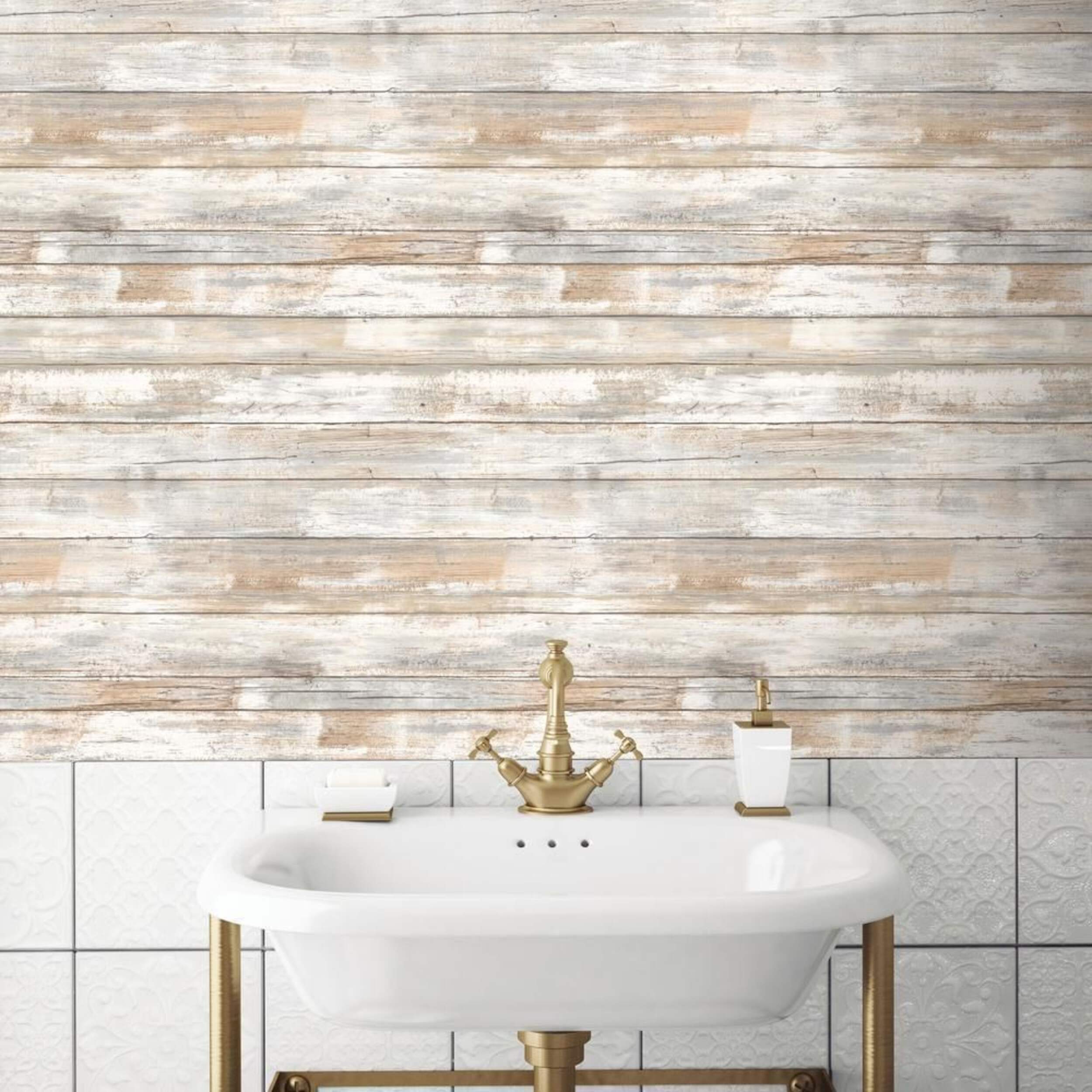 Transformez un mur comme jamais auparavant avec le papier peint Peel and Stick en bois vieilli de RoomMates.