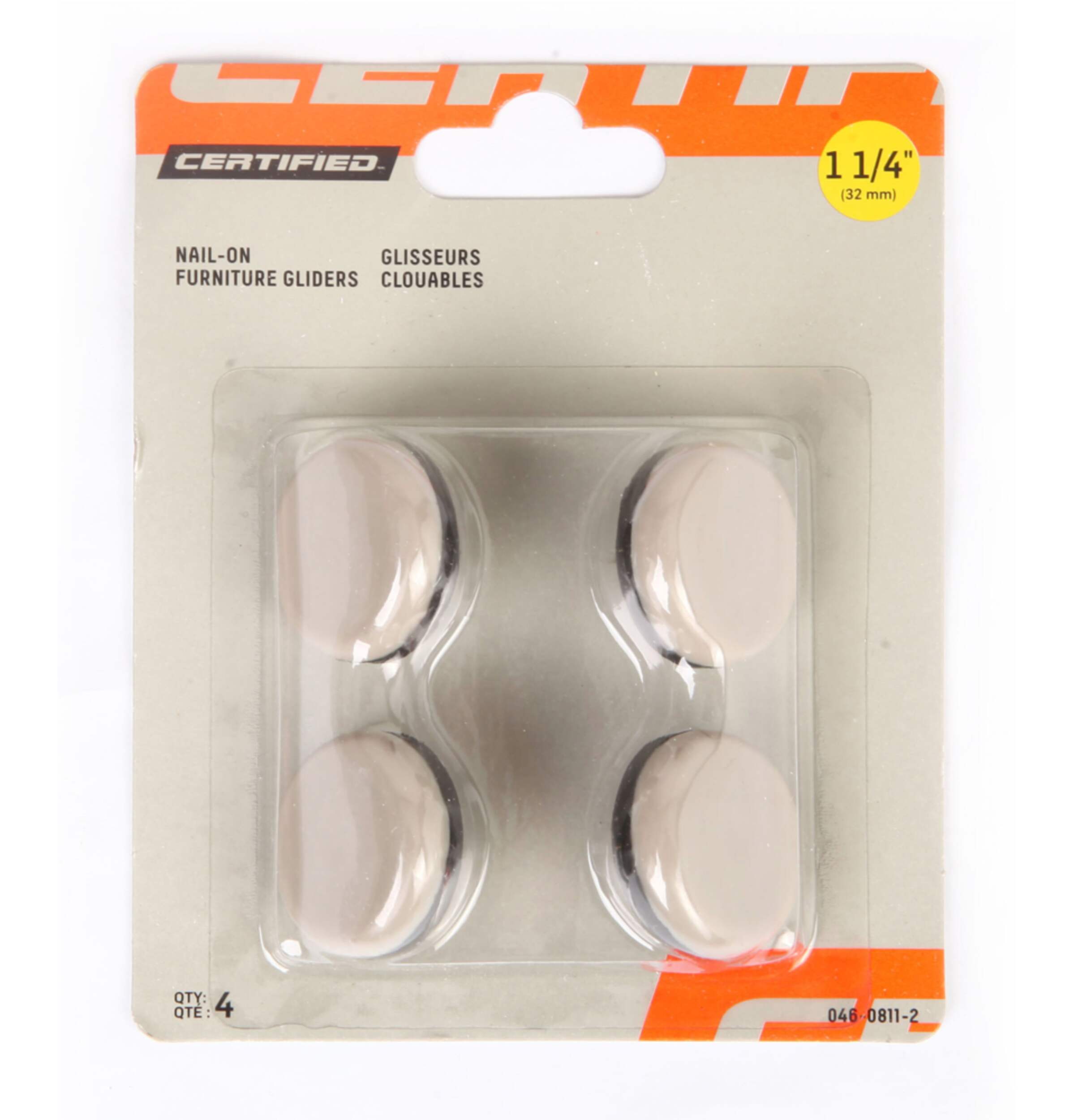 Patins ronds à clouer pour meublestaupe qui sont parfaits pour protéger vos planchers contre les marques et les rayures causées par les meubles. Patins dotés d'un modèle à clouer, ce qui les rend incroyablement robustes par rapport aux autres patins adhésifs. En plus de protéger les planchers, ces patins facilitent aussi le glissement et le déplacement de vos meubles dans la maison.
