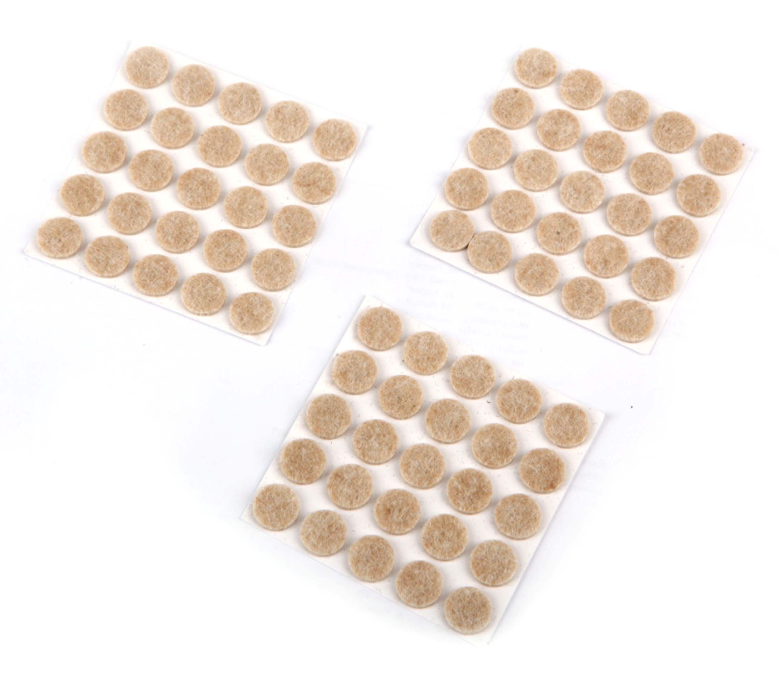 Patins ronds en feutre beige de capacité moyenne comprenant des protecteurs en feutre autoadhésifs conçus pour protéger les meubles délicats