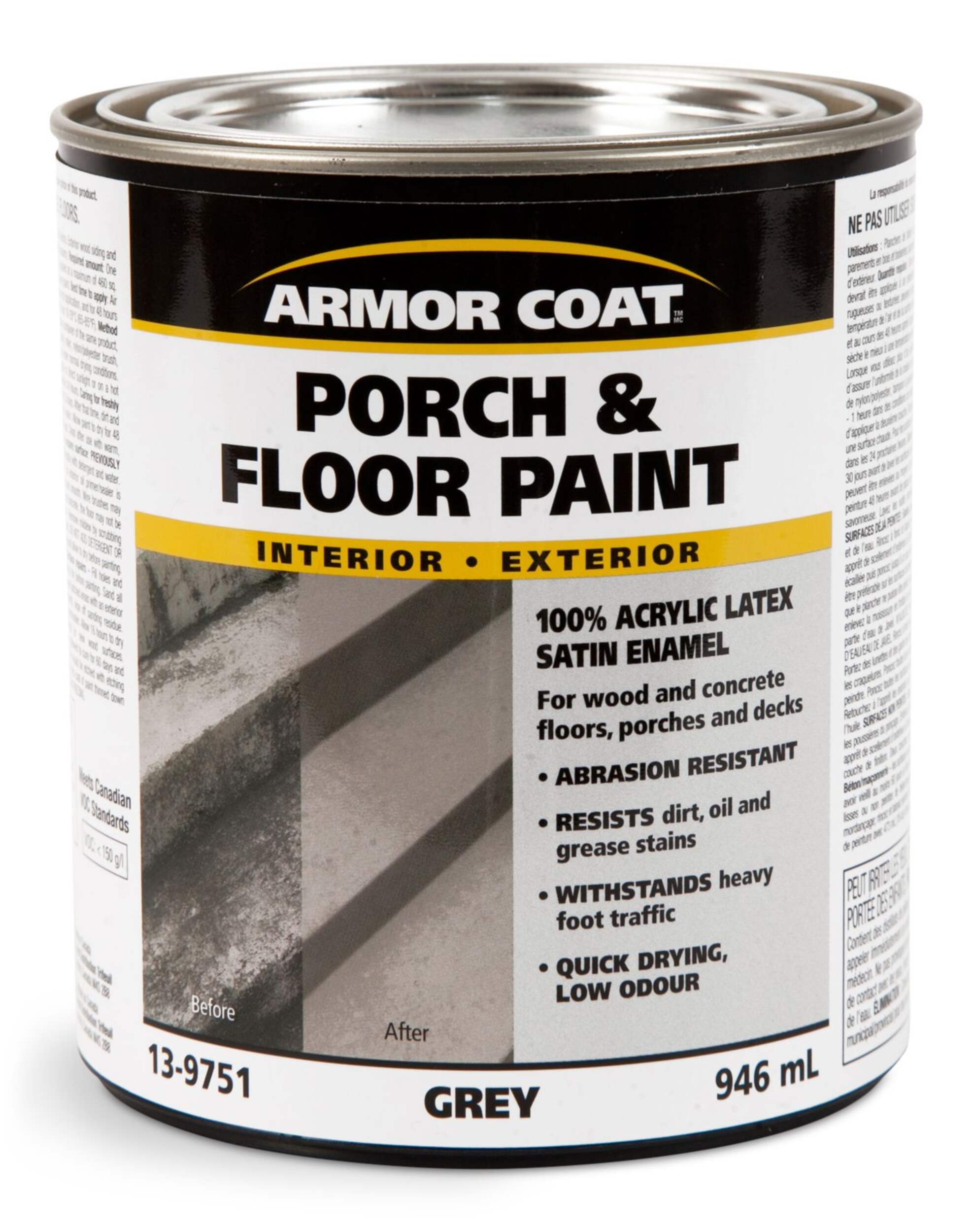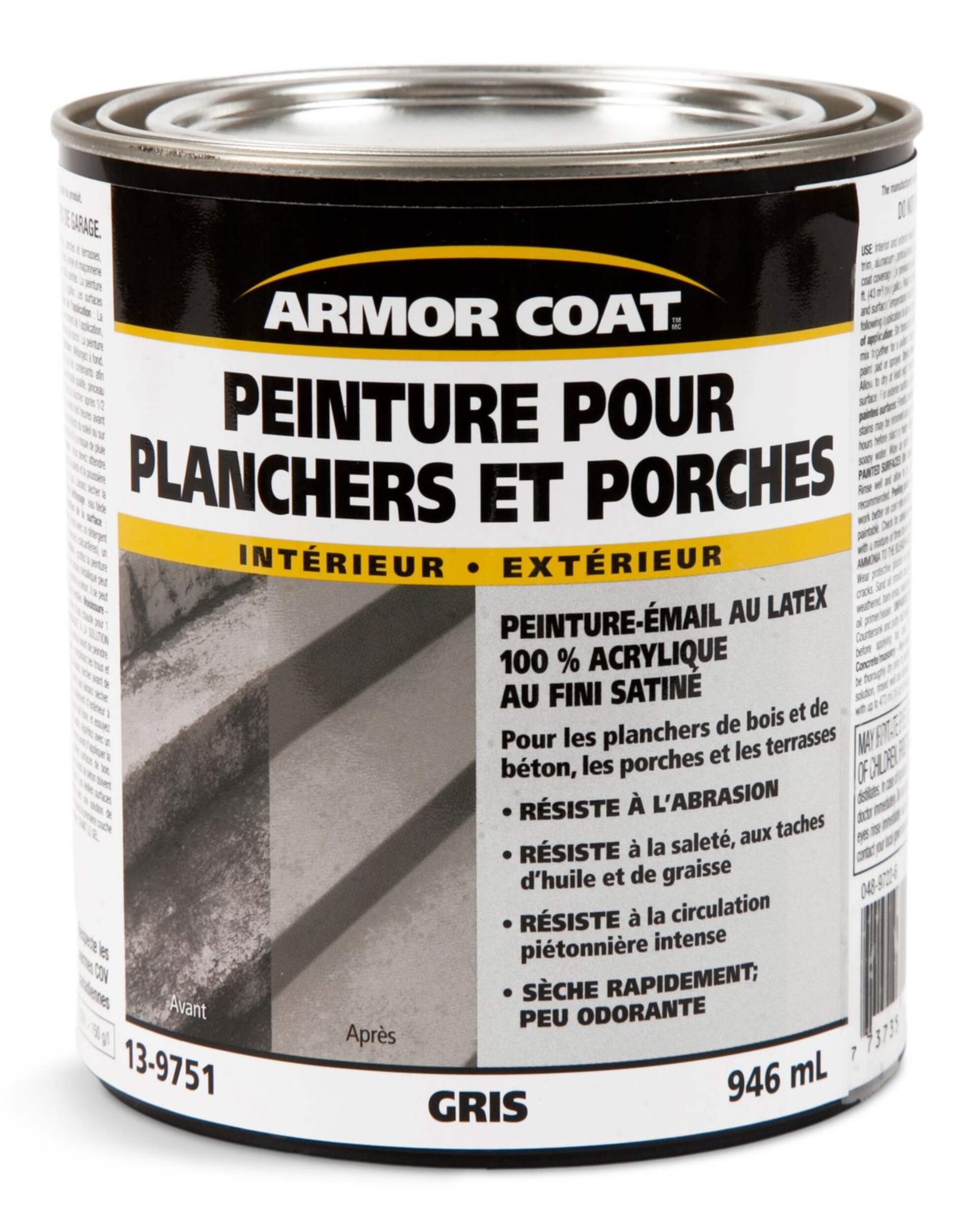 Peinture au latex acrylique pour porche et plancher Armor Coat idéale pour les planchers, les galeries et les terrasses en bois et en béton