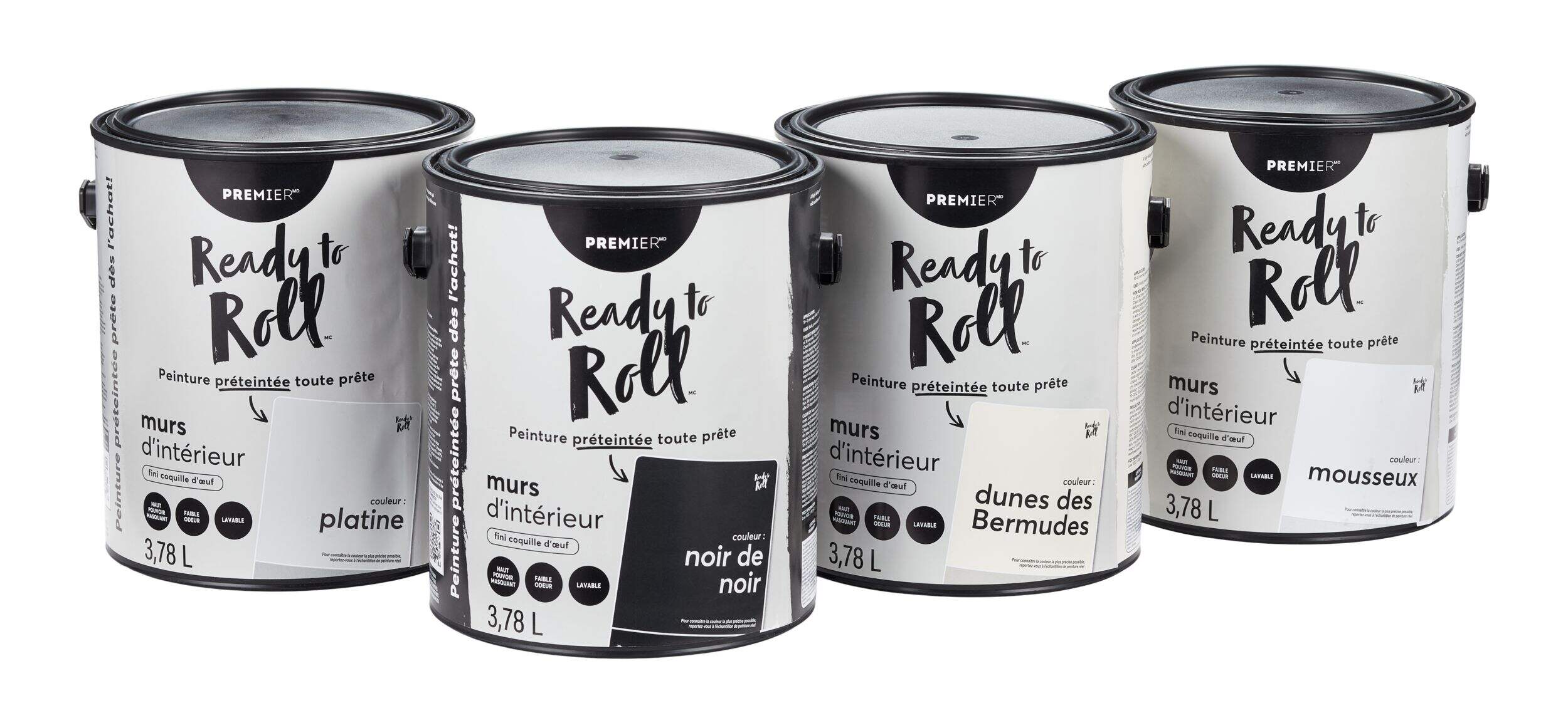 En plus de la couleur Mousseux, la gamme Ready to Roll est offerte en 9 autres couleurs prémélangées et offre un apprêt et de la peinture pour plafond, portes et garnitures pour compléter votre projet