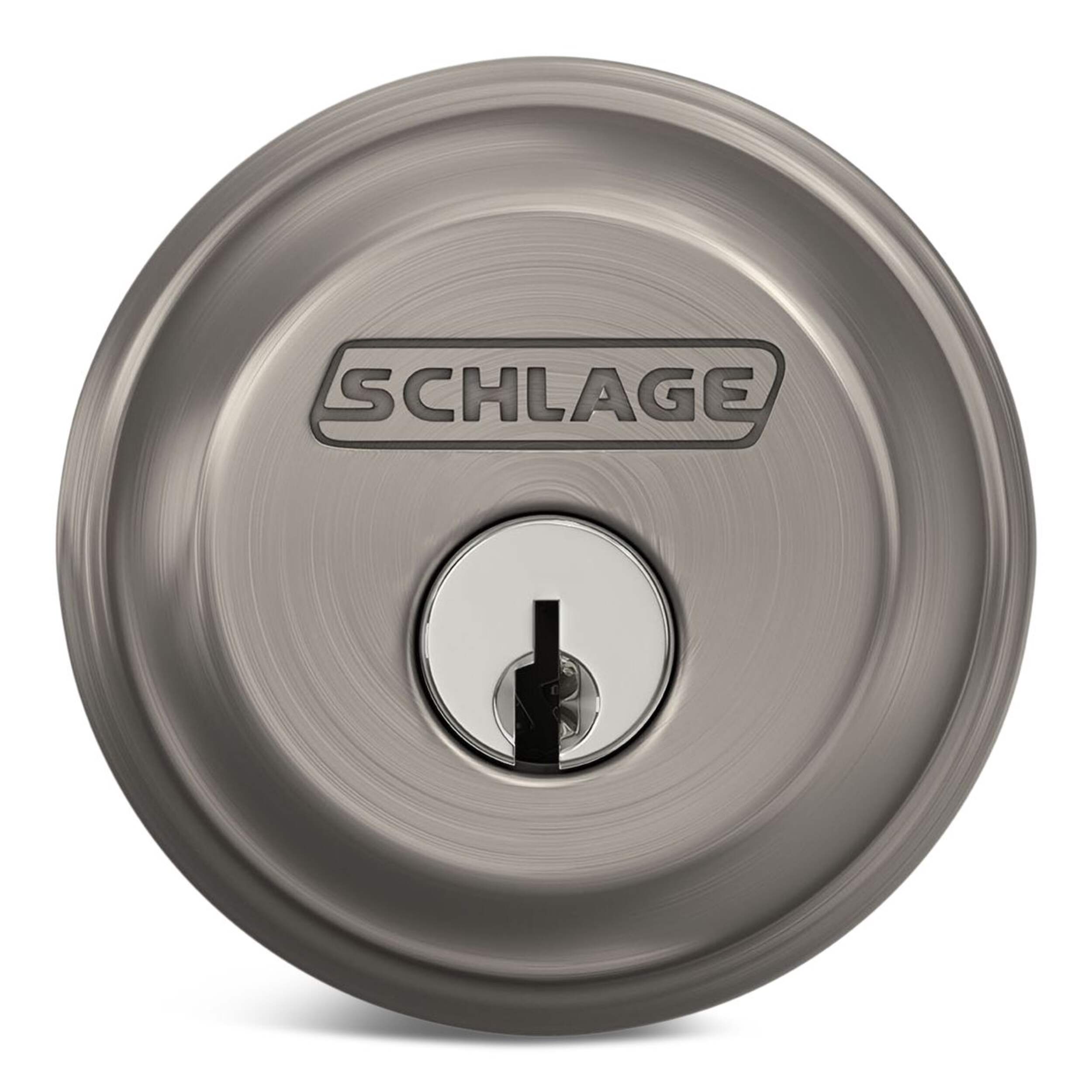 Ce pêne dormant à cylindre simple Schlage vous aidera à garder votre maison ou votre atelier en sécurité grâce à ses portes d'entrée verrouillables. Lorsqu'il est entièrement déployé, ce pêne dormant certifié par ANSI/BHMA se verrouille solidement et résiste aux coups et aux tentatives de prélèvement. L'installation est simple sur les portes en bois ou en métal de 1 3/8 à 1 3/4 po d'épaisseur et ne nécessite que des outils de base. Le fini nickel satiné ajoute un style subtil tandis que le système de changement de clé offre plus de commodité. Idéal pour une utilisation résidentielle ou commerciale, ce pêne dormant fonctionne avec des plaques arrière de 2 3/8 et 2 3/4 po. Deux clés en laiton sont incluses pour verrouiller et déverrouiller facilement votre entrée tout en gardant les mains libres.