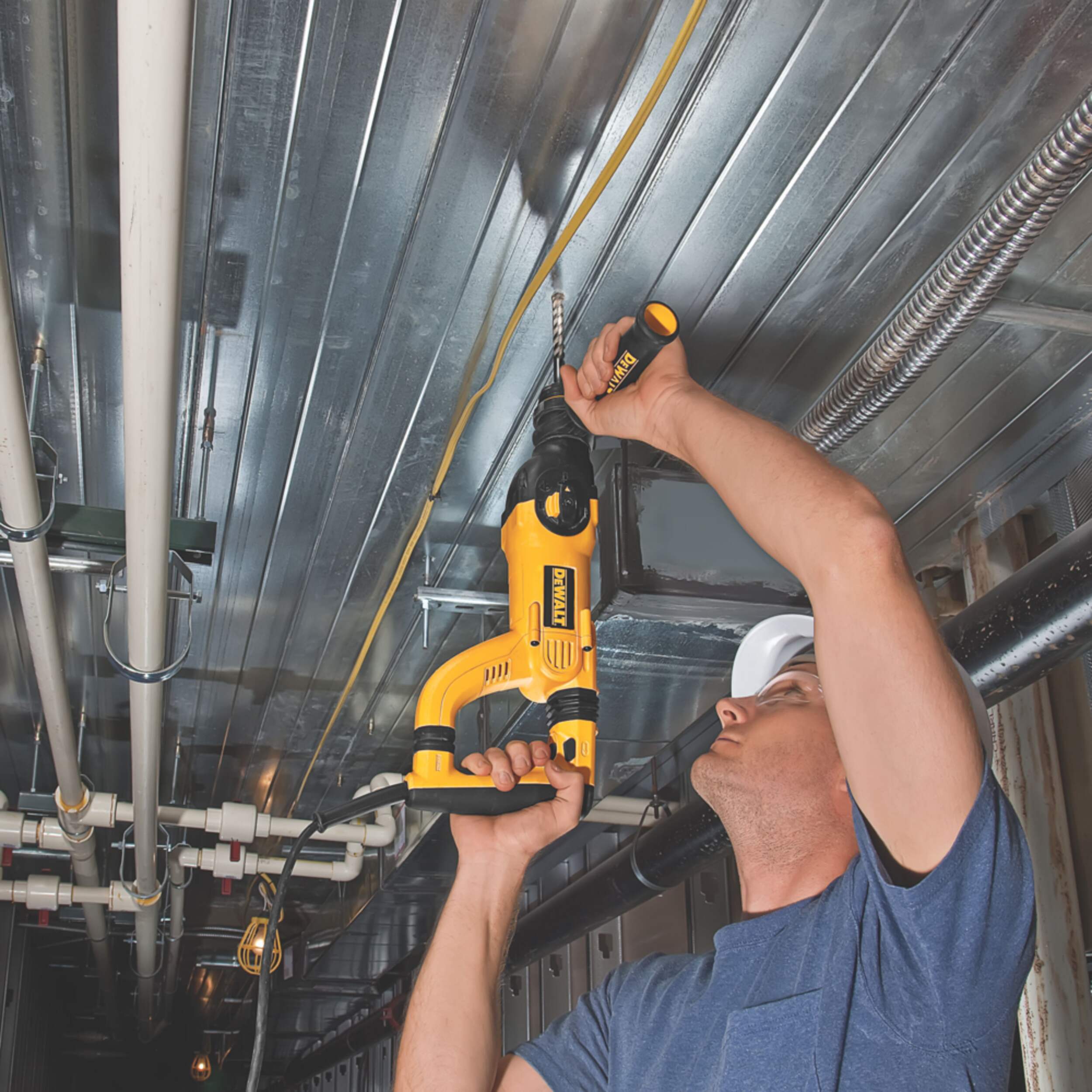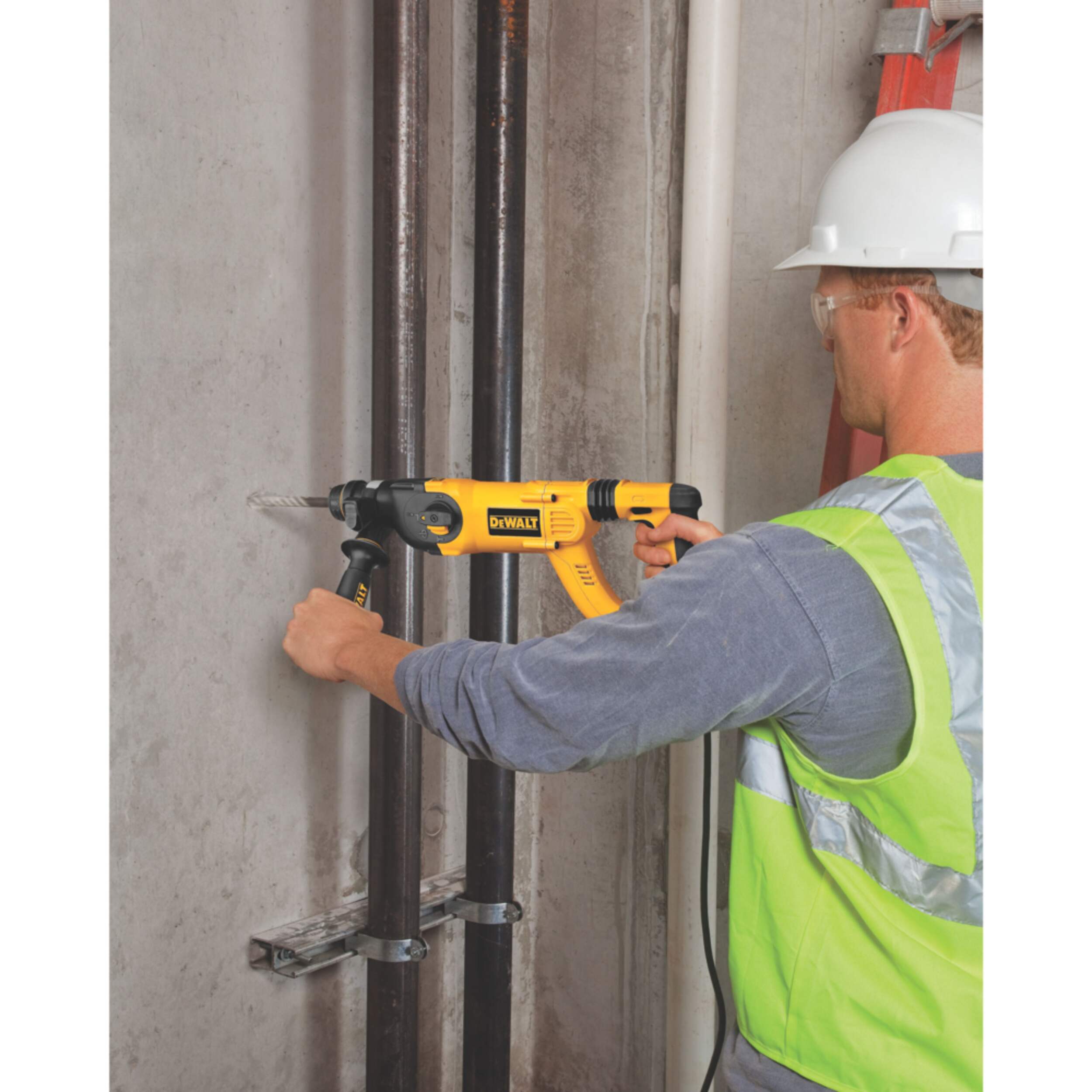 Marteau rotatif SDS+ D25263K de 1-1/8 po qui est léger, peu vibrant et haute performance, conçu pour les exigences de l'entrepreneur d'aujourd'hui. Mécanisme d'ingénierie allemande durable offrant 3,0 joules d'énergie de choc qui offre une vitesse d'application jusqu'à 15 % plus rapide que les professionnels exigent. Technologie Active Vibration Control utilisant moins de vibrations pour réduire la fatigue de l'utilisateur et accroître la productivité.
