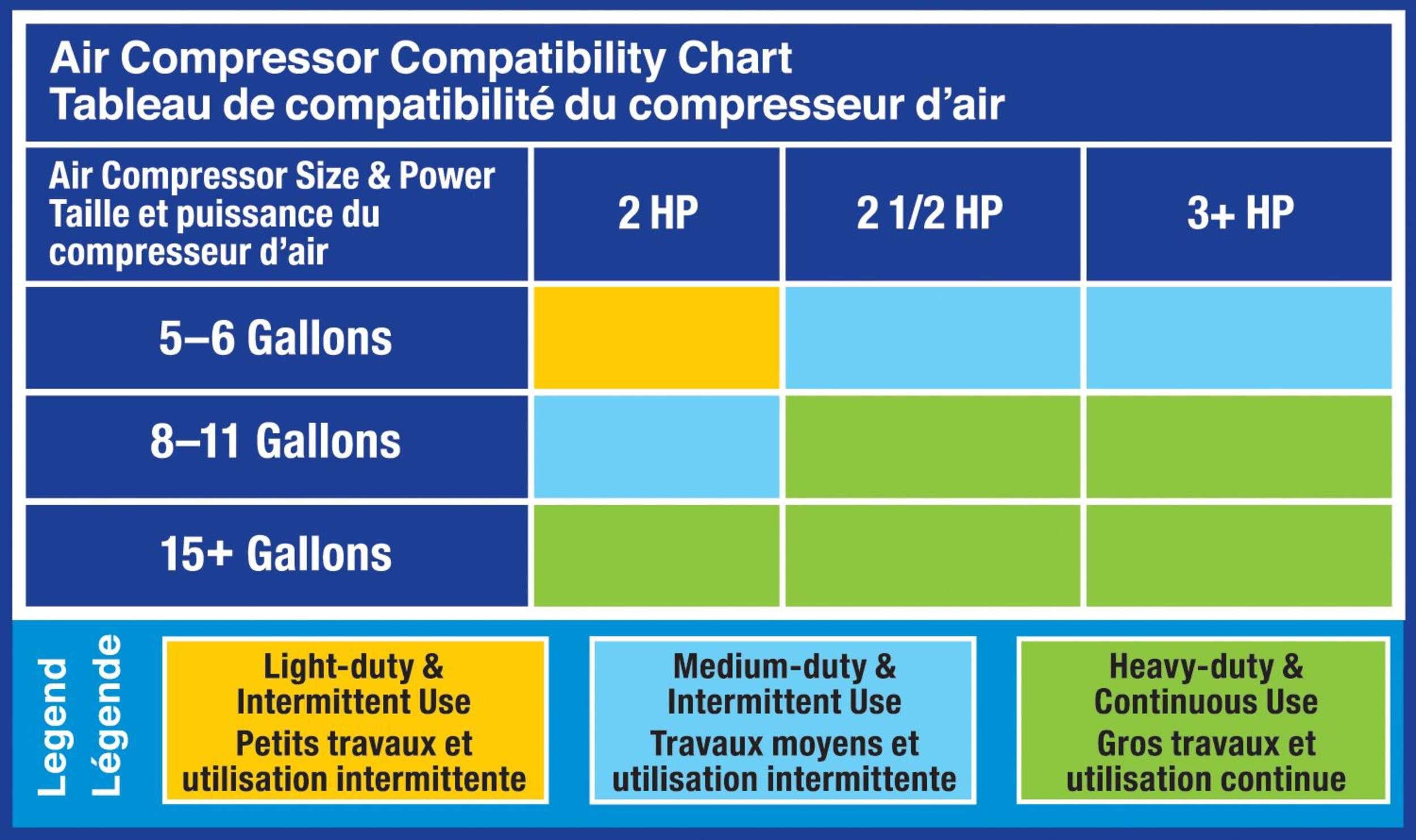 Tuyau à air requis : 9,55 mm (3/8 po)