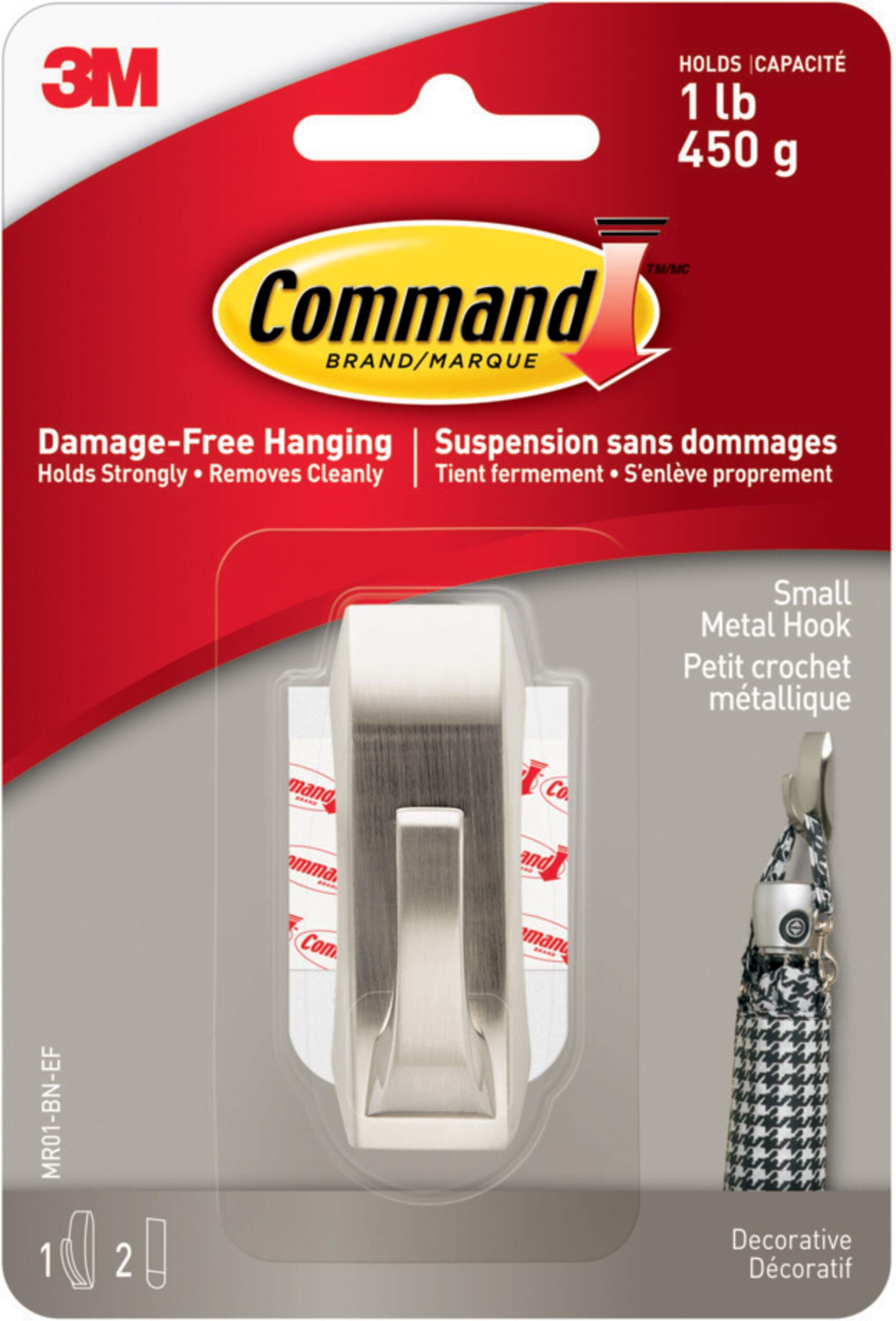 Petit crochet en métal Command éliminant le besoin d’utiliser des clous, des vis et des punaises