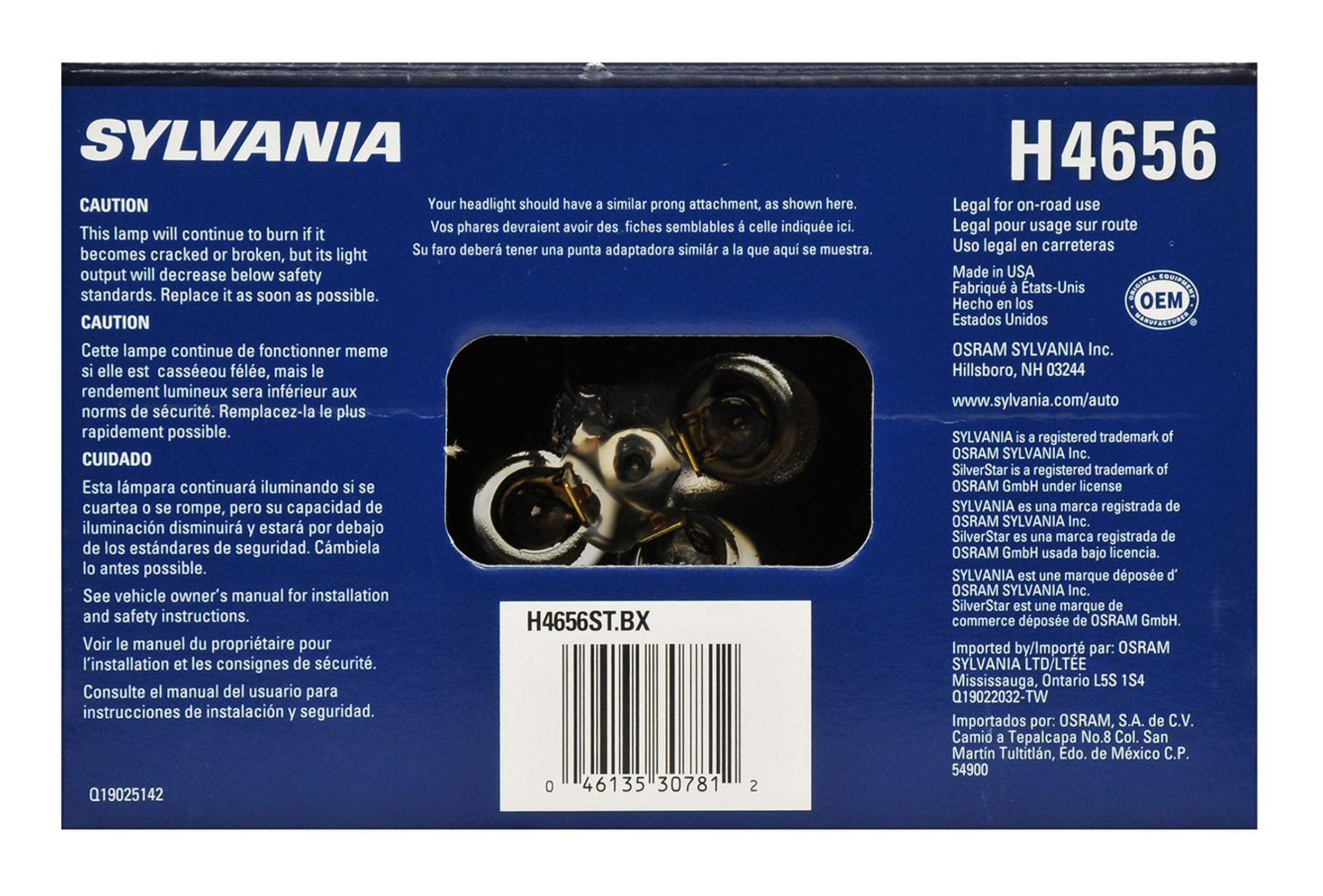 Ampoules de phare scellé haute performance H4656 SYLVANIA SilverstarMD offrant un équilibre amélioré de visibilité et de durée de vie des ampoules pour offrir une lumière plus brillante et plus blanche que celle des ampoules SYLVANIA de base. Combinaison d'une meilleure visibilité de la route et des côtés et d'une lumière plus blanche qui aide à obtenir plus de clarté pendant la conduite nocturne. Plus grande clarté qui peut améliorer le contraste et la visibilité des objets, comme les panneaux routiers et les dangers sur la route.
