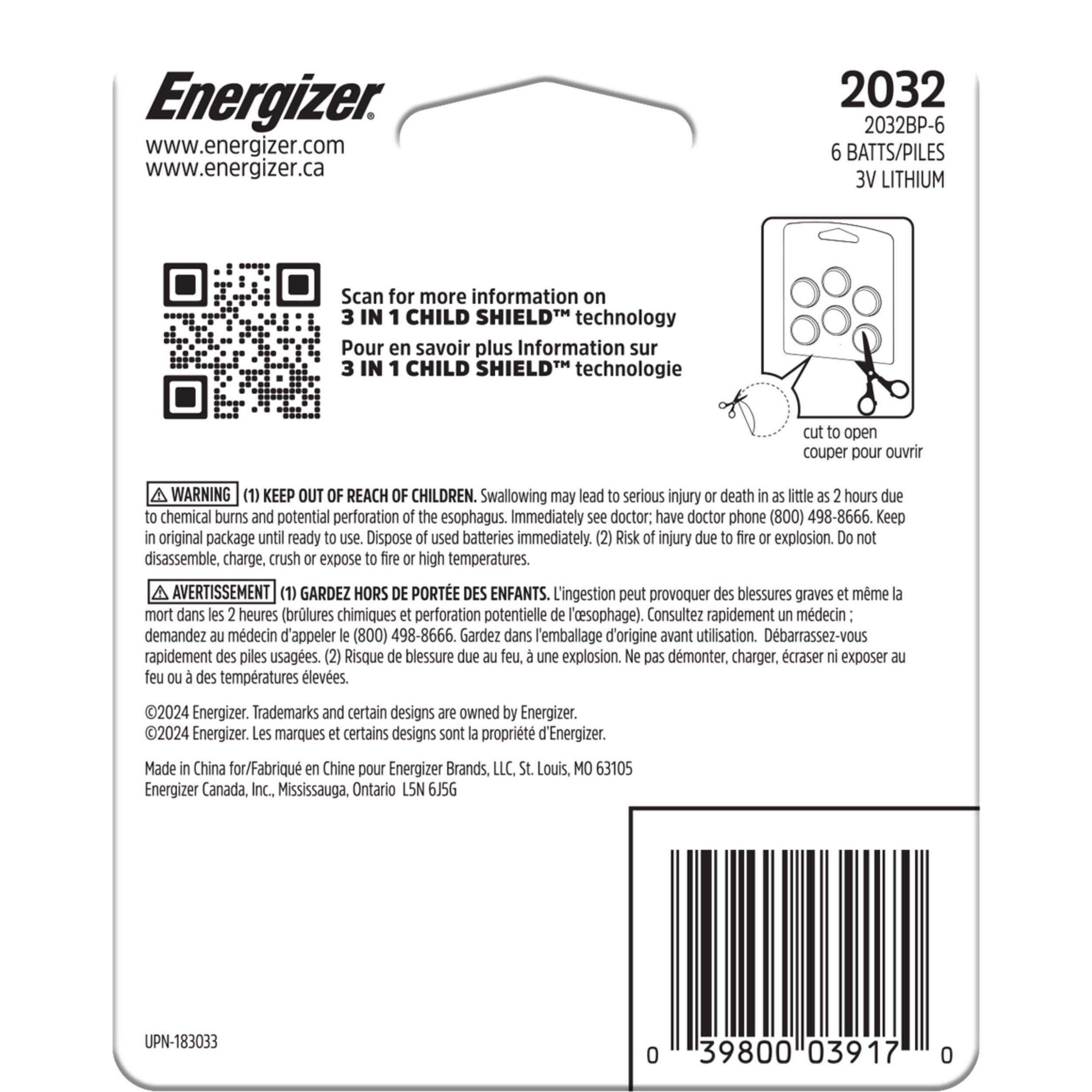 Les piles boutons au lithium Energizer CR2032 3V offrent une alimentation fiable et durable pour vos petits appareils électroniques. Ces piles boutons 3 V sont idéales pour les appareils comme les montres, les calculatrices, les télécommandes et les moniteurs d'activité. Conçue pour une performance durable, la technologie au lithium d'Energizer fournit une énergie fiable tout en prévenant les fuites, assurant ainsi la protection de vos appareils. Dotées d'une longue durée de conservation, ces piles sont parfaites pour le stockage, donc vous êtes toujours prêt lorsqu'un appareil a besoin d'un remplacement.