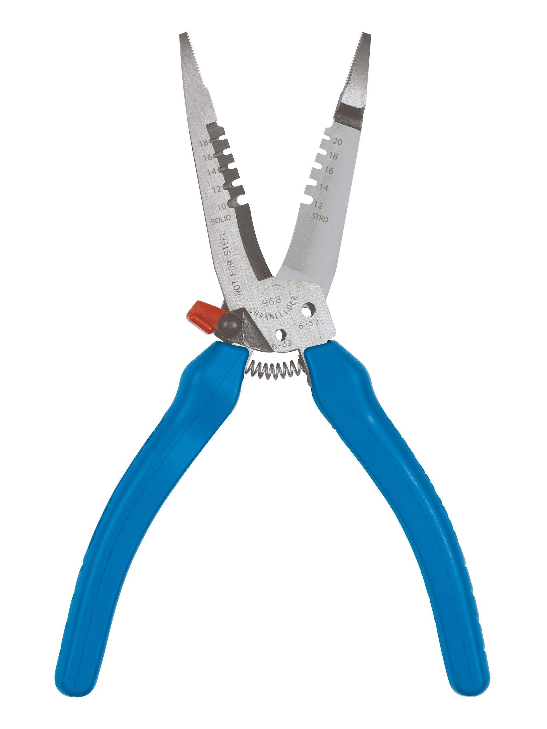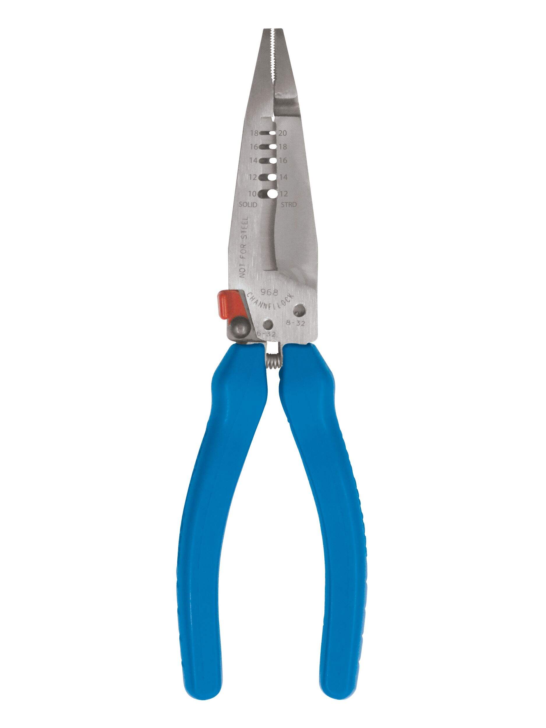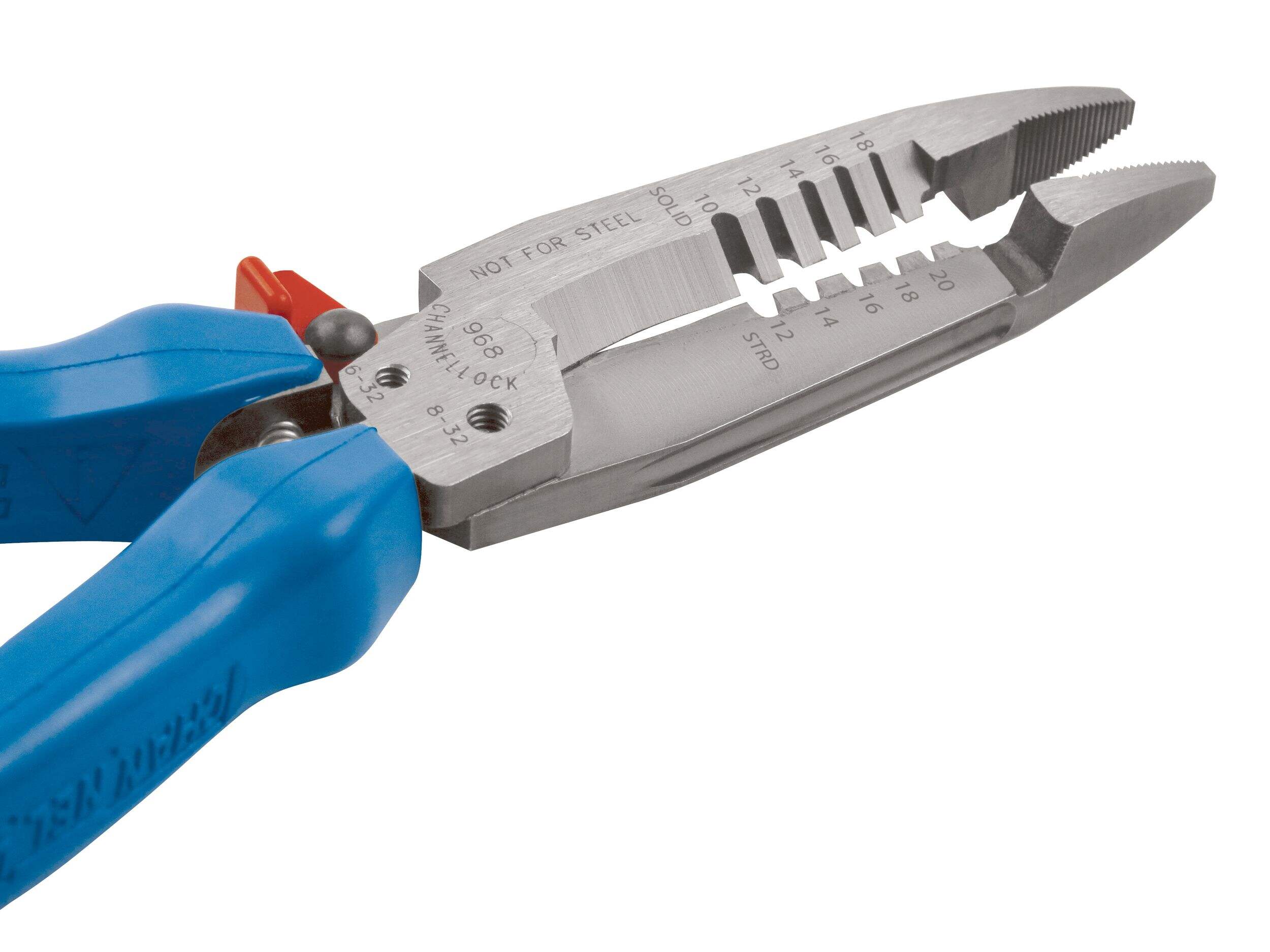La pince à dénuder forgée CHANNELLOCK sup MD /sup 968 de 7,5 po offre une durabilité exceptionnelle et une facilité d'utilisation pour toute boîte à outils professionnelle. Fabriqué en acier à forte teneur en carbone, cet outil est conçu pour durer, assurant la fiabilité pour les tâches exigeantes. Ses prises ergonomiques CHANNELLOCK BLUE sup MD /sup améliorent le confort pendant l'utilisation, tandis que la poignée à ressort permet de l'utiliser d'une seule main. Cette pince à dénuder polyvalente est idéale pour une variété de tailles de fils et dispose d'une tête d'alésage pour conduits jusqu'à 25,4 mm (1 po) et coupe les boulons 6-32 et 8-32.