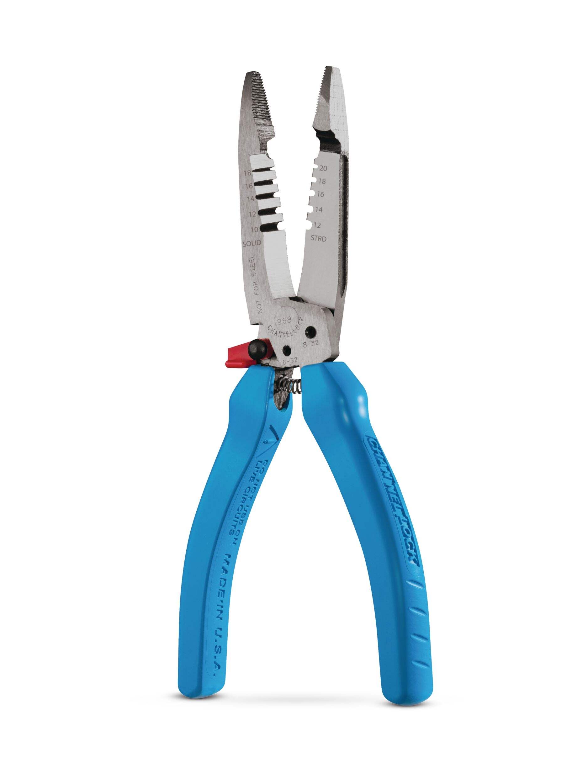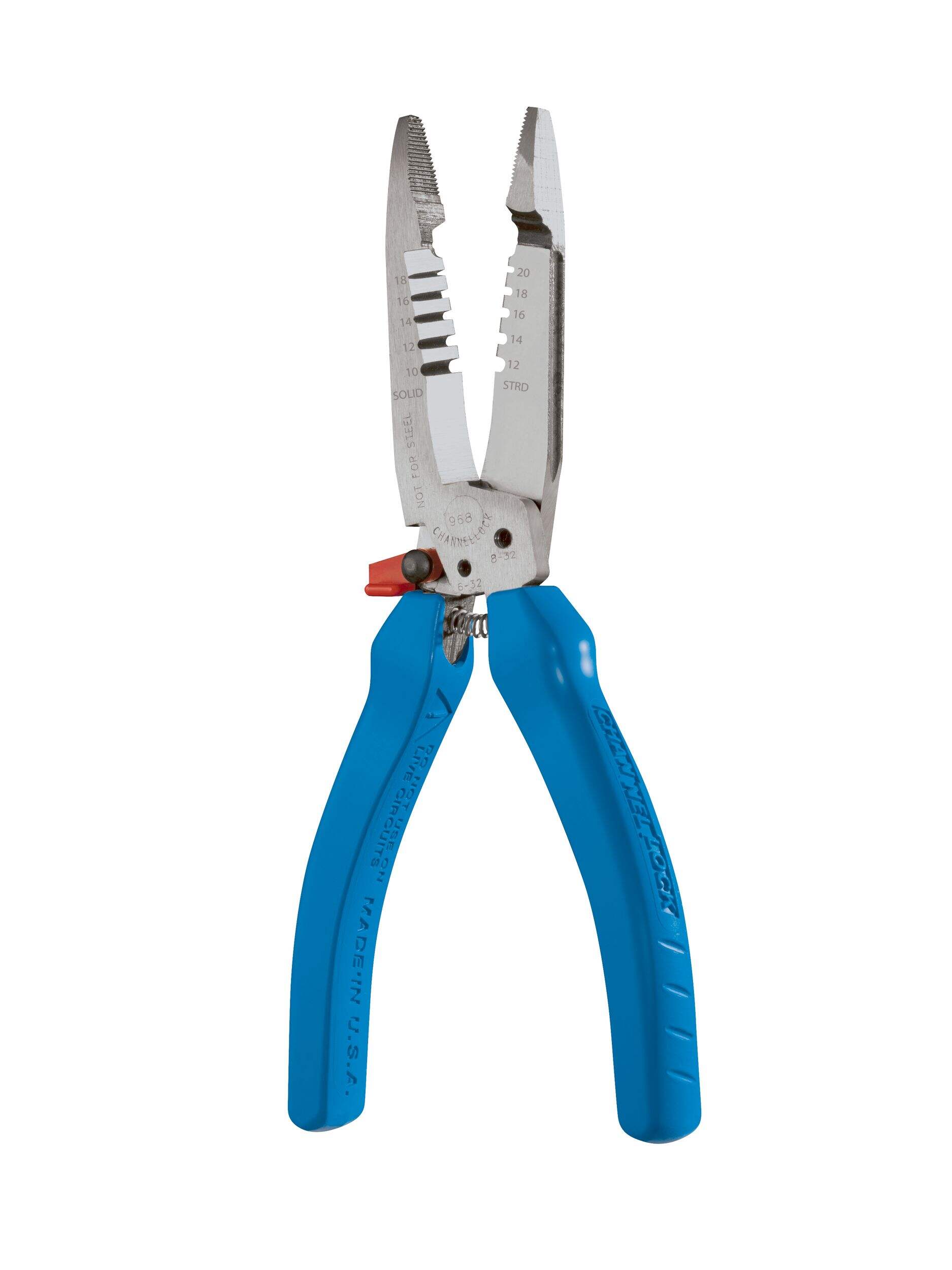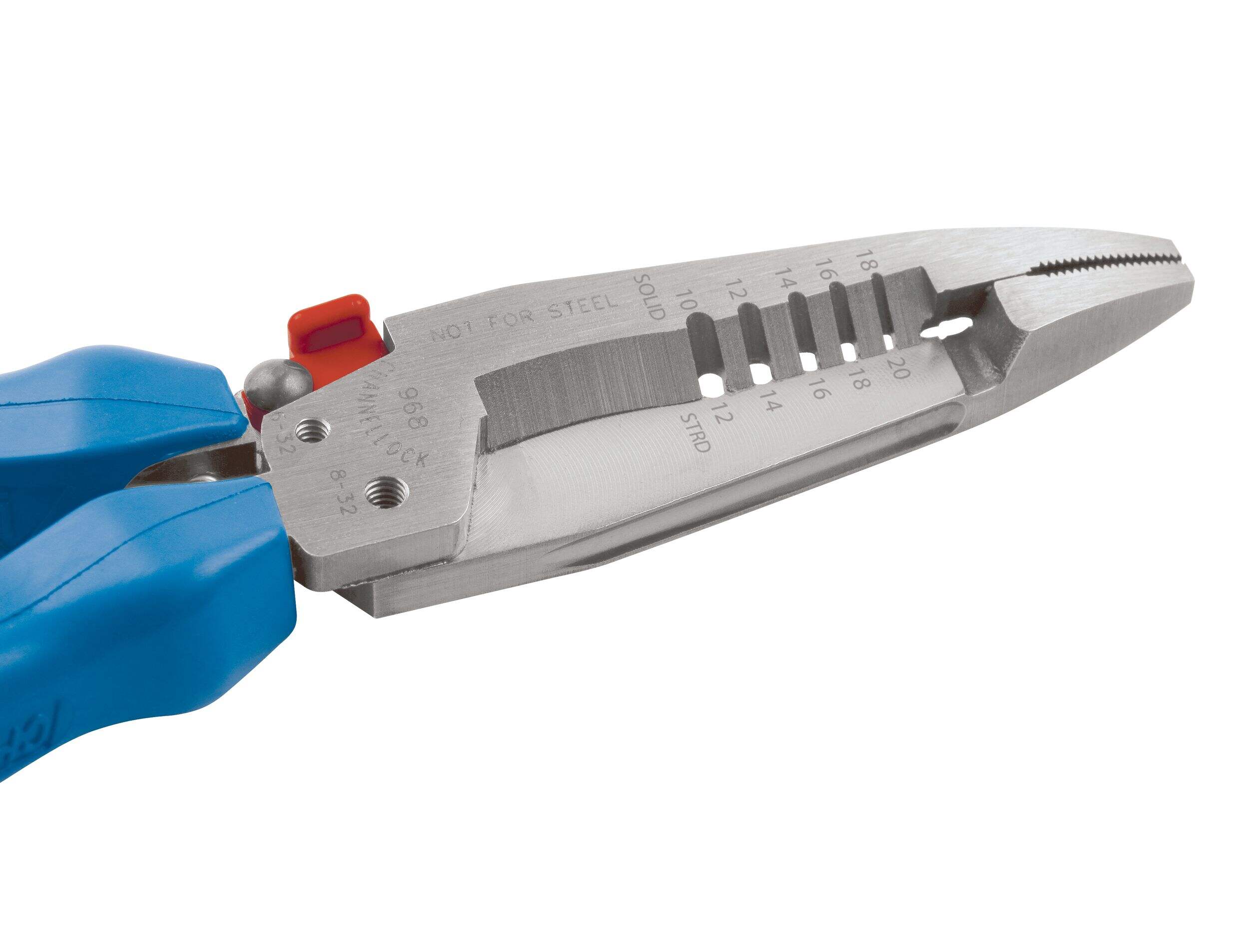 La pince à dénuder forgée CHANNELLOCK sup MD /sup 968 de 7,5 po offre une durabilité exceptionnelle et une facilité d'utilisation pour toute boîte à outils professionnelle. Fabriqué en acier à forte teneur en carbone, cet outil est conçu pour durer, assurant la fiabilité pour les tâches exigeantes. Ses prises ergonomiques CHANNELLOCK BLUE sup MD /sup améliorent le confort pendant l'utilisation, tandis que la poignée à ressort permet de l'utiliser d'une seule main. Cette pince à dénuder polyvalente est idéale pour une variété de tailles de fils et dispose d'une tête d'alésage pour conduits jusqu'à 25,4 mm (1 po) et coupe les boulons 6-32 et 8-32.