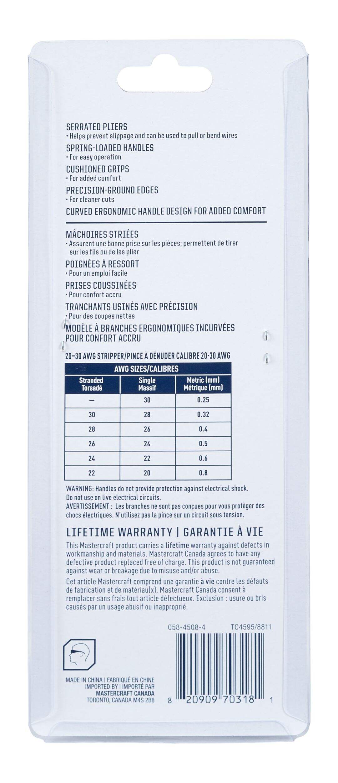 La pince coupe-fil/à dénuder Mastercraft avec prises confortables est conçue pour dénuder les fils de calibre 20 à 30 AWG (calibre de fils américain) avec précision et facilité. Que vous soyez un entrepreneur en électricité ou un bricoleur amateur, cette pince à dénuder est un outil essentiel pour tous les projets de câblage, offrant l'équilibre parfait entre performance et confort de l'utilisateur.